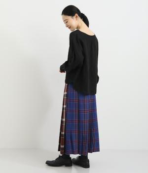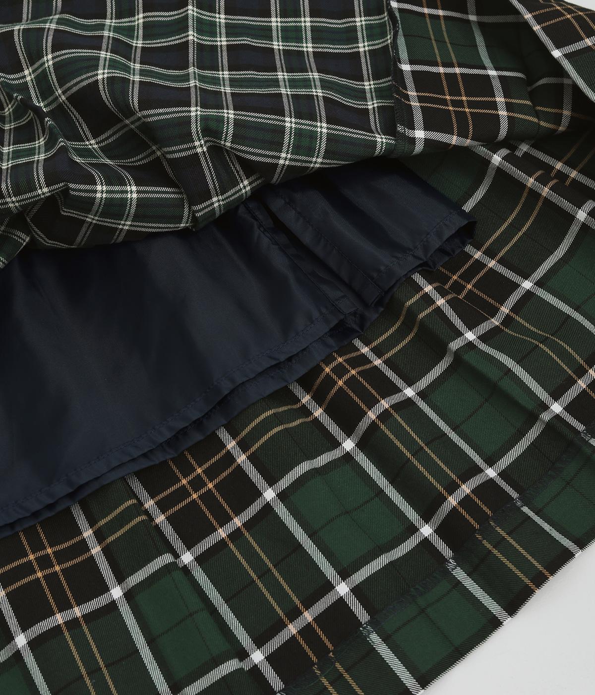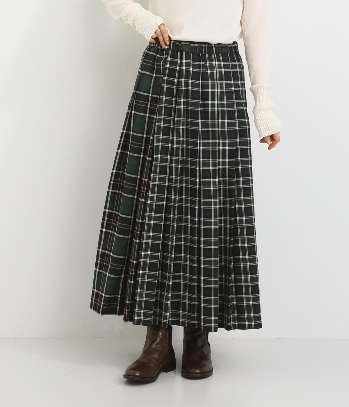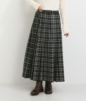 異なるタータンチェックを組み合わせたデザイン性のあるプリーツスカート。華やかさがありながらシックな色味でバランスよくまとまっています。シンプルなトップスと合わせるだけでスタイリングが完成する一枚。ウエストゴムでフィット感も抜群です。