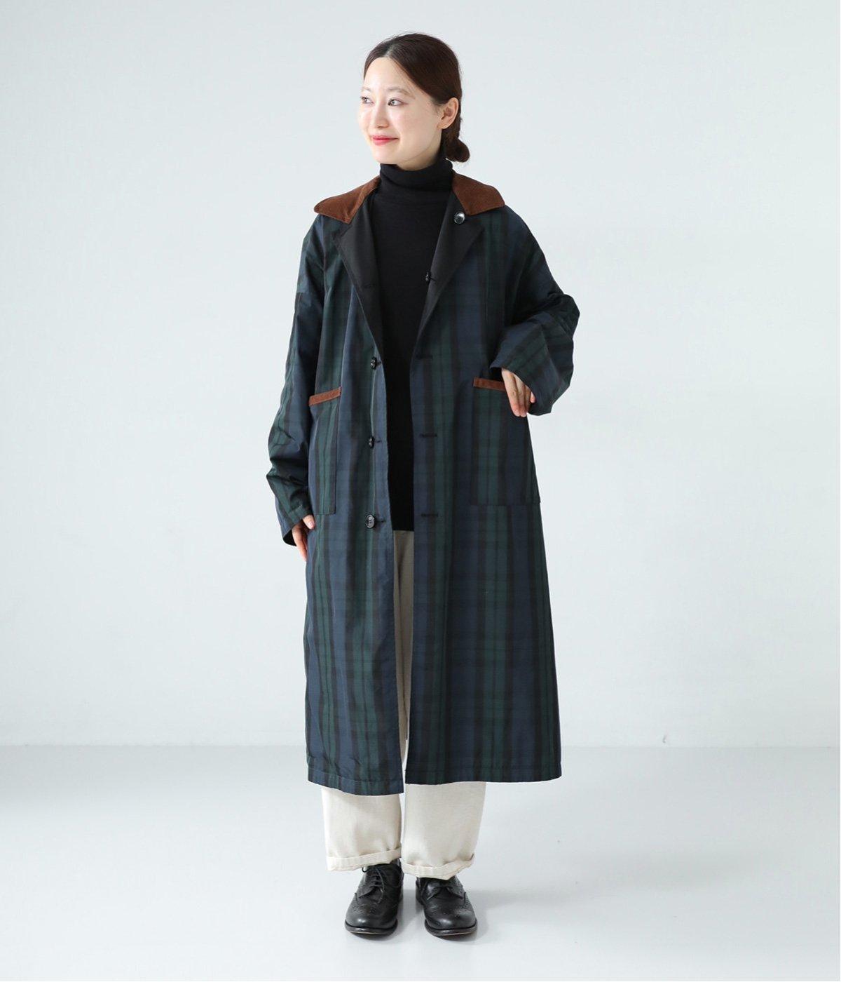 一着で無地とチェックの異なる着こなしを叶えるリバーシブル仕様のステンカラーコート。長めの袖を折り返して裏地を覗かせても素敵です。ほどよくゆとりを持たせたこなれ感漂うシルエットも◎。背中のスワンモチーフや、襟とポケットに配したコーデュロイ素材にも注目です。