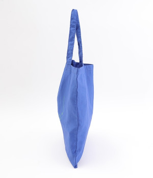 艶やかな美しい光沢のあるラミーを混紡した、大人が使いやすいトートバッグ。お出かけの気分を明るく盛り上げてくれる、鮮やかなカラー展開でつくりました。手書き風のブランドロゴがおしゃれに映えます。内ポケットに本体を入れ込み、小さくすることができるポケッタブル仕様。持ち運びにも便利で外出先で荷物が増えても安心です。
