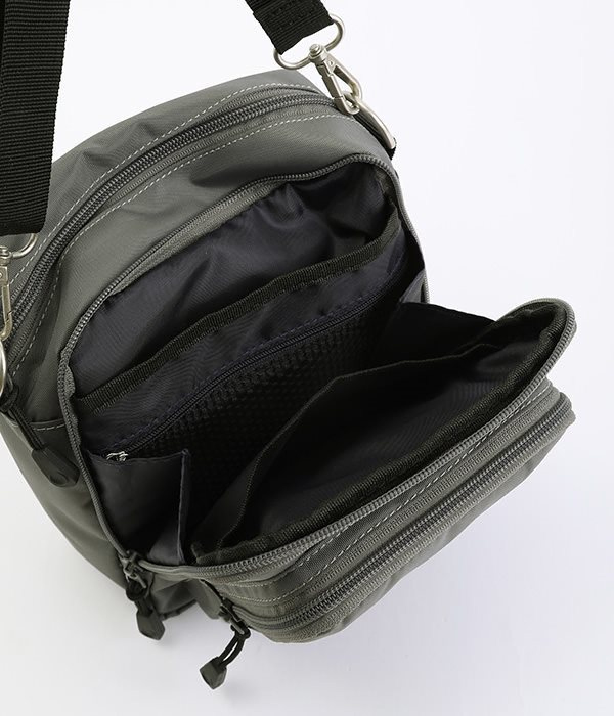 コロンとした立体的なスクエアフォルムが印象的なショルダーバッグ。コンパクトながら厚めのマチつきで、ちょっとしたお出かけの必需品をしっかり収納できる優秀アイテムです。メインの他に立体的なフロントポケット、さらにWファスナーで両開き可能なマチなしのポケットをあしらい、使いやすさにこだわりました。長さを自在に調整できるストラップつき。普段使いや旅行のサブバッグにもおすすめです。