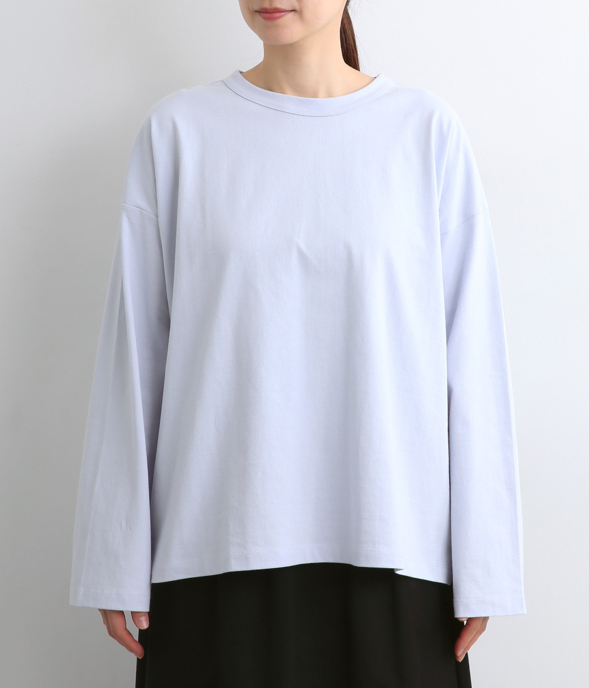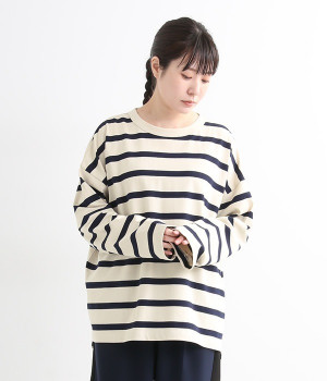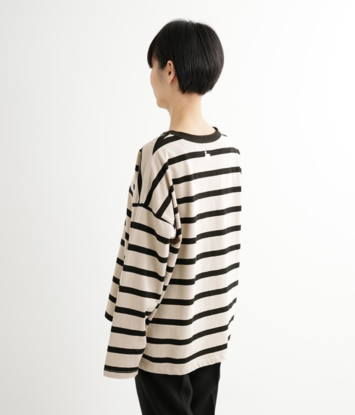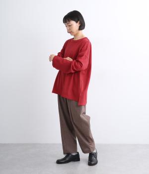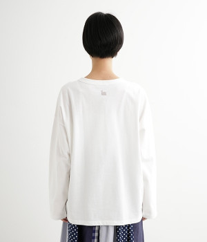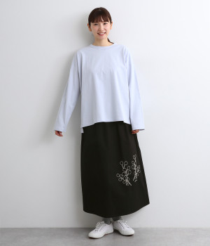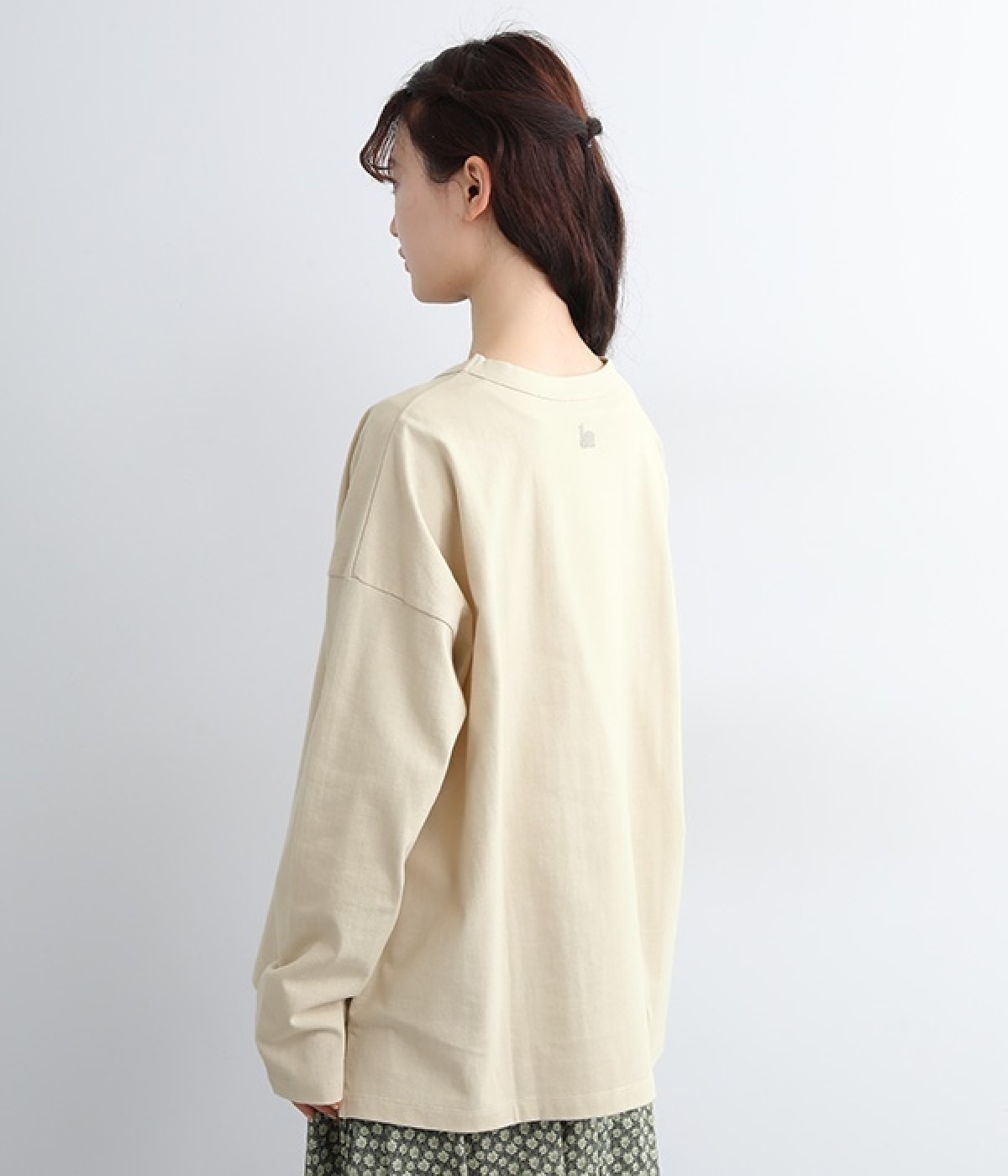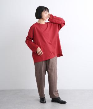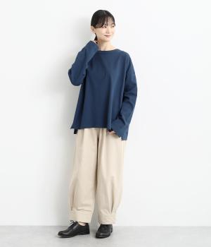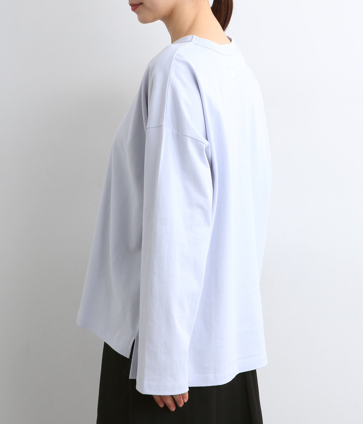 ドロップショルダーのワイドな身幅がポイントのプルオーバー。長めの袖丈がリラックスした雰囲気です。着丈にはさりげない前後差があり、後ろはやや長めでヒップラインをさりげなくカバー。ブランドのアイコンであるスワンモチーフが背中の襟元にあしらわれています。