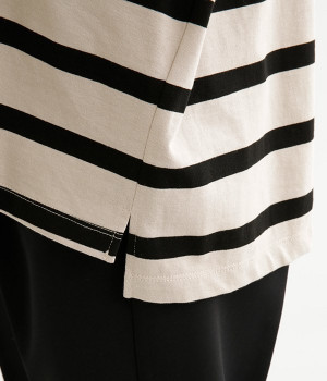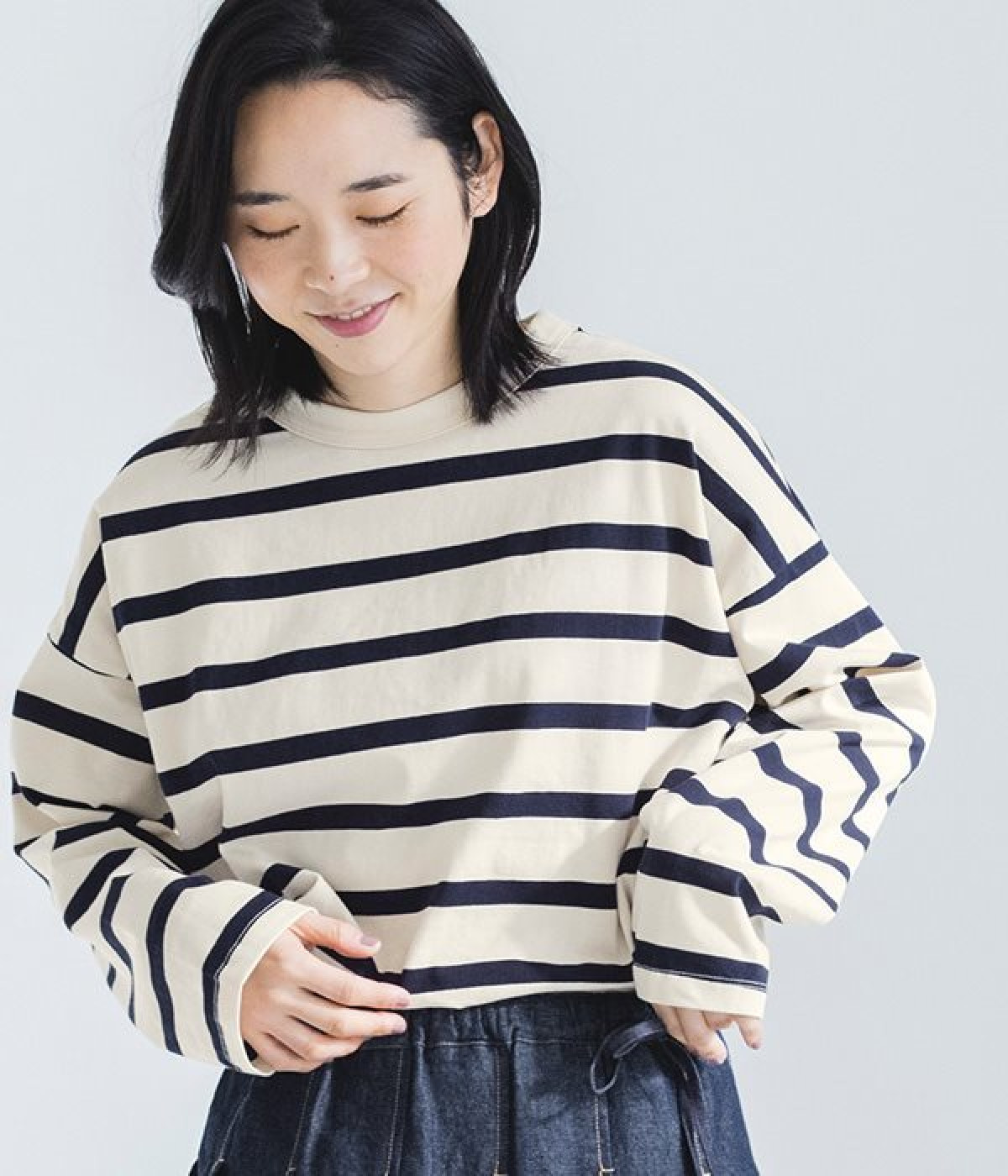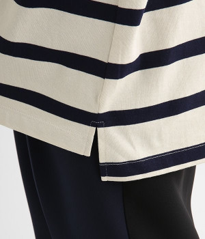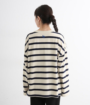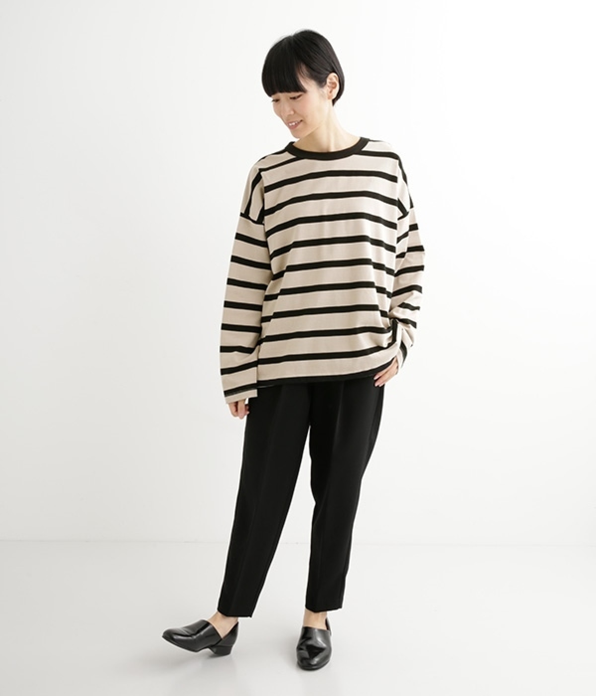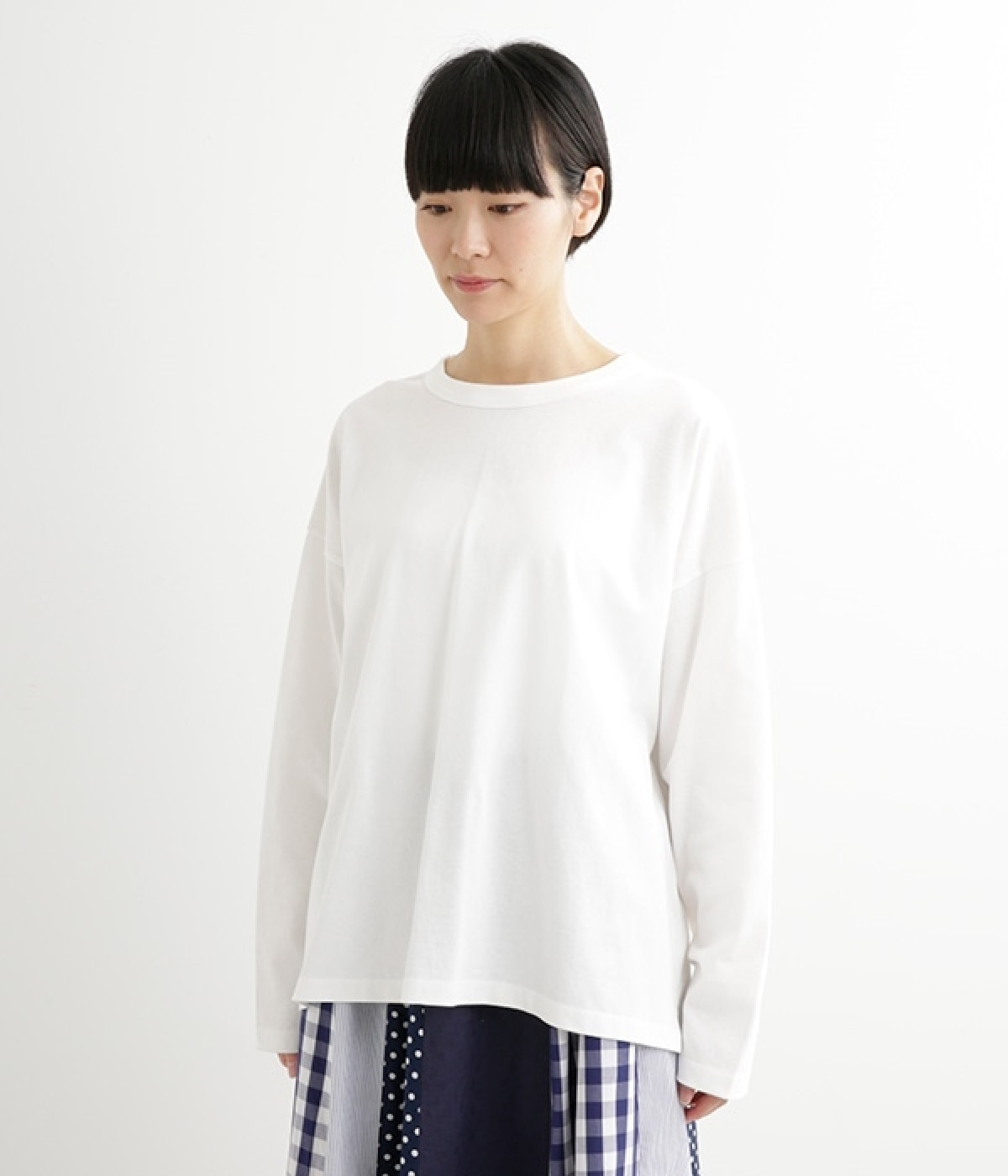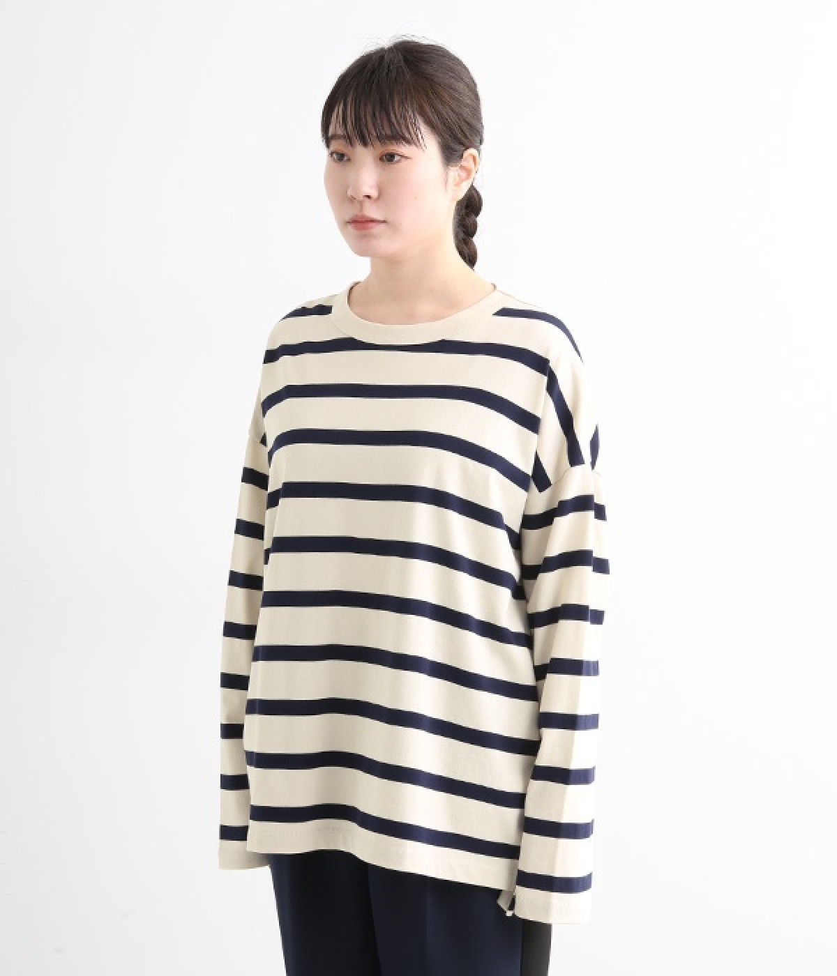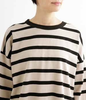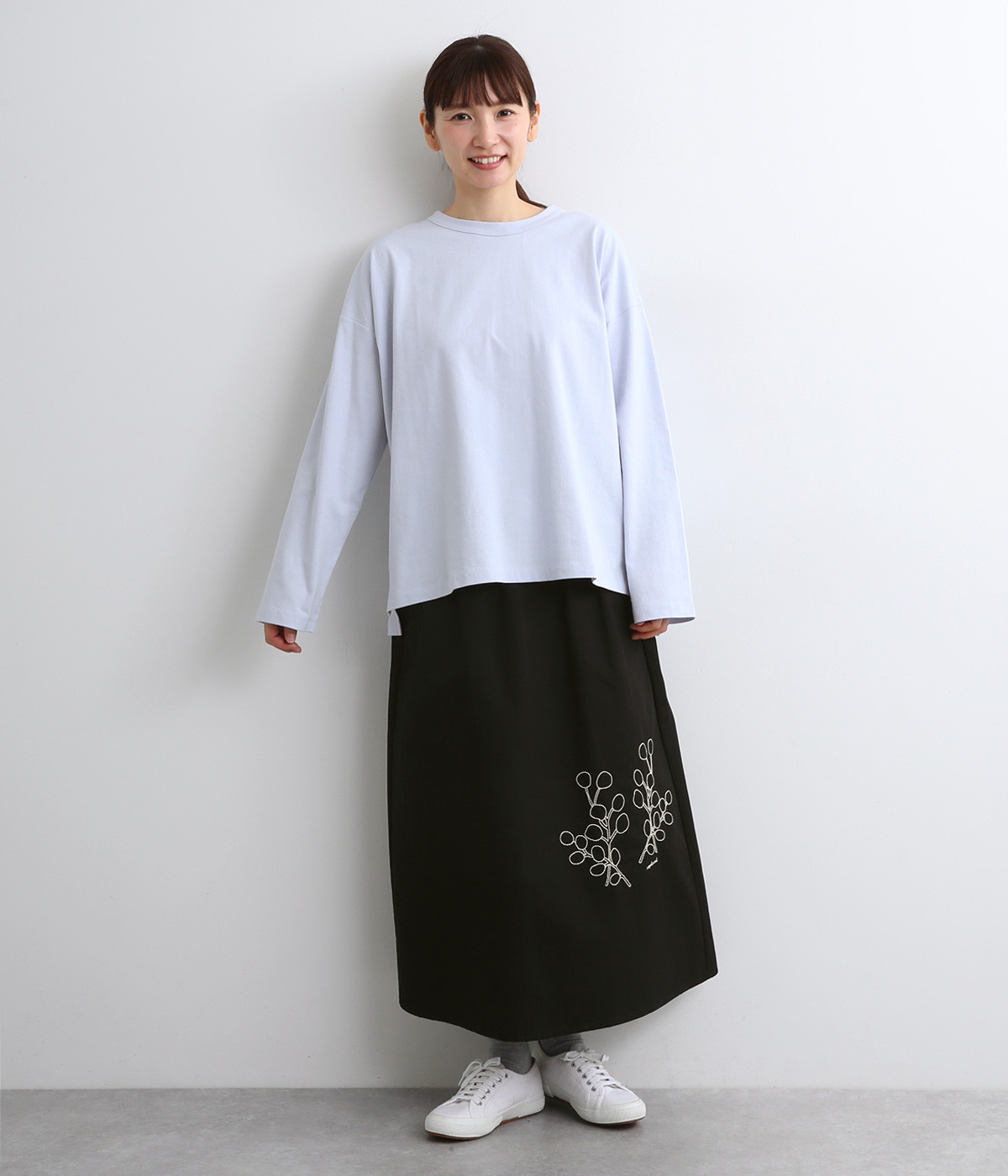 ドロップショルダーのワイドな身幅がポイントのプルオーバー。長めの袖丈がリラックスした雰囲気です。着丈にはさりげない前後差があり、後ろはやや長めでヒップラインをさりげなくカバー。ブランドのアイコンであるスワンモチーフが背中の襟元にあしらわれています。
