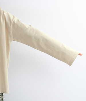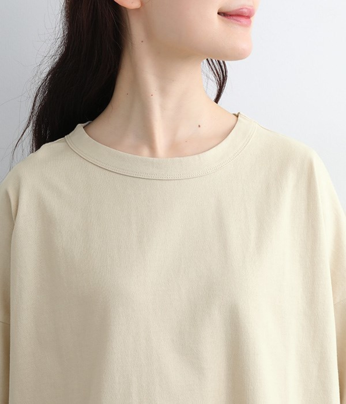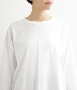 ドライなタッチで肌離れのよいUSコットン生地で仕立てています。適度な肉感とタフさがありつつも、通気性と吸湿性が高いのでロングシーズン快適。着るほどにやわらかく肌になじんでいきます。