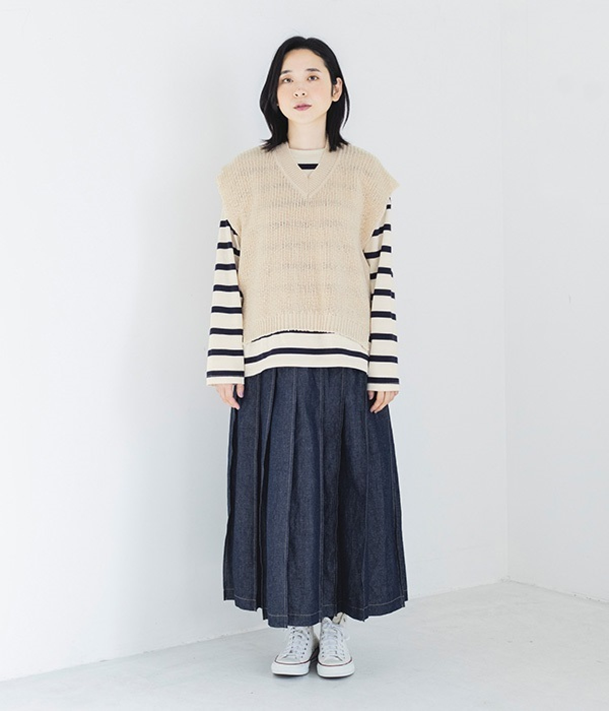 - ※お持ちのアイテムを平置きの状態で計測の上、サイズ表の寸法と比較してご検討ください。