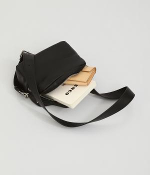 やわらかい手ざわりの合皮を使用しています。取り外し可能なショルダーは長さも調節可能です。