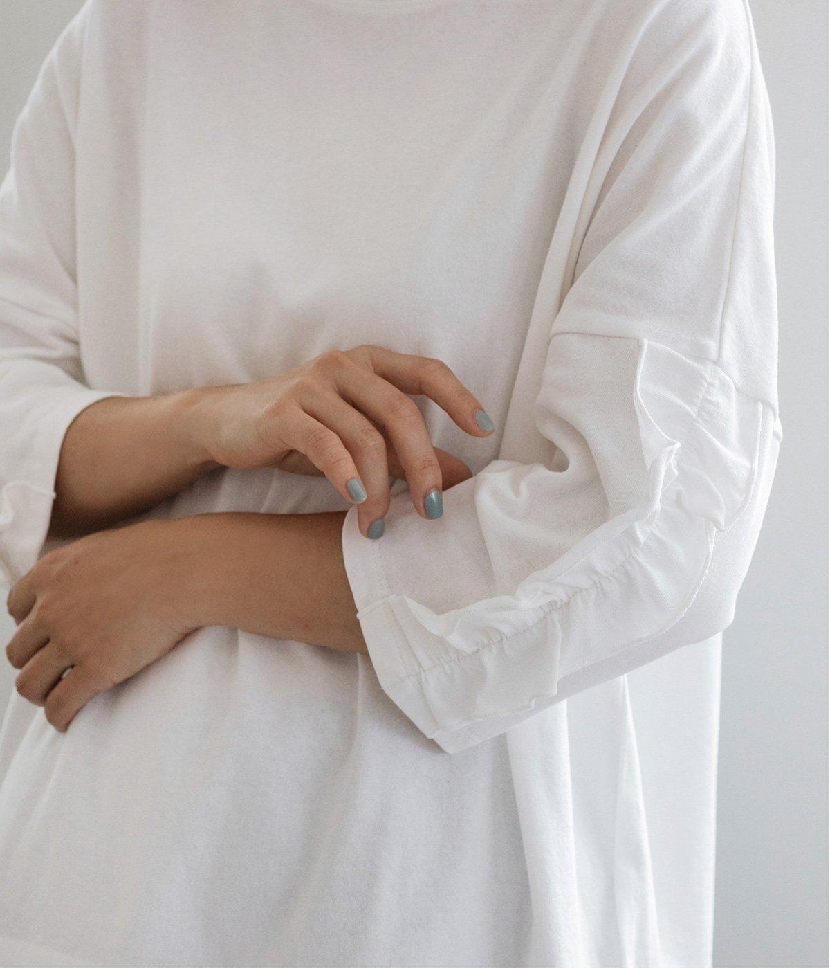 透け感を気にせず着用できる、安心感のある厚みも嬉しいポイント。カットソーながらカジュアルすぎないので、きれいめな印象を添えてくれます。