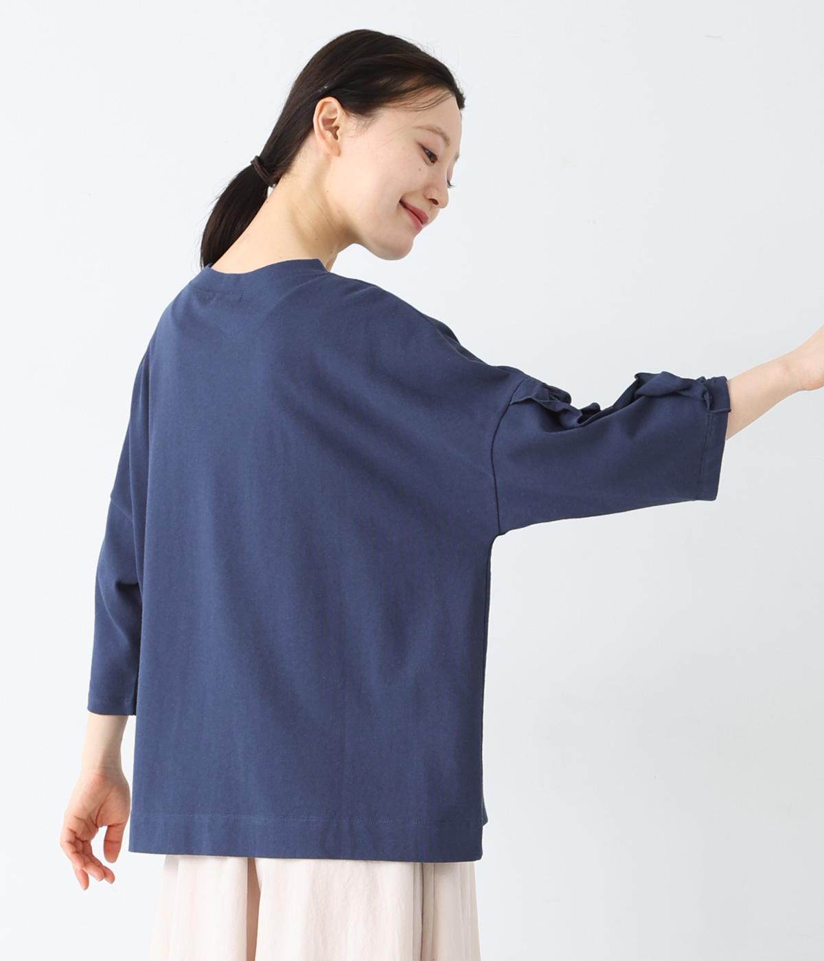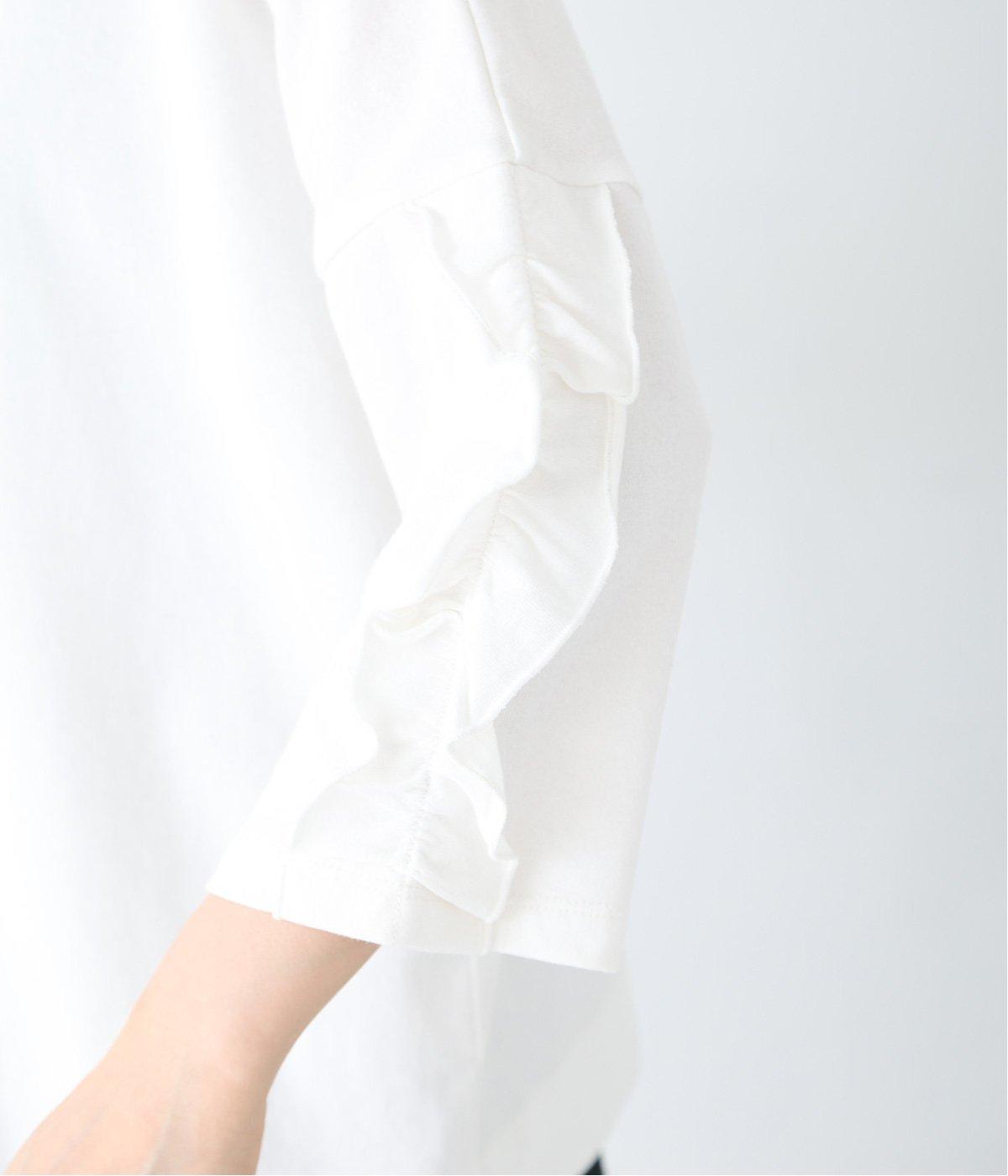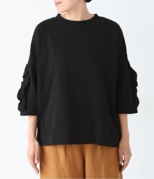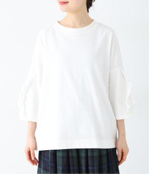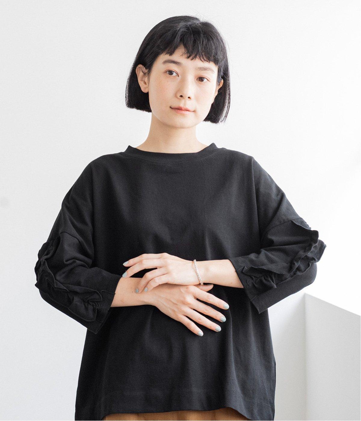 」より、袖にあしらわれたフリルが印象的なコットン6分袖Tシャツが登場。ゆったりとした着心地ながら、きちんと感も備えた上質な素材も魅力。どんなボトムスにも合わせやすい、デイリー使いにぴったりのアイテムです。