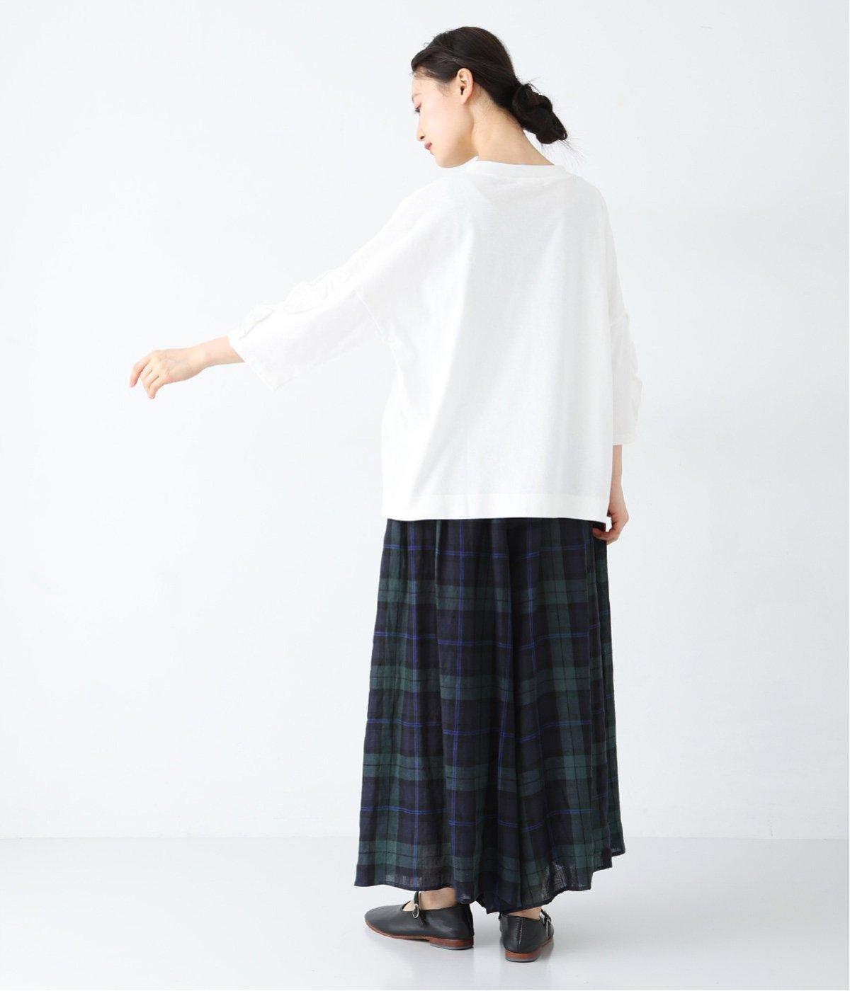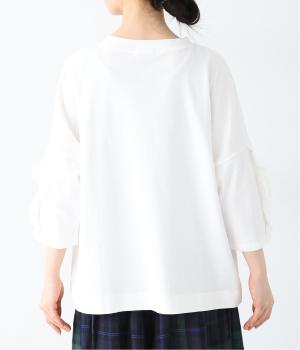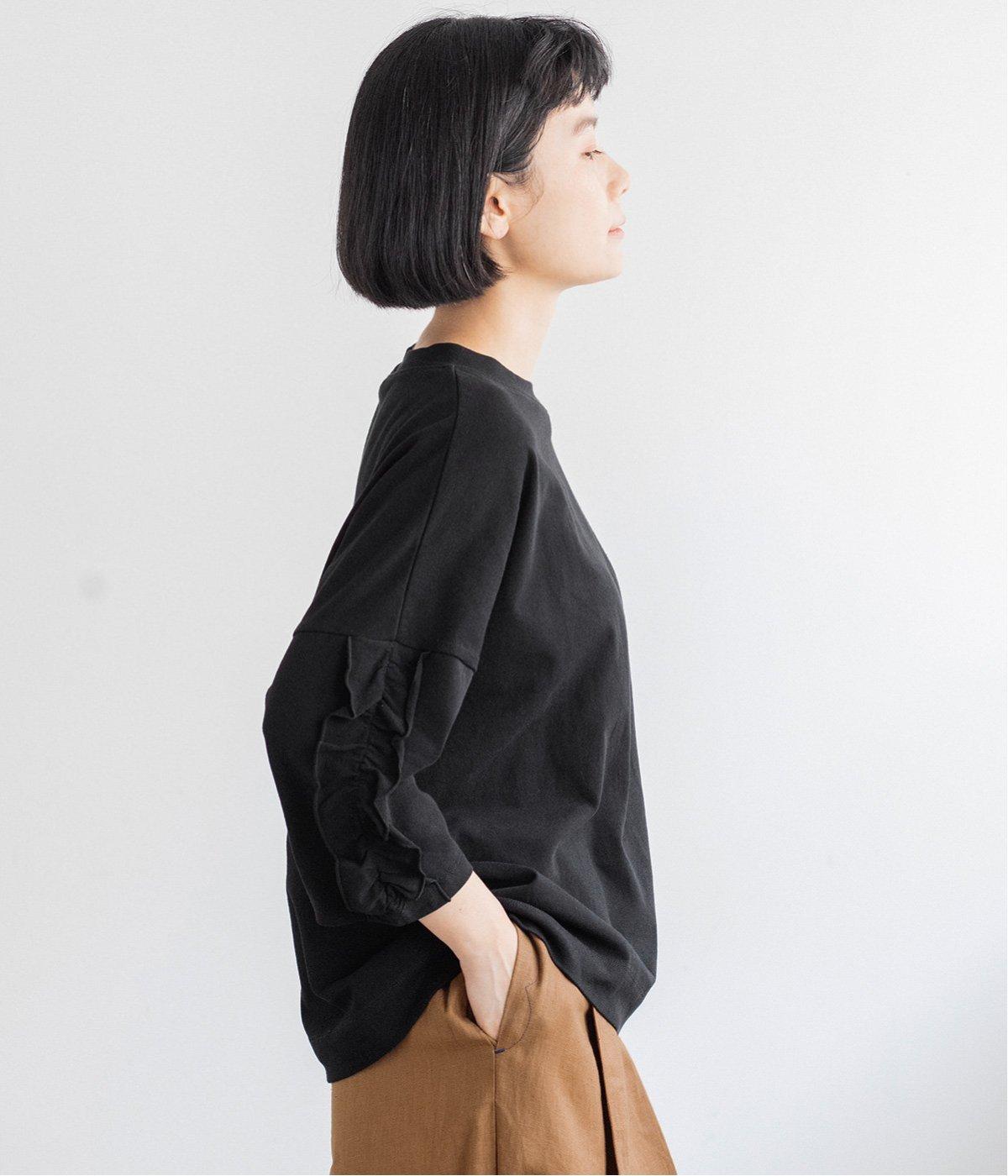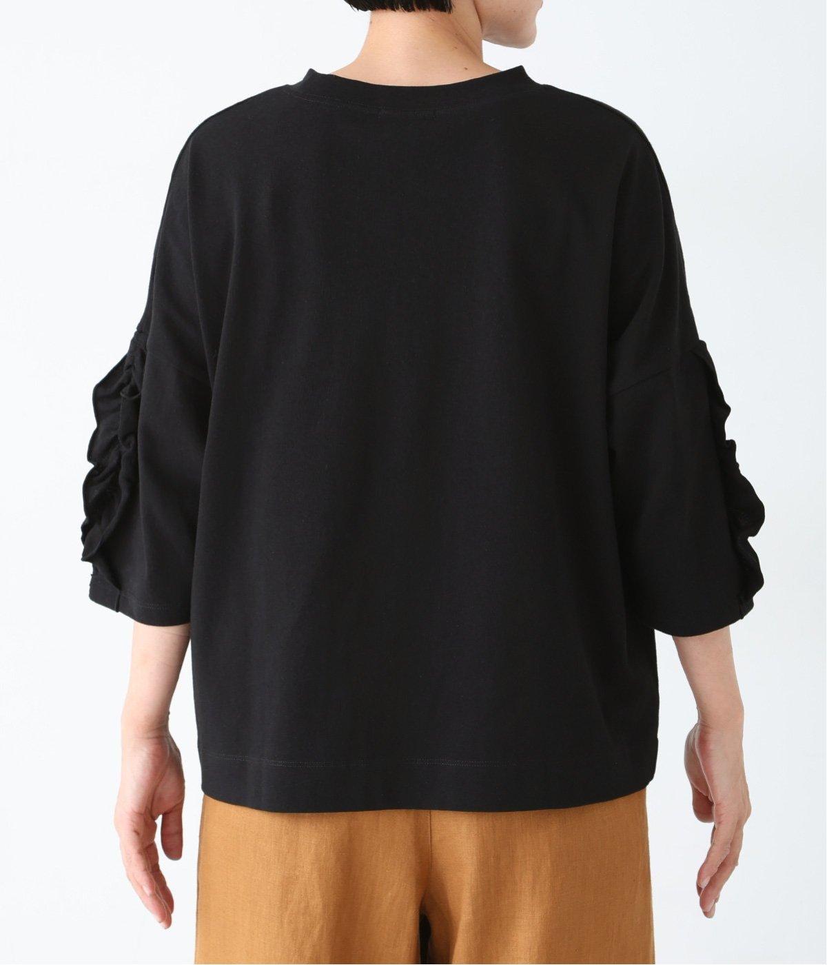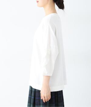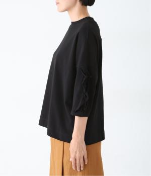 」より、袖にあしらわれたフリルが印象的なコットン6分袖Tシャツが登場。ゆったりとした着心地ながら、きちんと感も備えた上質な素材も魅力。どんなボトムスにも合わせやすい、デイリー使いにぴったりのアイテムです。