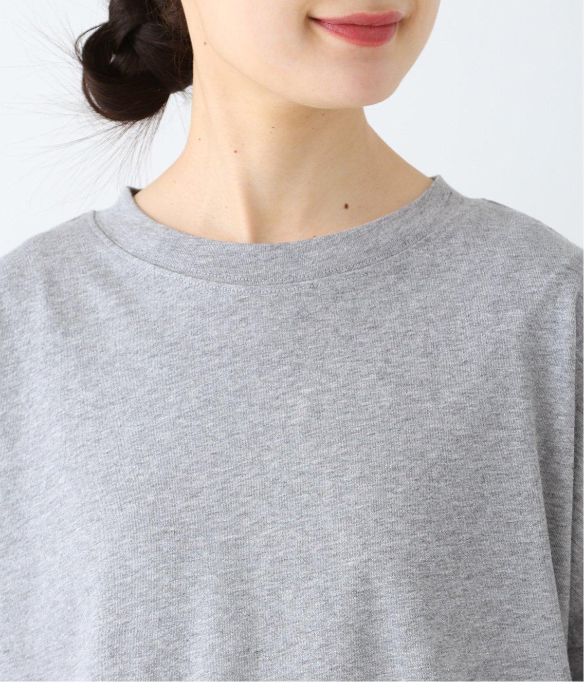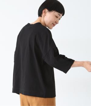 首元はすっきりとしたクルーネック。ひじが隠れる絶妙な丈感の6分袖で、季節の変わり目にも頼れる一枚です。