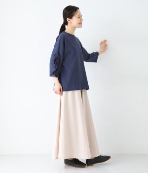 光沢感のあるレーヨンリネンを使用した、美しいドレープが映えるフレアースカート。広がりすぎないすらりとした佇まいが素敵です。