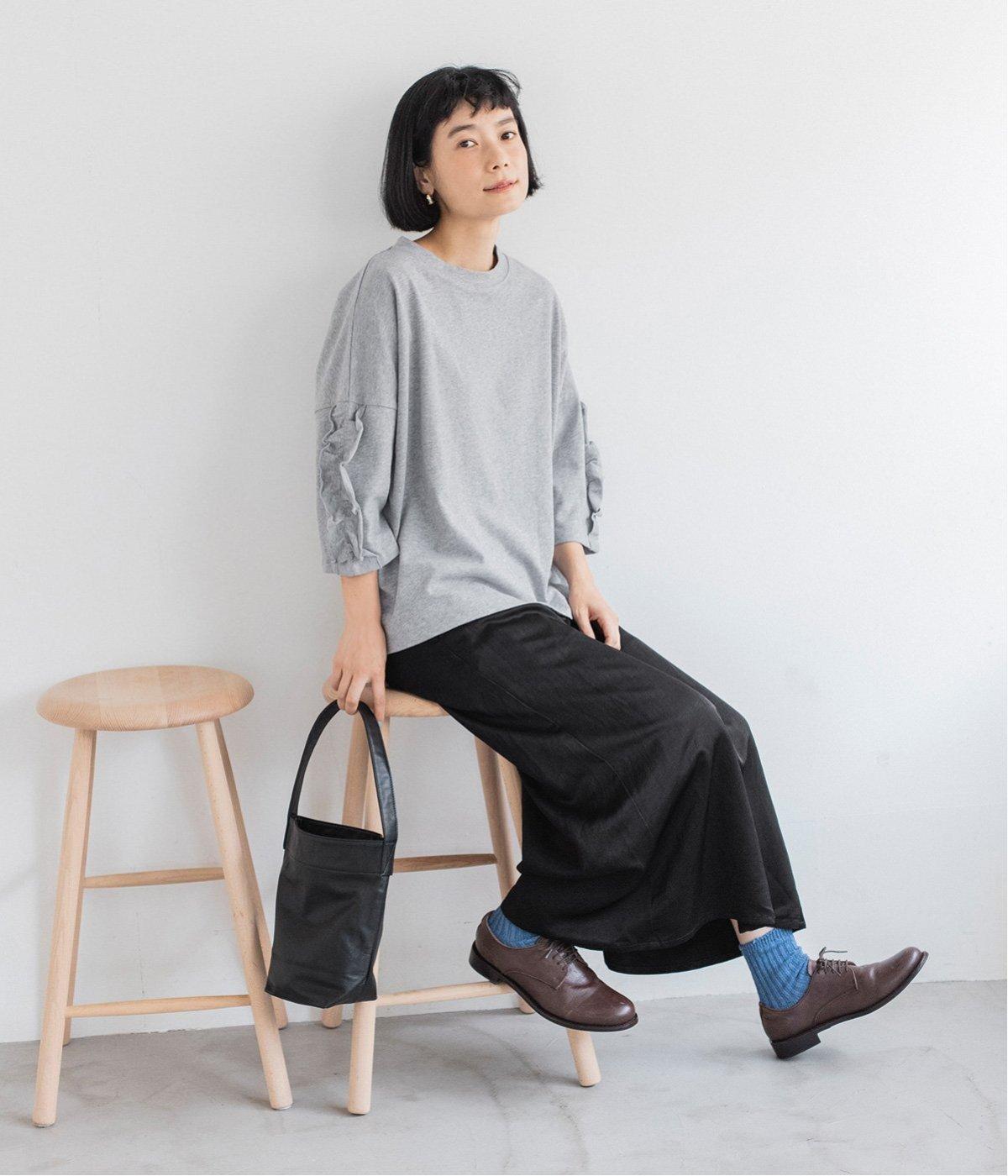 フリルが目を惹く、抜け感のある6分袖ワイドカットソー。身体のラインを拾いにくいボックスシルエットで、落ち着いた雰囲気を叶えるディテールが随所にちりばめられています。「最近、どんなTシャツを着たらいいのかわからなくて…」という方にもぜひお試しいただきたい一枚。