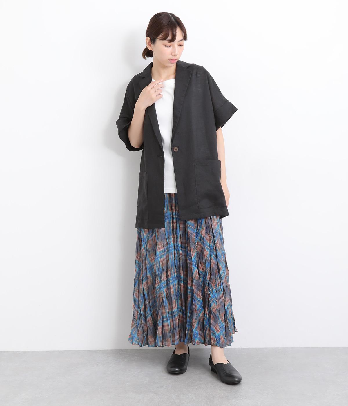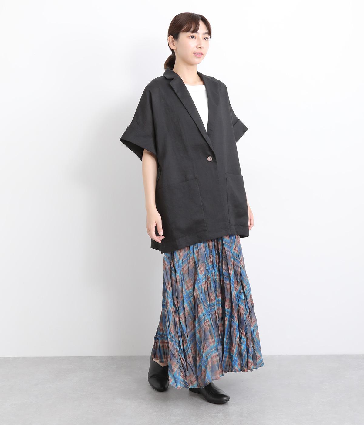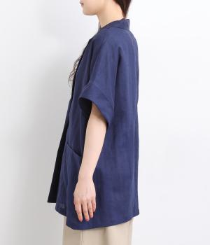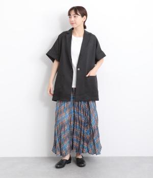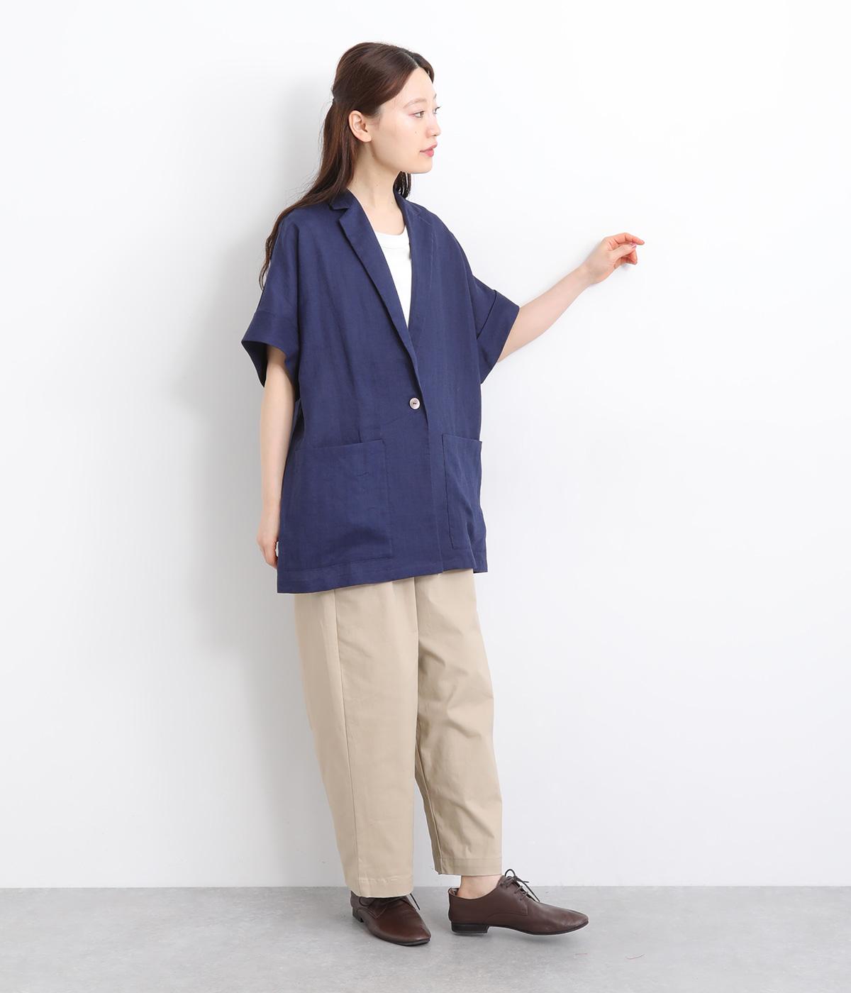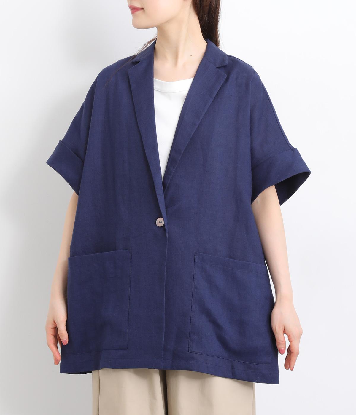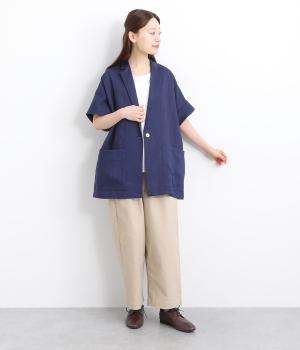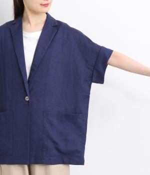 さらっとラフに羽織りやすいのにきちんと見えも叶える半袖ジャケット。汗ばむ時期や季節の変わりめにも活躍します。シンプルなひとつボタン仕様は、大きめで光沢のあるシェルをセレクトしてポイント使いに。太めに折り返した袖口もグッドニュアンスです。