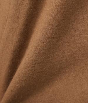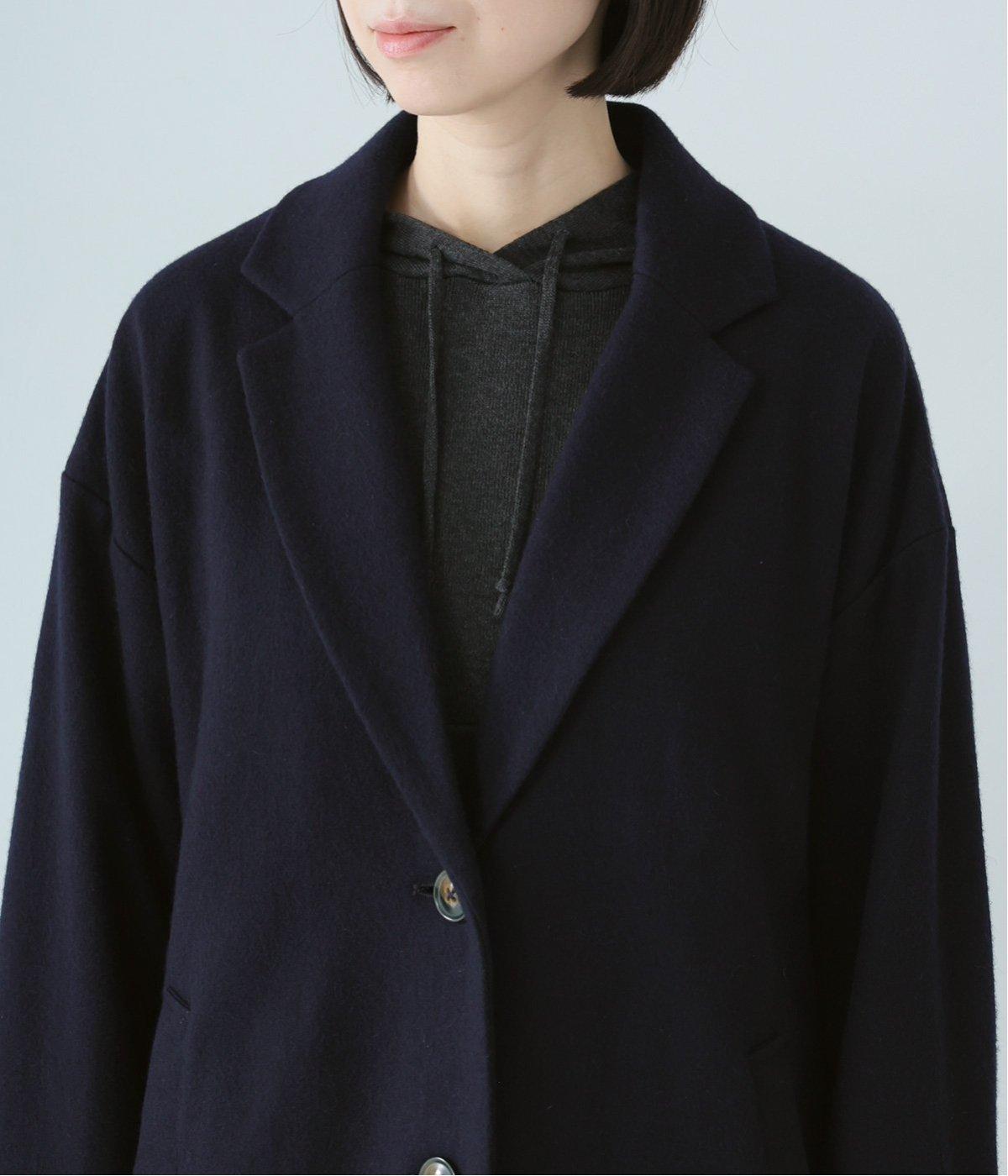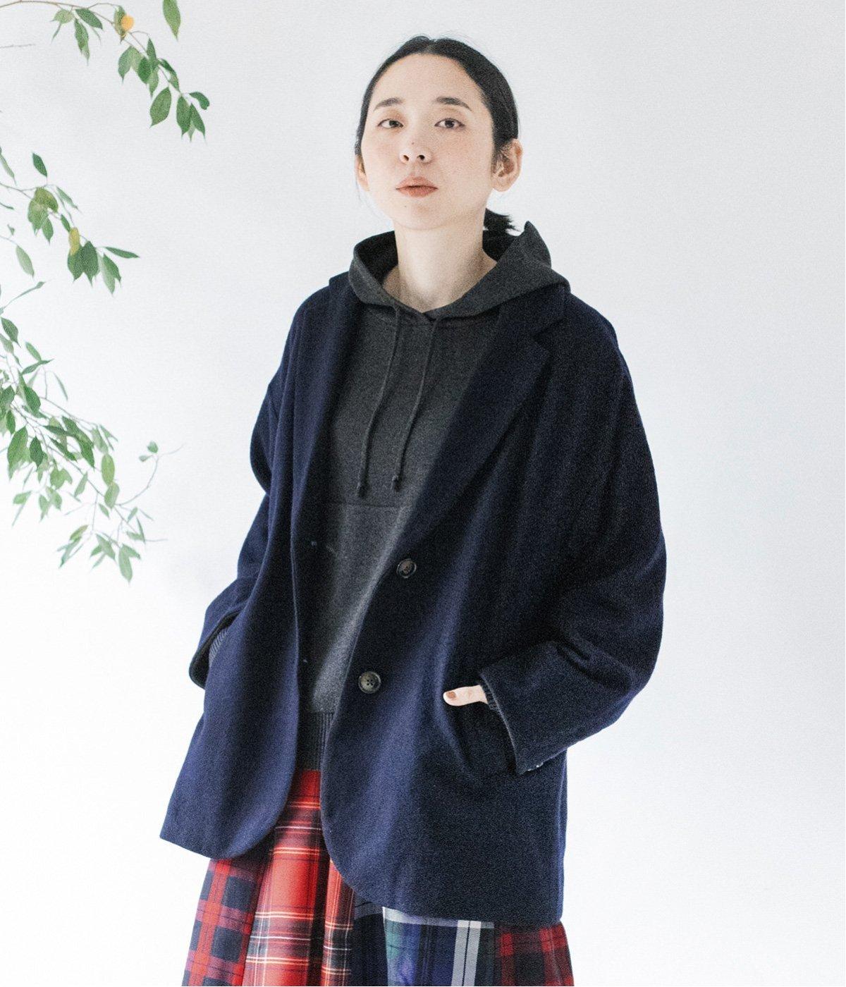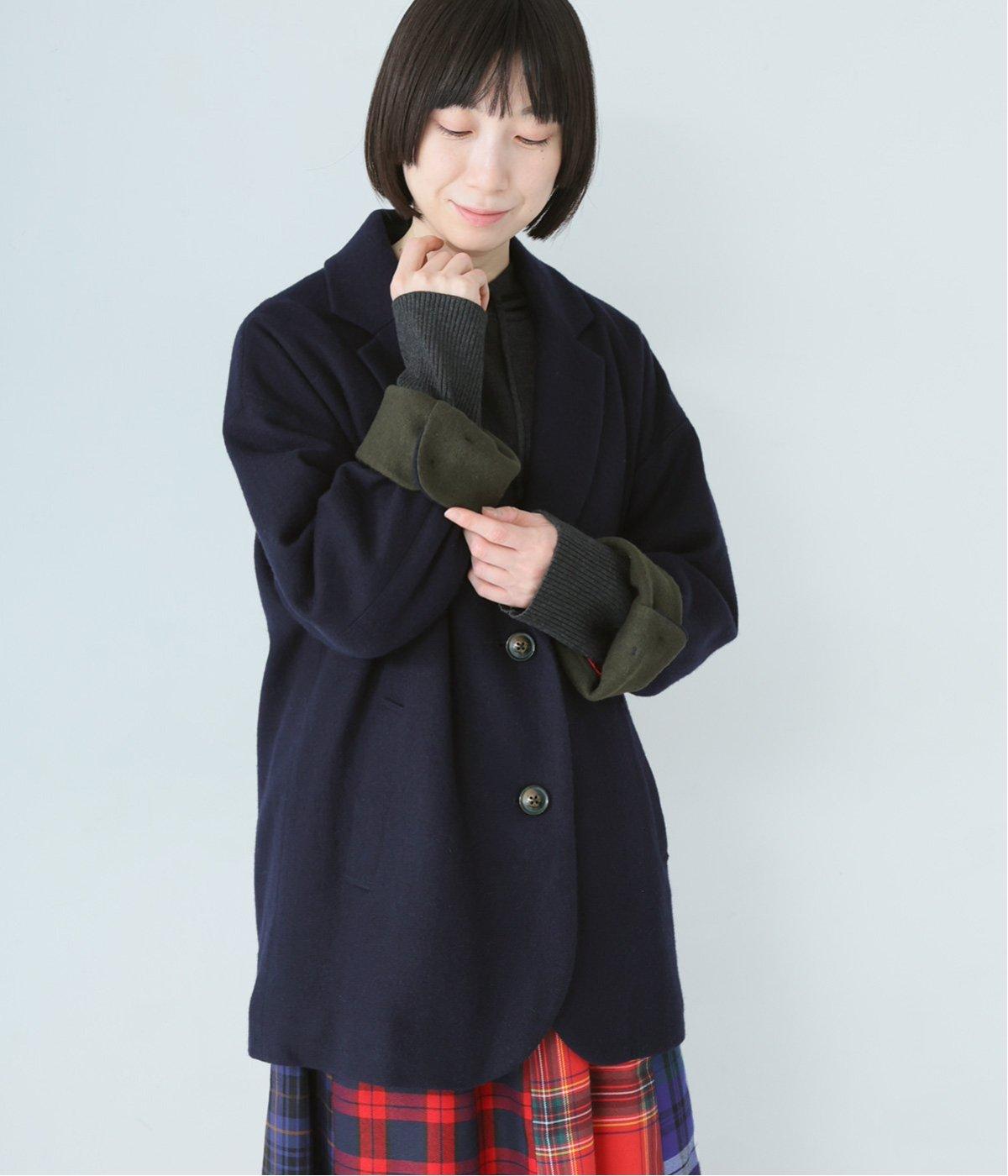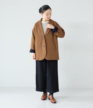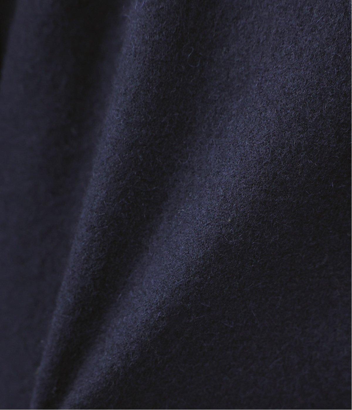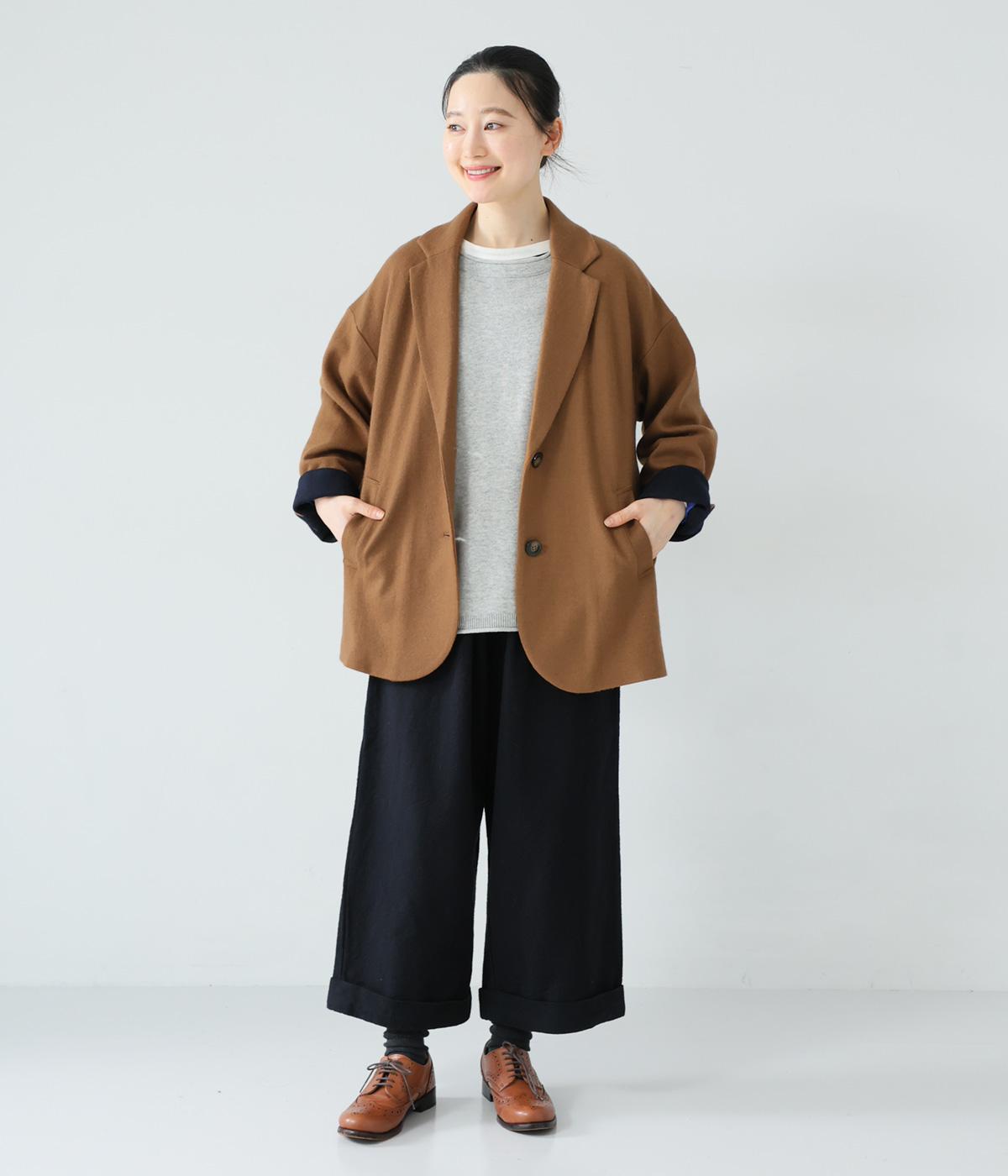 ウールの圧縮ニット天竺を使用。ふんわり軽くてあたたかい、やわらかな風合いが堪能できます。一見シンプルながらも裏地や袖口の配色使いなど、こだわりが詰まった一枚。