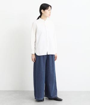適度な厚みがありながらも、くたっとやわらかな表情を備えたコットンデニム。はじめて穿くときから、しっくりと体になじんでくれます。通年対応の生地で、一枚あると重宝。