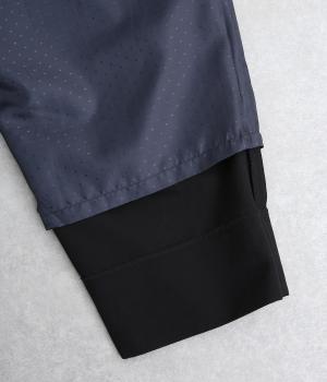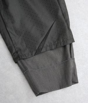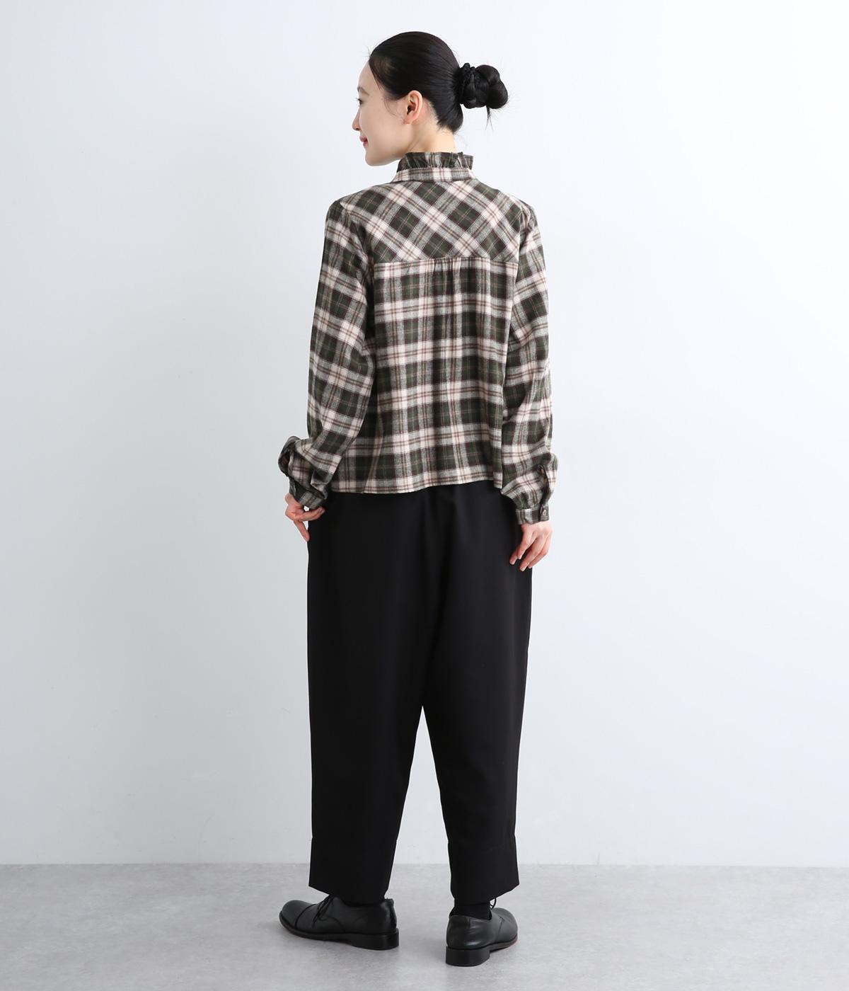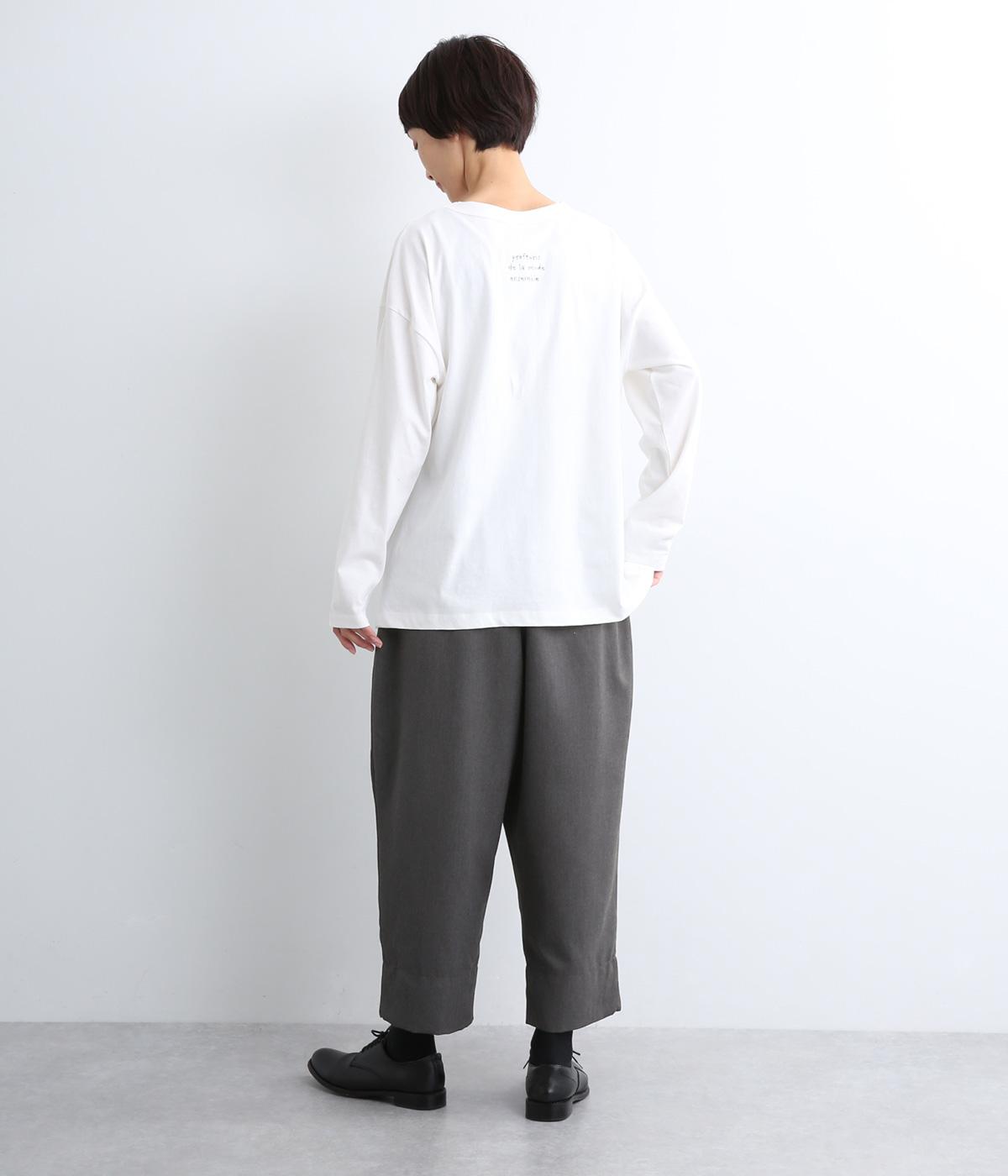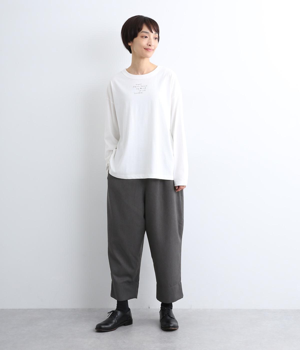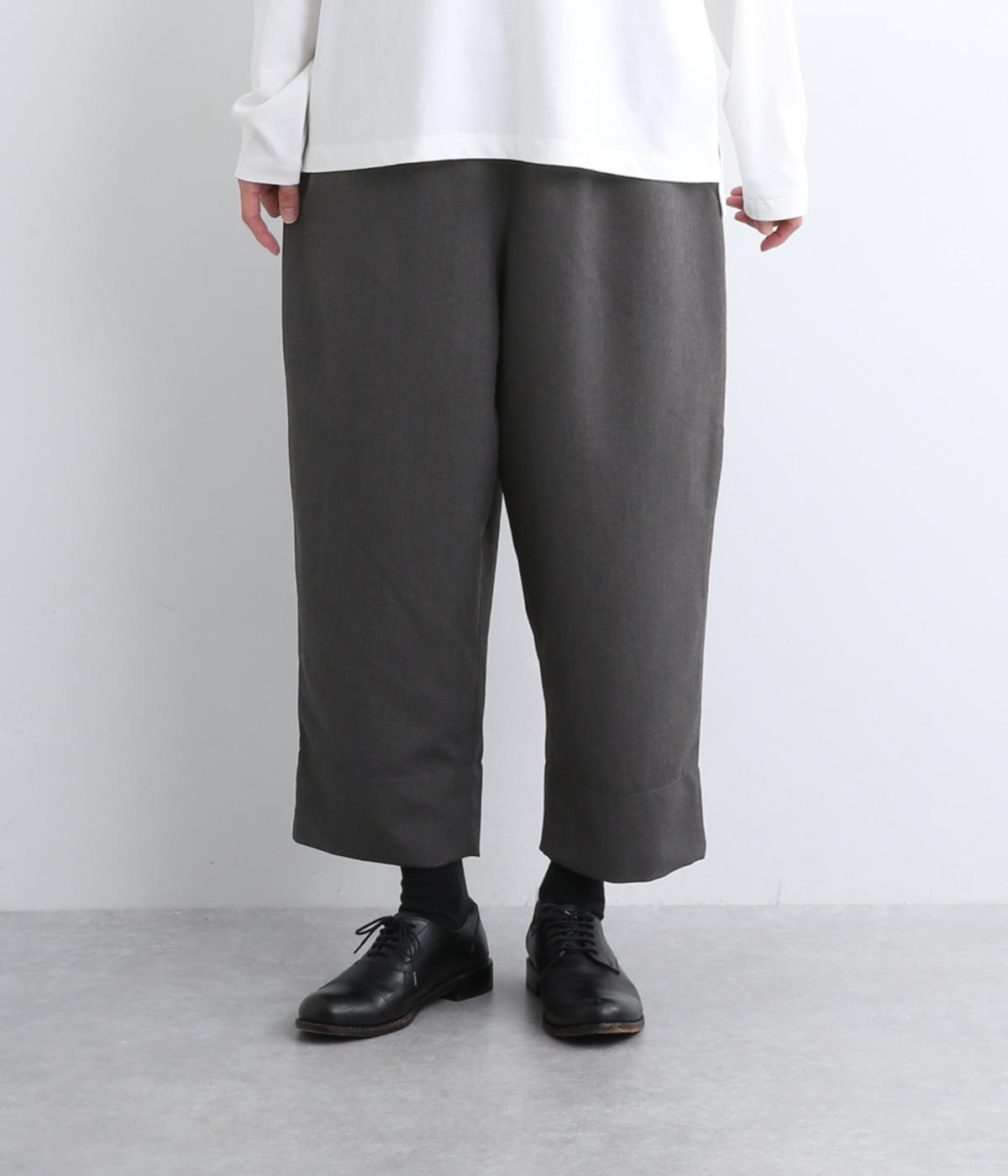 腰まわりから太ももまでゆったりとさせ、裾をきゅっと細くしたテーパードラインが特徴。丈を短めに設定して足元にすっきりとした抜け感をプラスしました。シューズやソックスが映えるので、足元のコーディネートをたのしめるのが◎。ウエストは総ゴム仕様で、フィット感を高める内紐つきです。