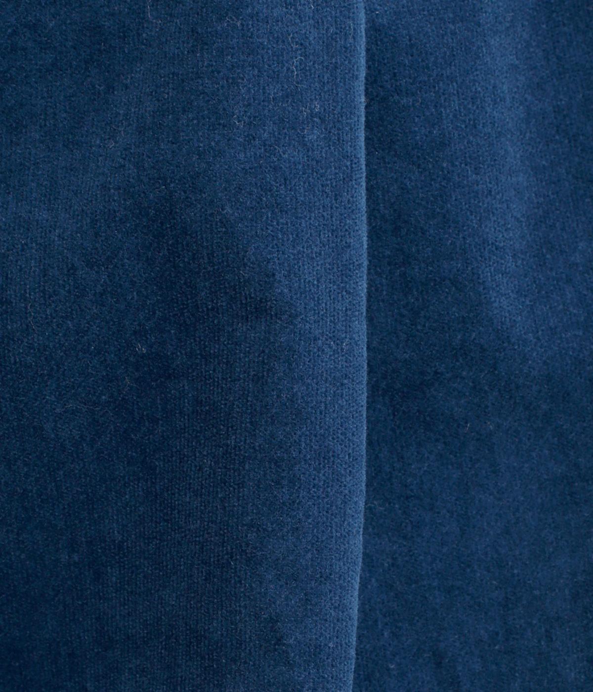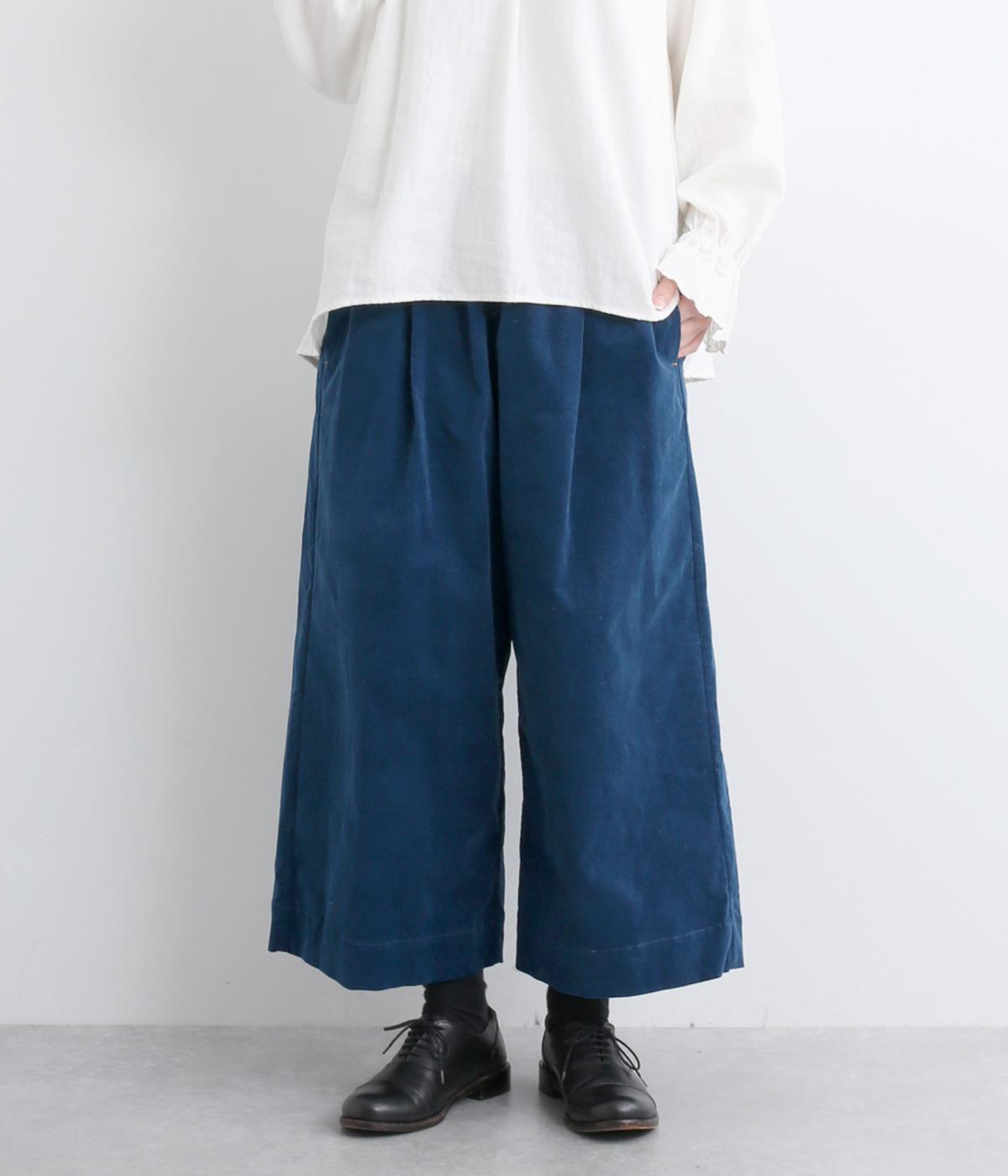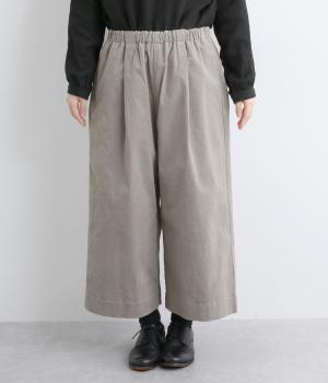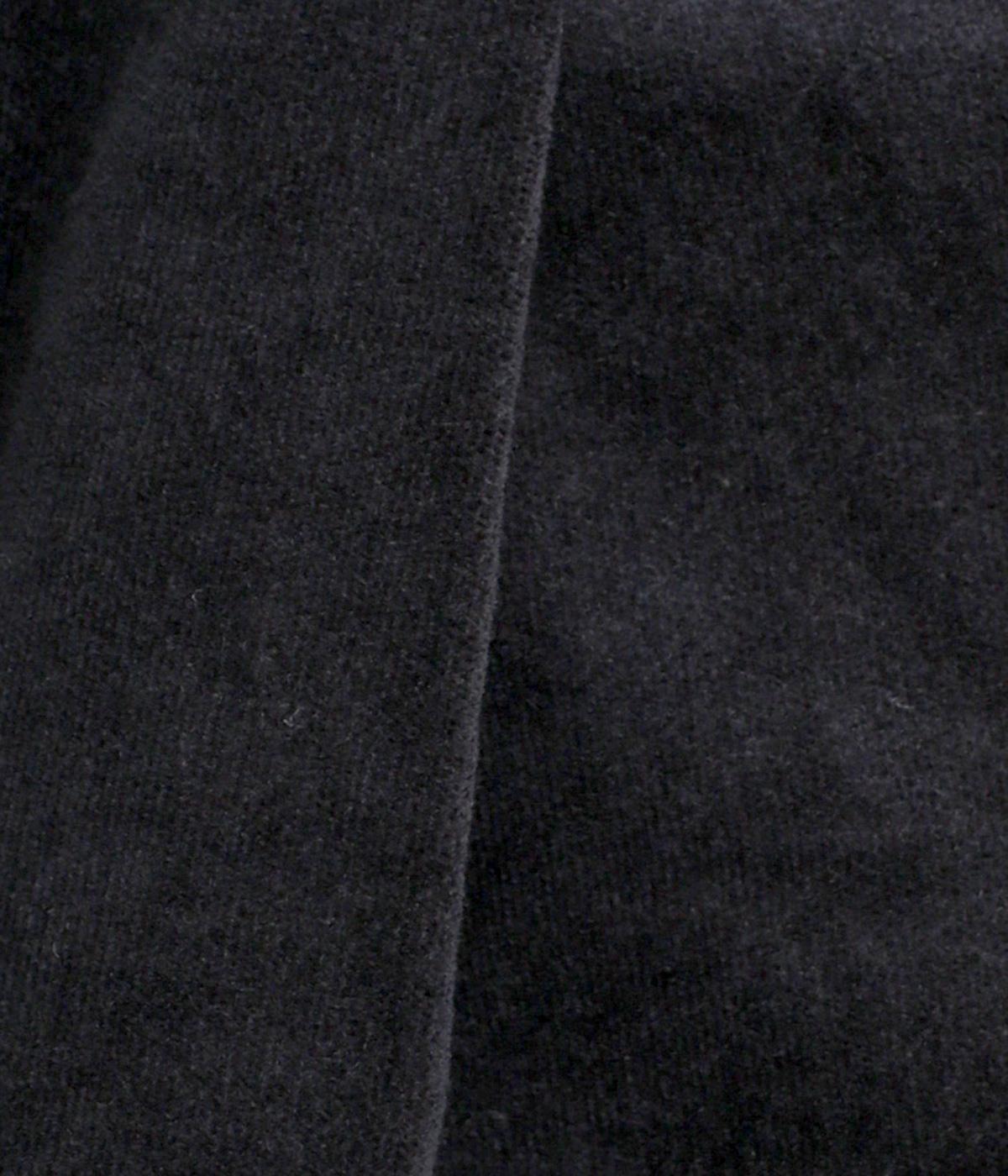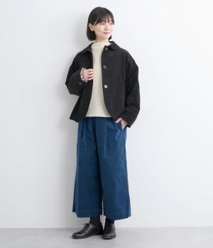 ほのかな起毛や微光沢が品よく大人顔な別珍素材を使用。表地はストレッチがきいているので動きやすく、すべりのいい総裏地つきで肌あたりも良好です。