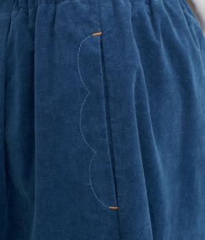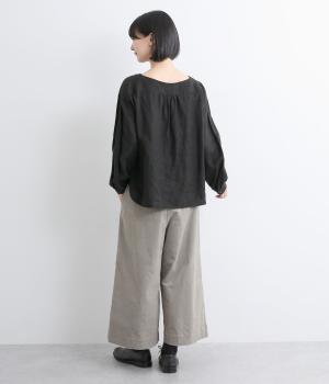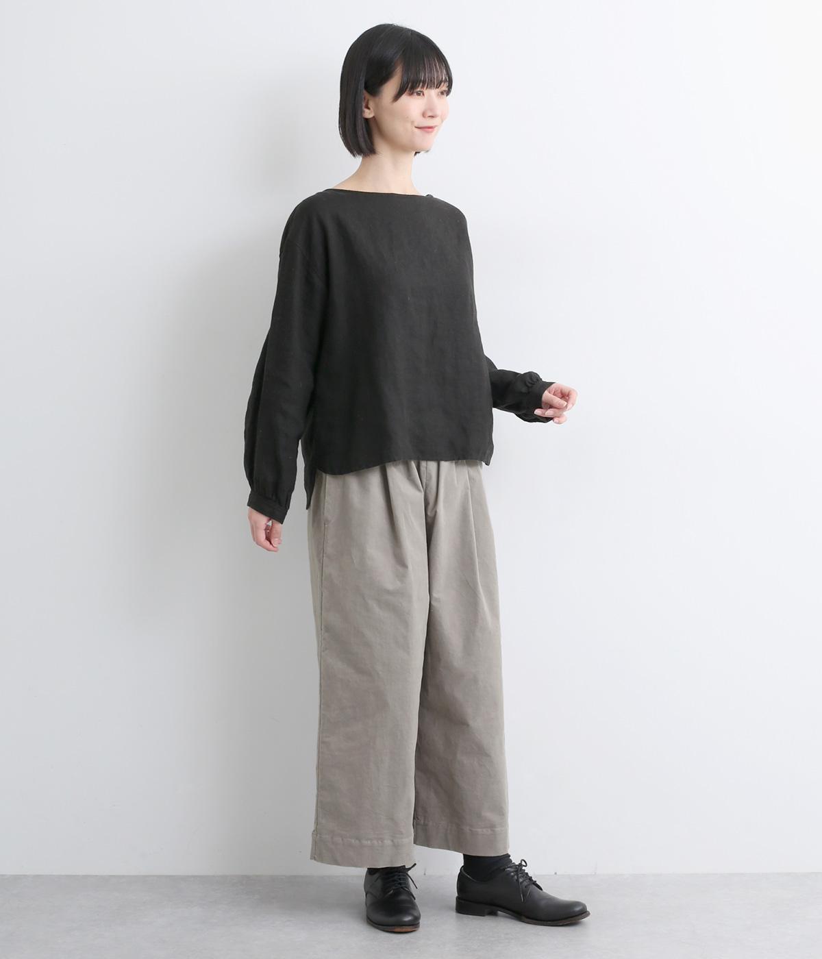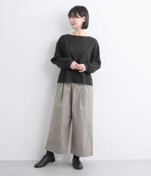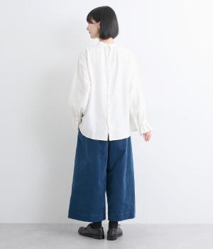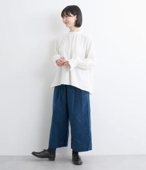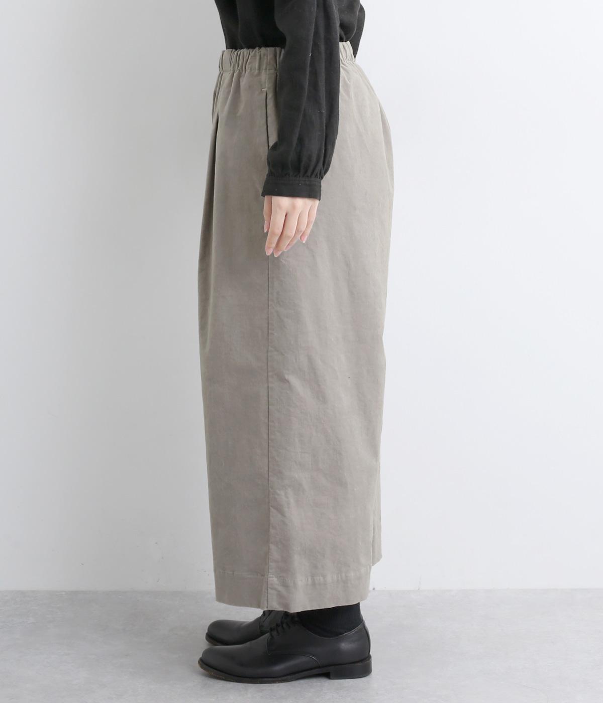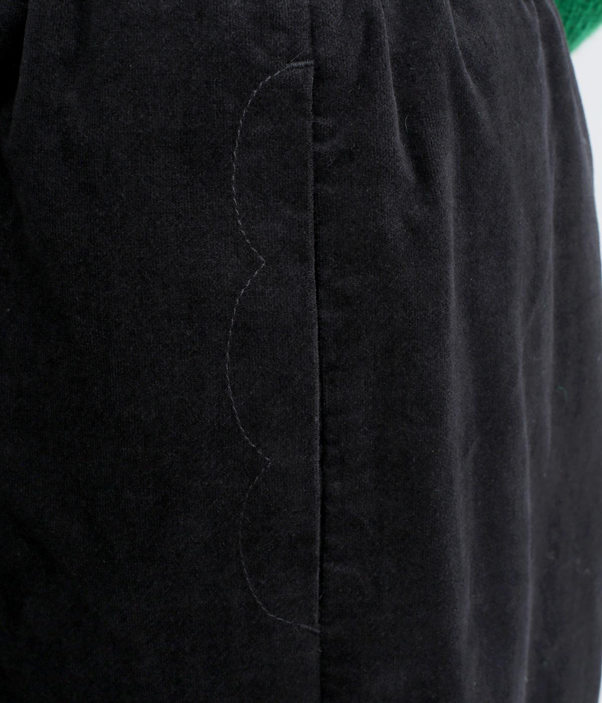 ほのかな起毛や微光沢が品よく大人顔な別珍素材を使用。表地はストレッチがきいているので動きやすく、すべりのいい総裏地つきで肌あたりも良好です。