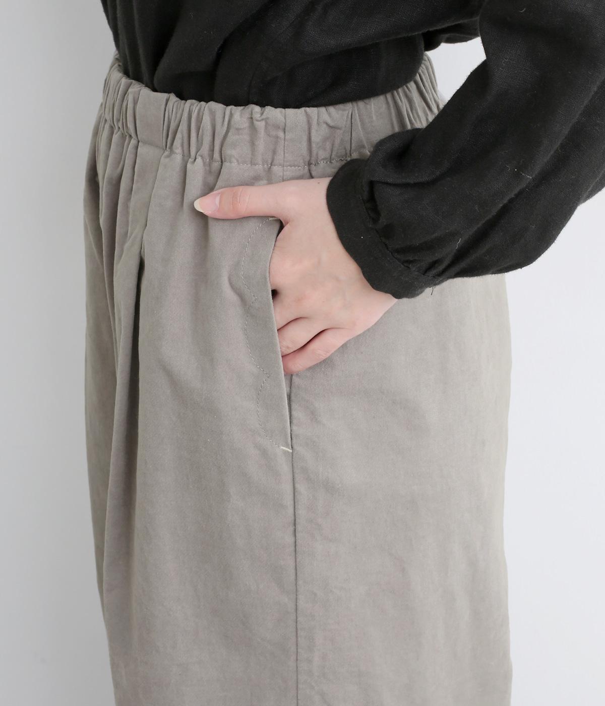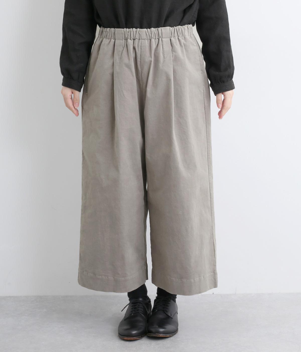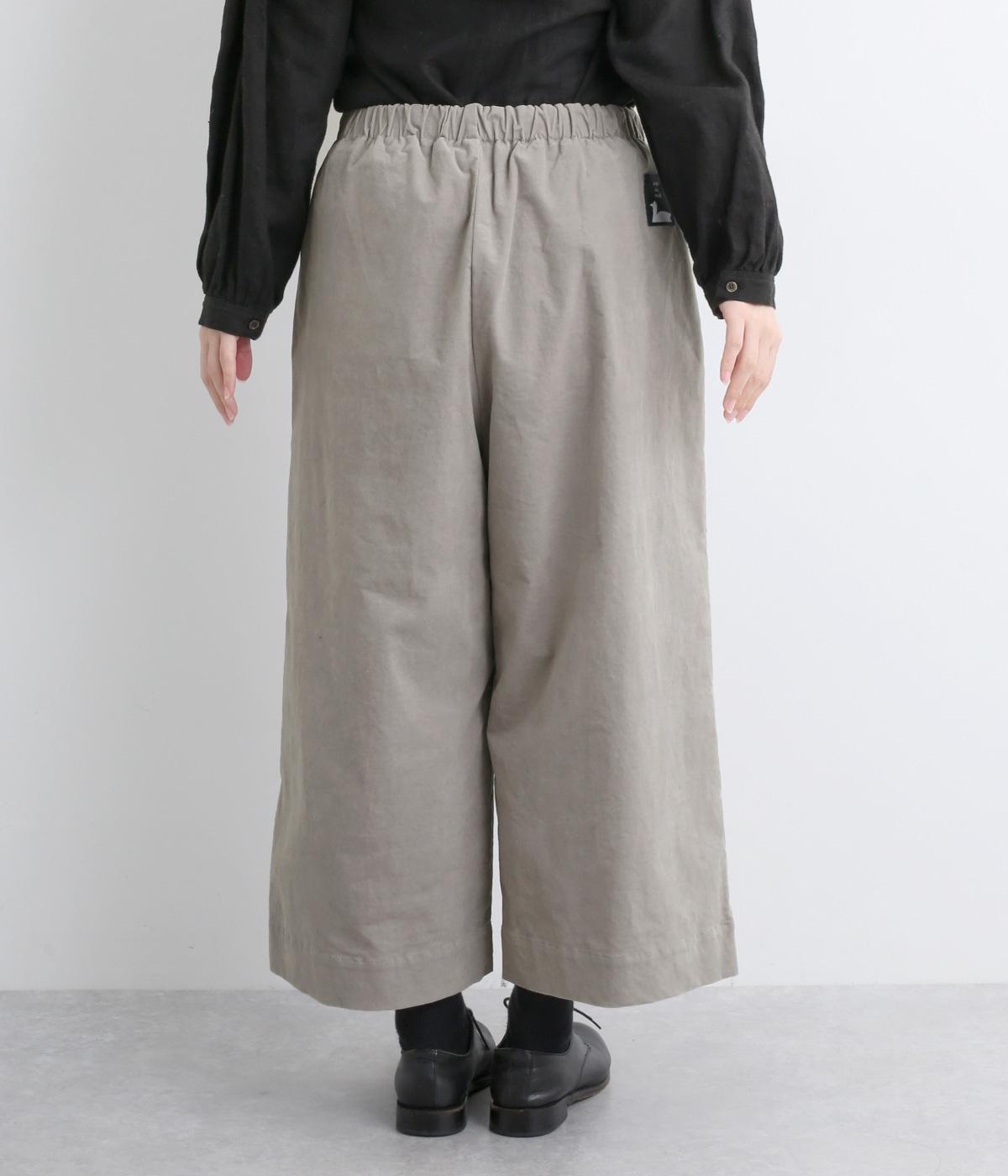 広がりすぎずはきこなしやすいセミワイドシルエット。足元がすっきり見えるクロップド丈でコーディネートバランスも取りやすくなっています。ヒップのスワンタグやポケット口のスカラップステッチがこだわり。ウエストは総ゴム&内紐入りです。