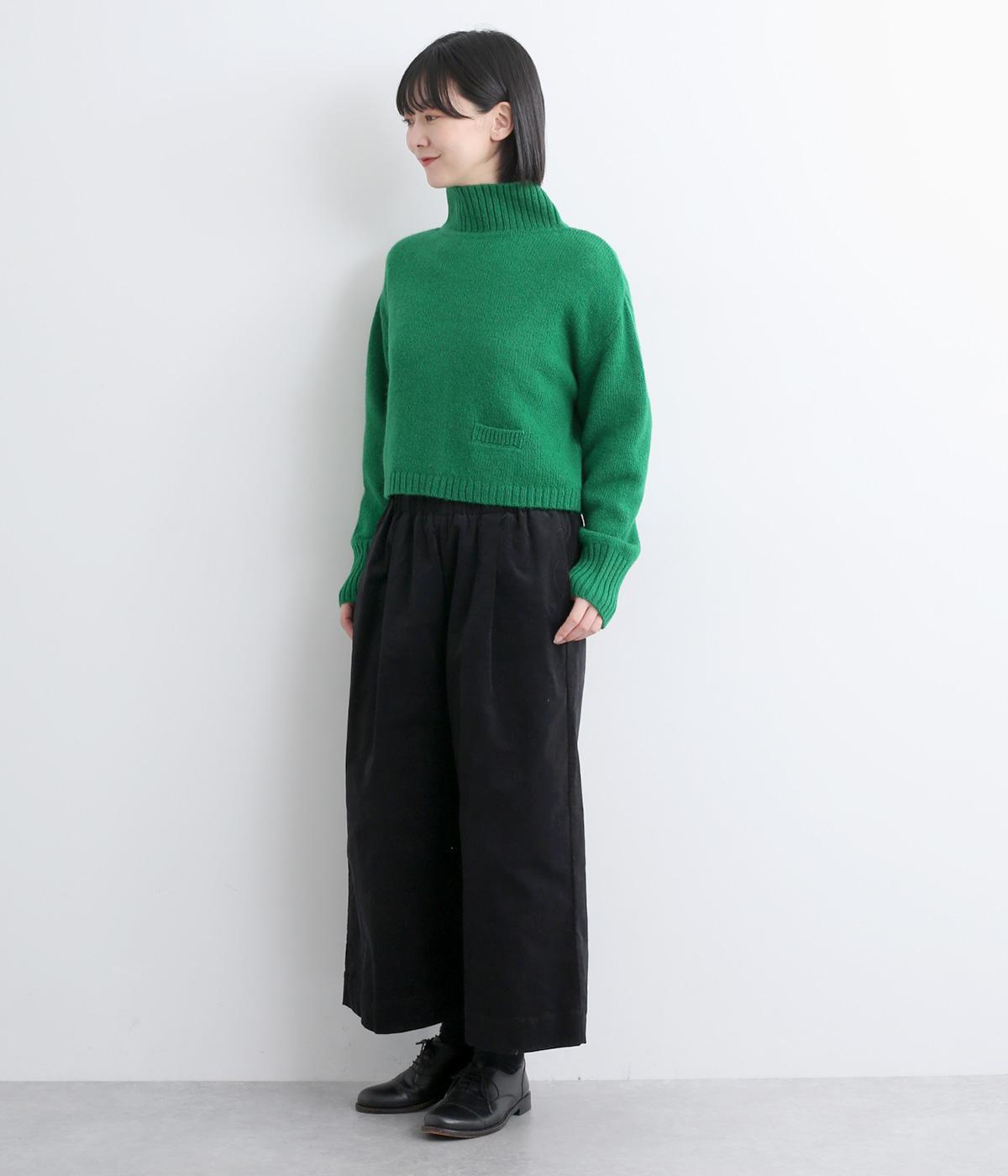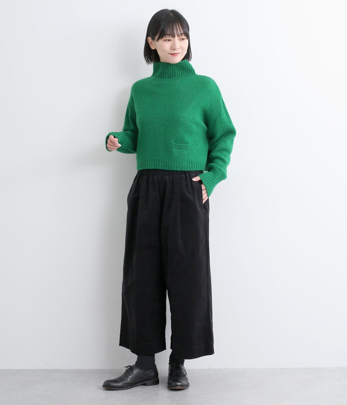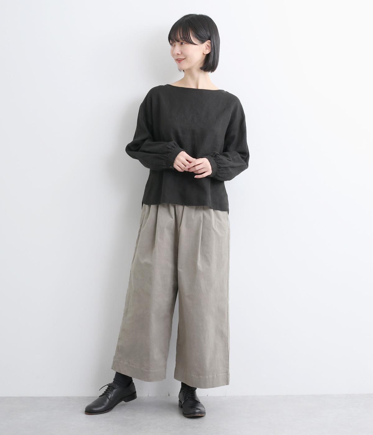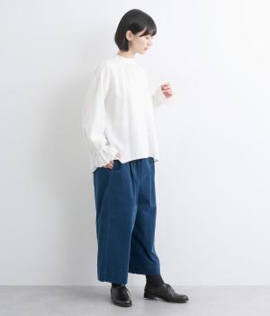 広がりすぎずはきこなしやすいセミワイドシルエット。足元がすっきり見えるクロップド丈でコーディネートバランスも取りやすくなっています。ヒップのスワンタグやポケット口のスカラップステッチがこだわり。ウエストは総ゴム&内紐入りです。
