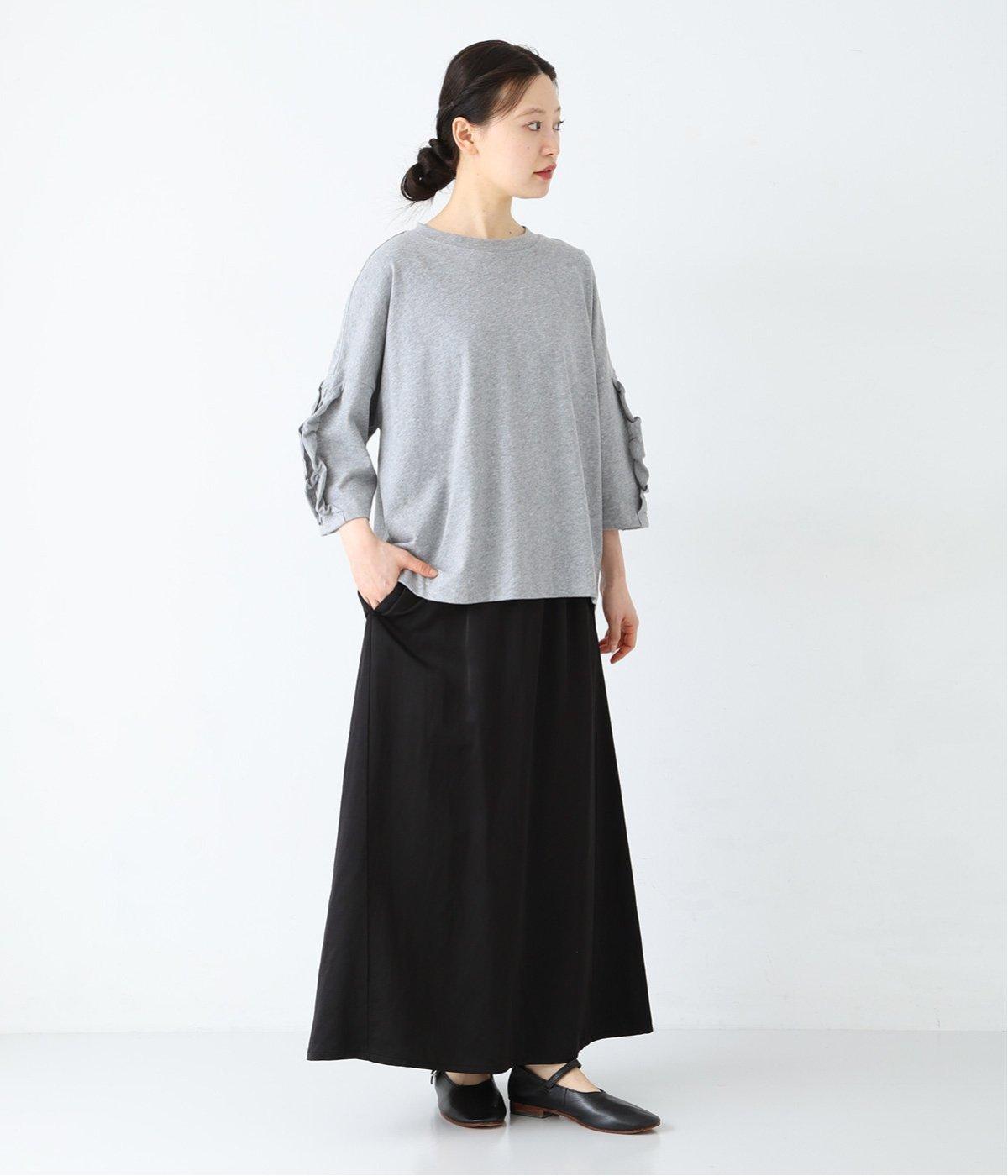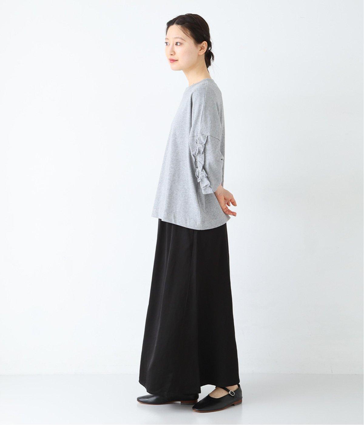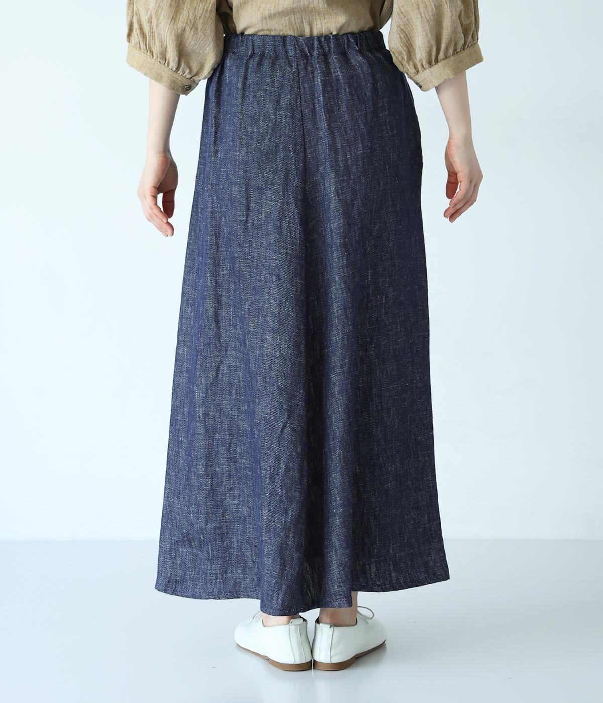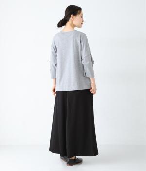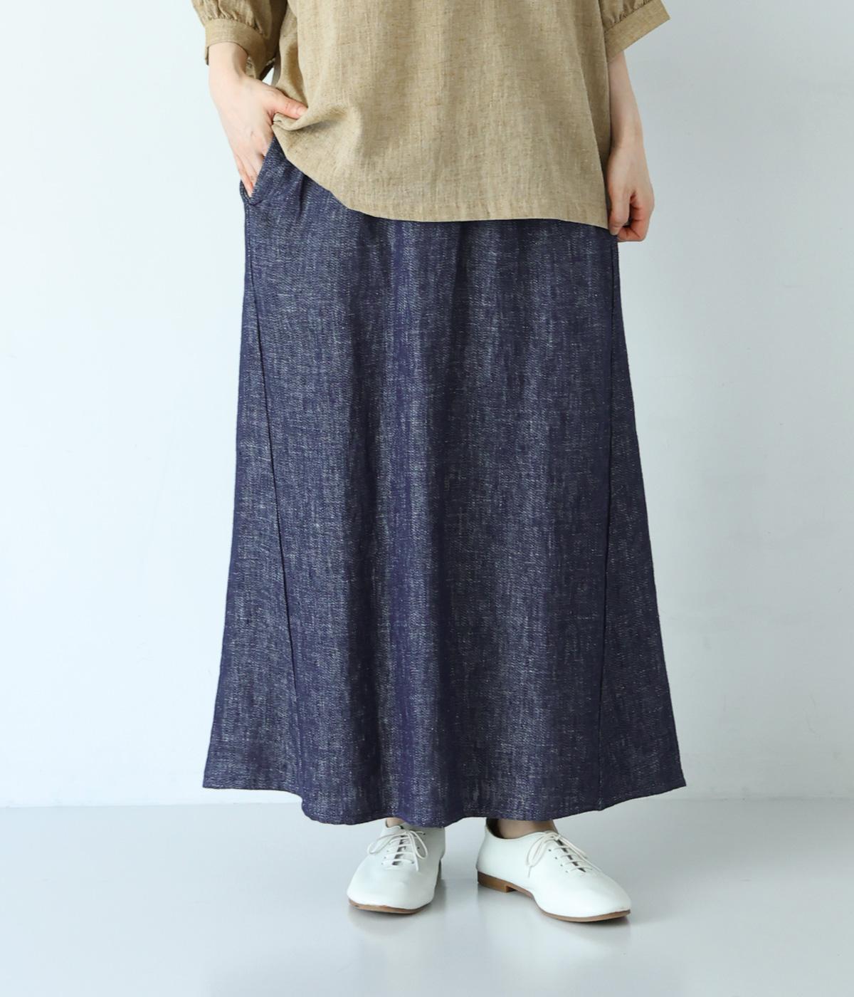 美しいドレープが映えるフレアースカート。大人の女性らしさを引き立てる広がりすぎない絶妙なボリューム感がポイントで、カジュアルにもきれいめにもすっとなじみます。両サイドには、さりげないスカラップステッチをほどこしたポケットつき。総ゴム仕様のウエストには紐を通しています。