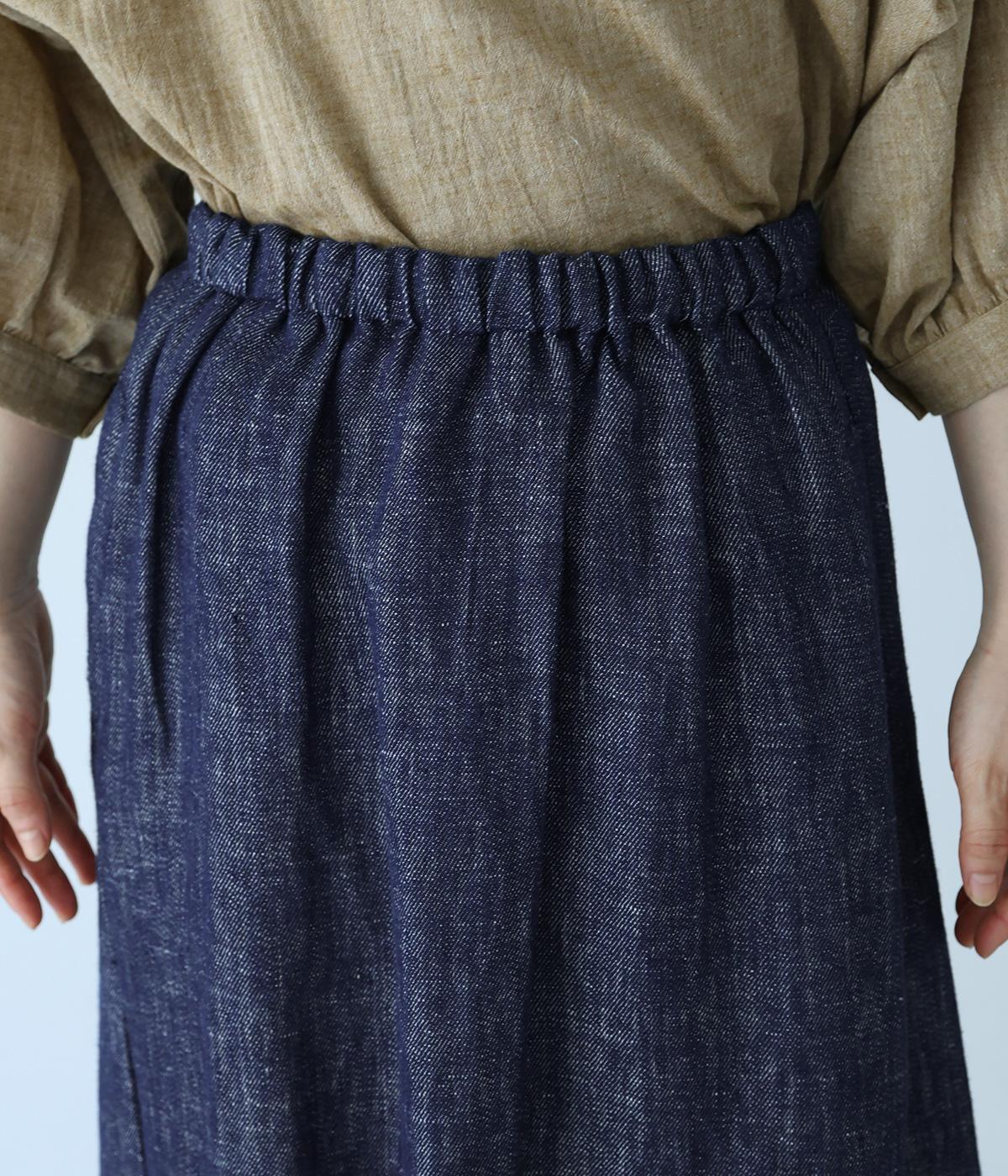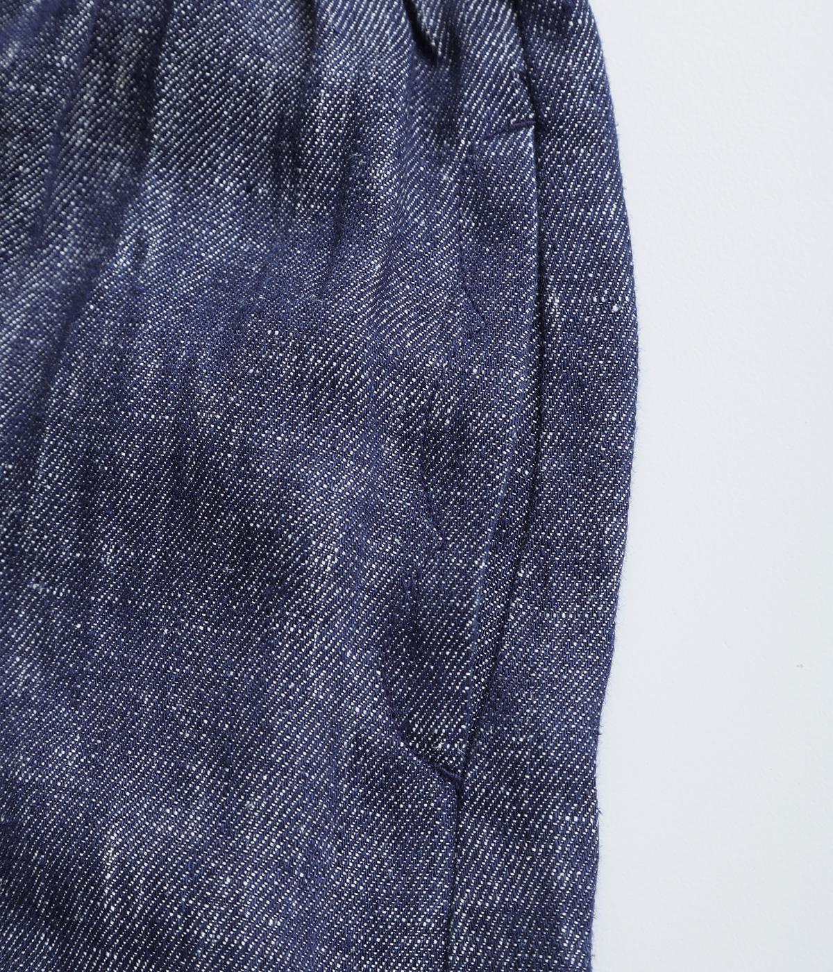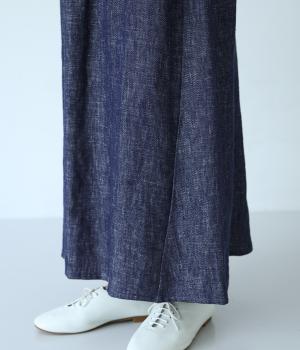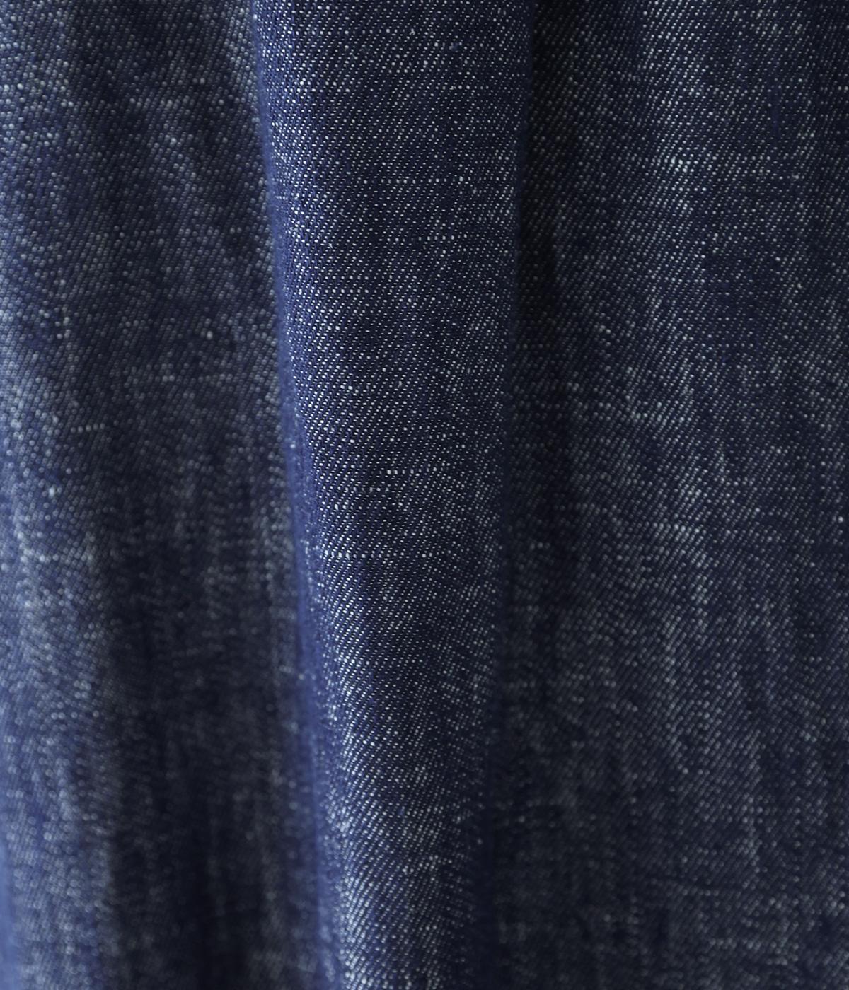 ブラックは上品な光沢感とさらっとした質感が特徴のレーヨンリネンを使用したサテン生地。インディゴは適度なハリと肉感のある、デニム風のリネンシャンブレー素材です。