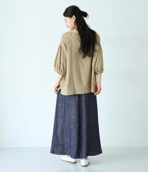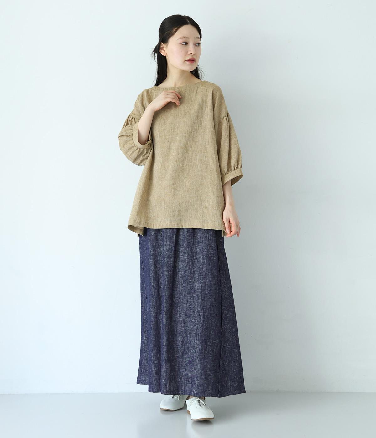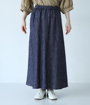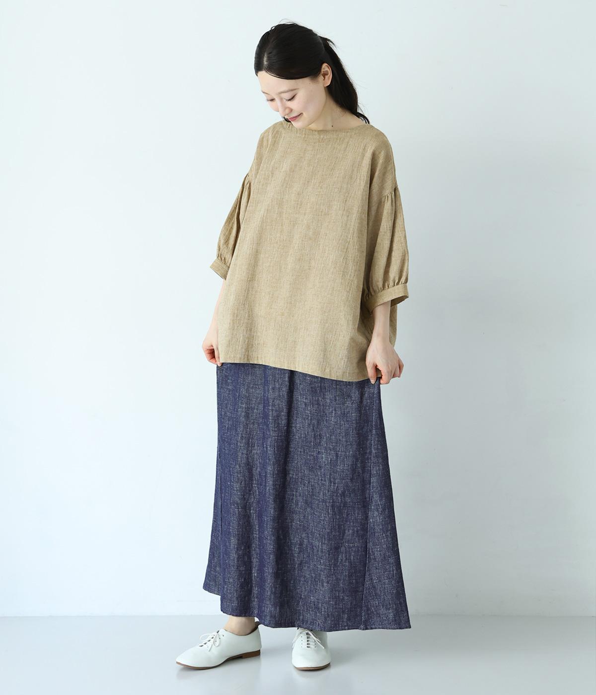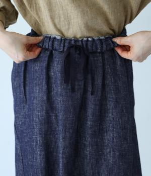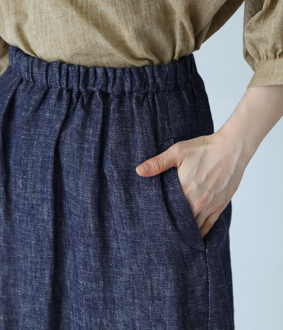 ブラックは上品な光沢感とさらっとした質感が特徴のレーヨンリネンを使用したサテン生地。インディゴは適度なハリと肉感のある、デニム風のリネンシャンブレー素材です。