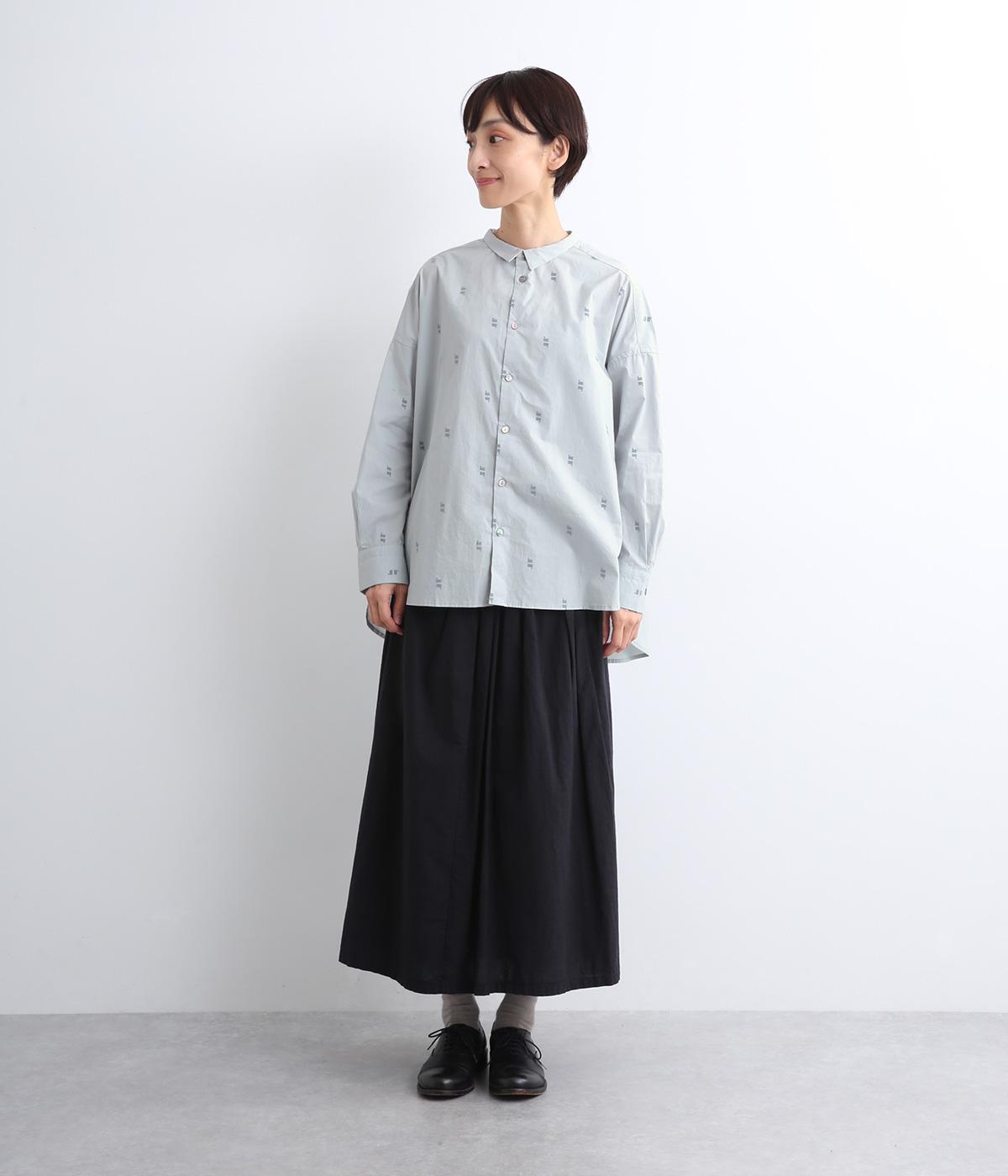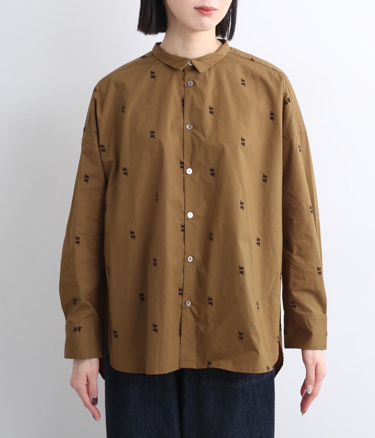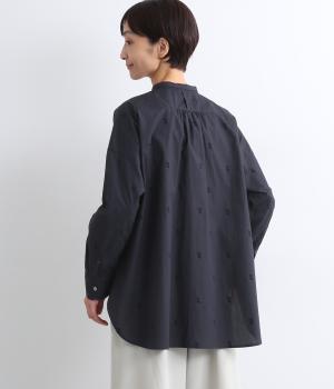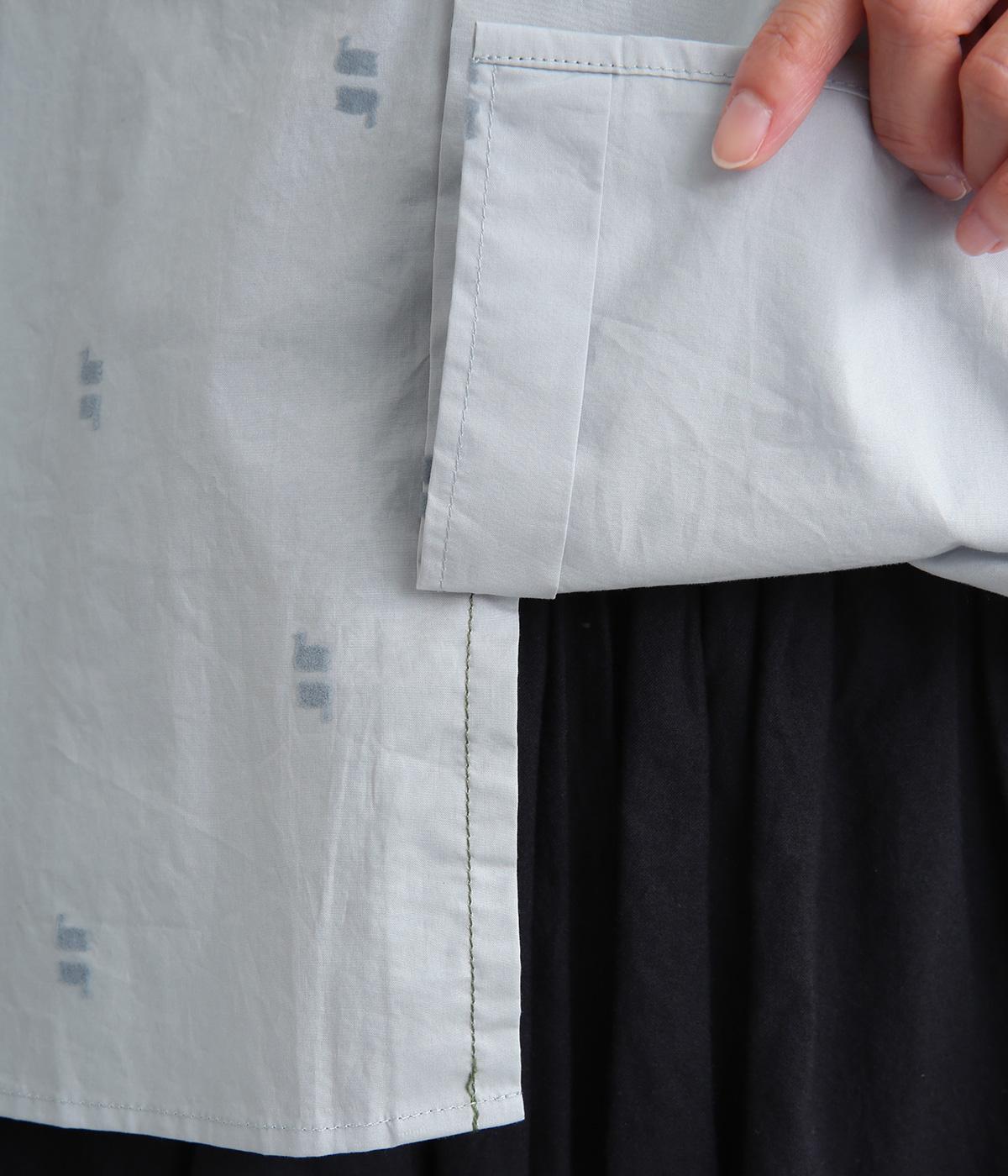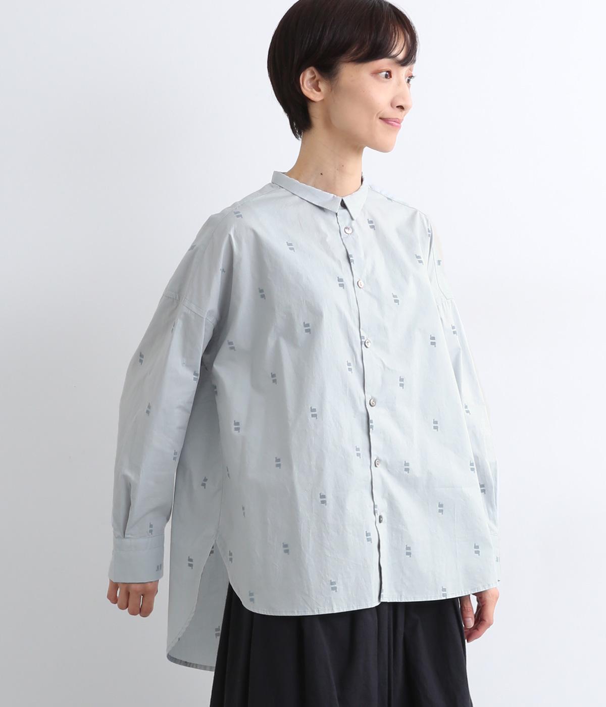 スワンが水面に映ったように上下に並んだ、ブランドのオリジナル柄を採用したシャツです。ごくごく華奢で小さめな襟の、ワイドな後ろ下がりシルエット。ラウンドカットした前後差のある裾が軽やかさをプラスします。