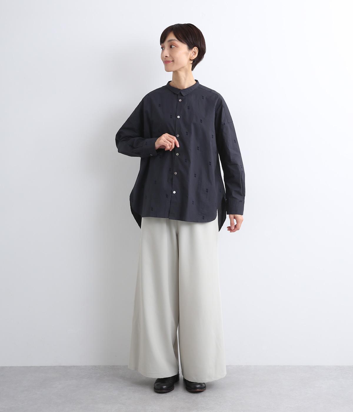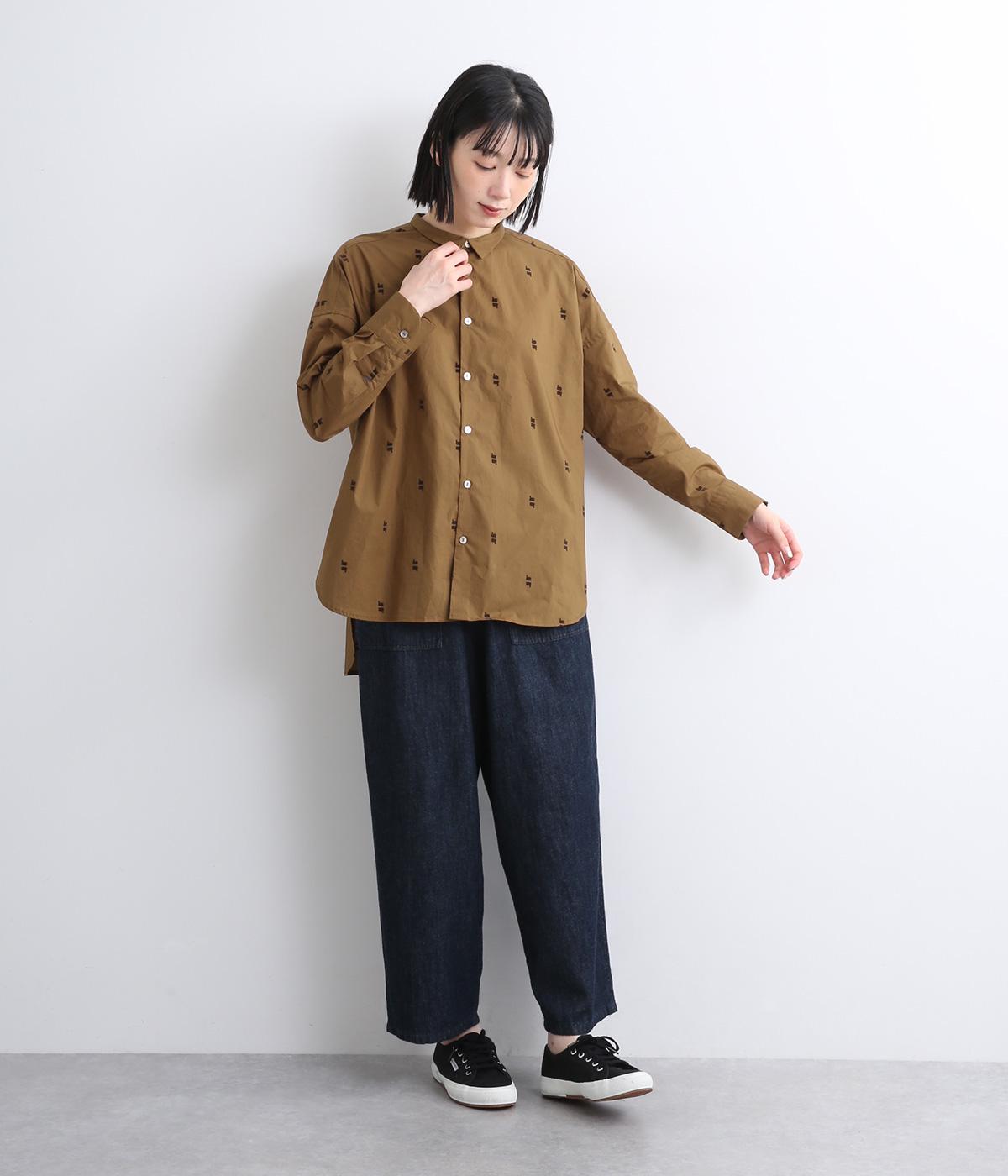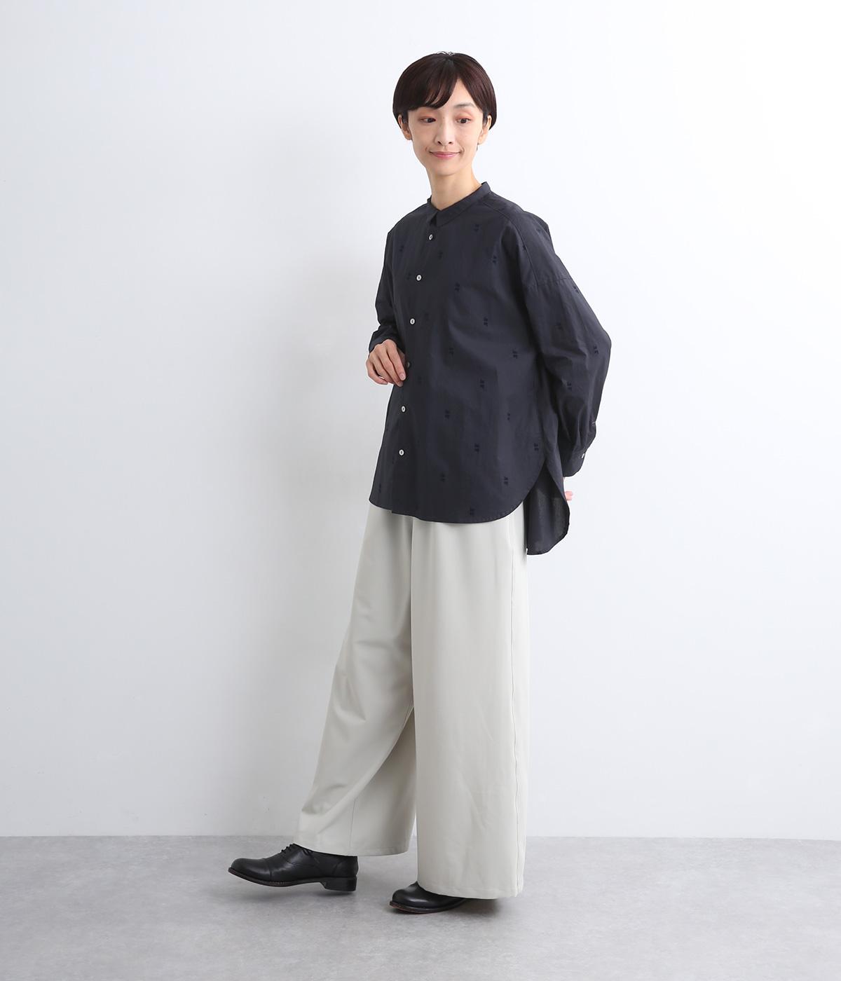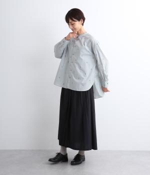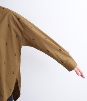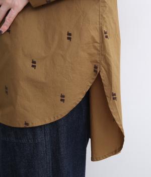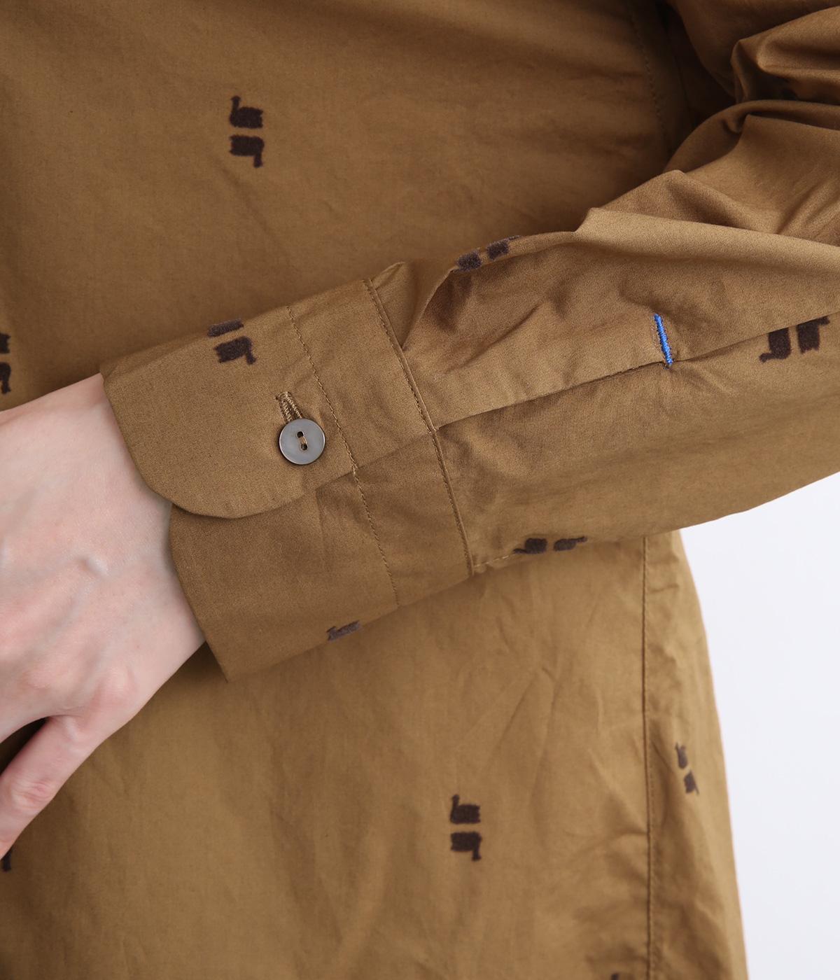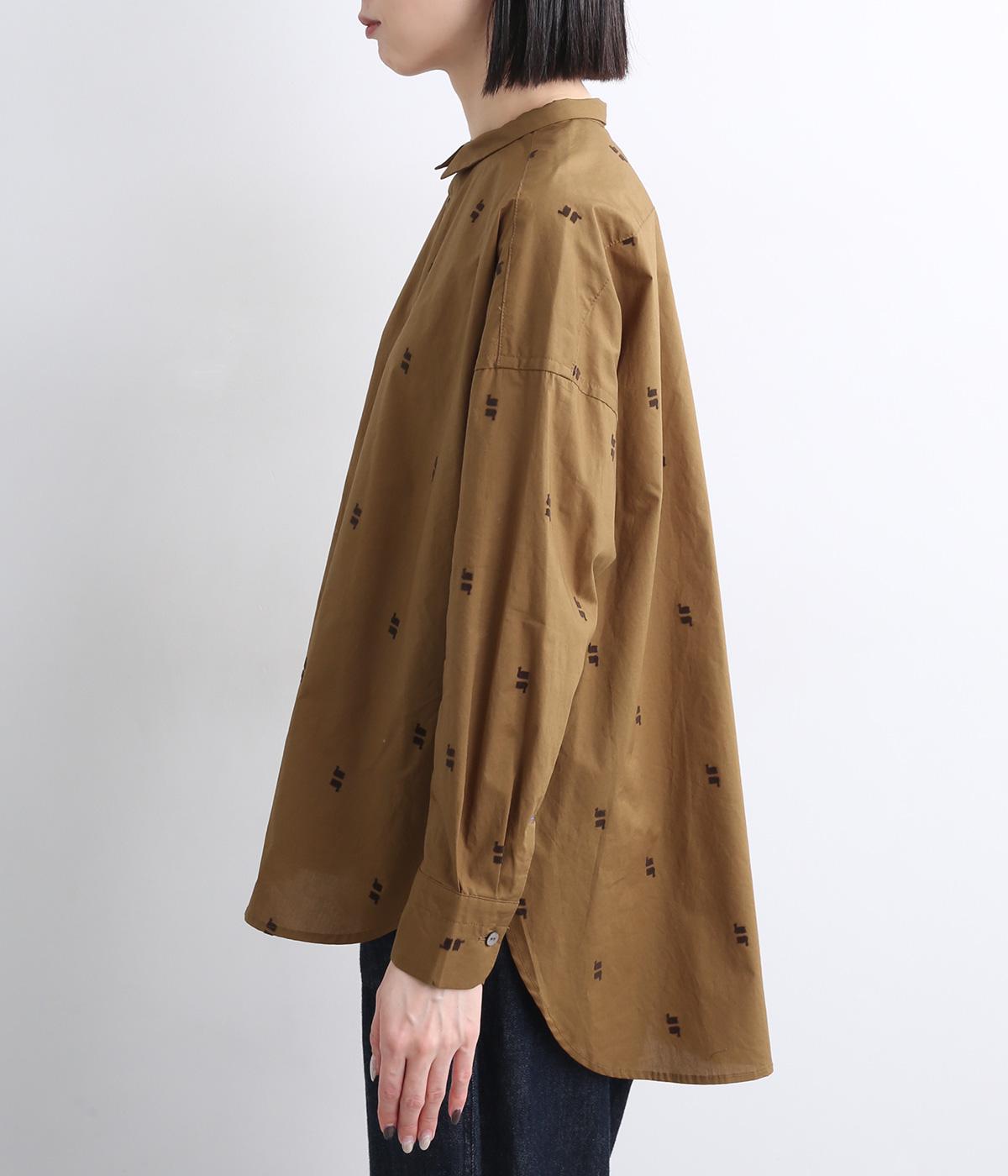 スワンが水面に映ったように上下に並んだ、ブランドのオリジナル柄を採用したシャツです。ごくごく華奢で小さめな襟の、ワイドな後ろ下がりシルエット。ラウンドカットした前後差のある裾が軽やかさをプラスします。
