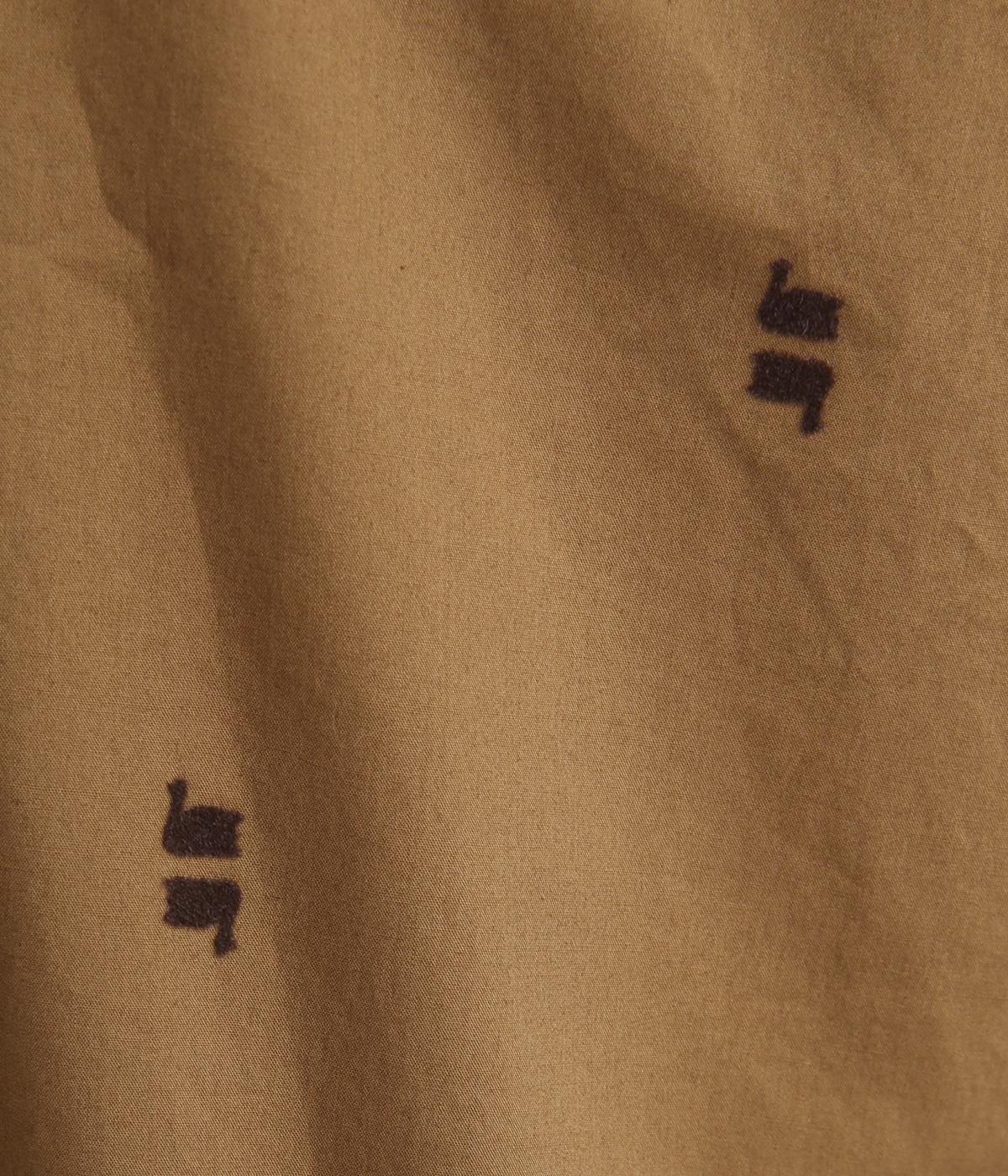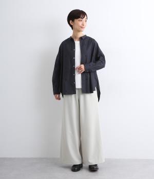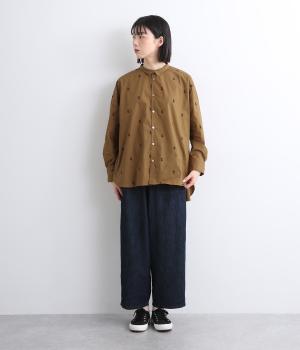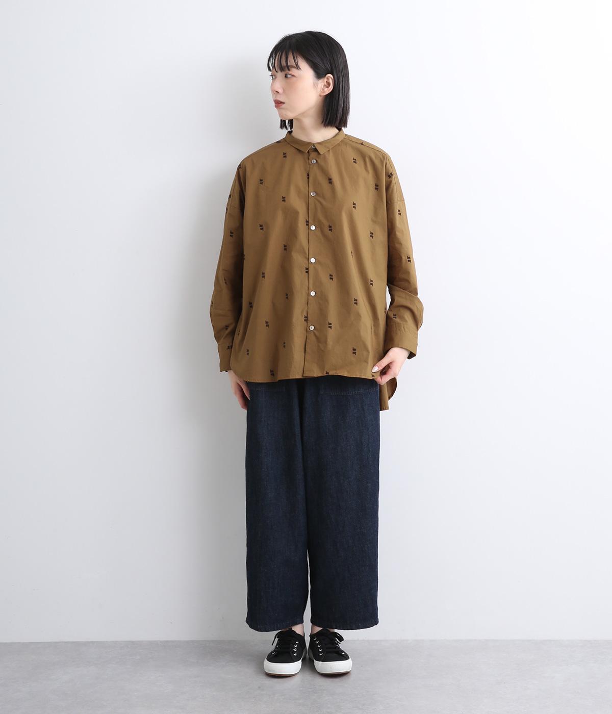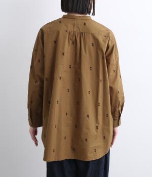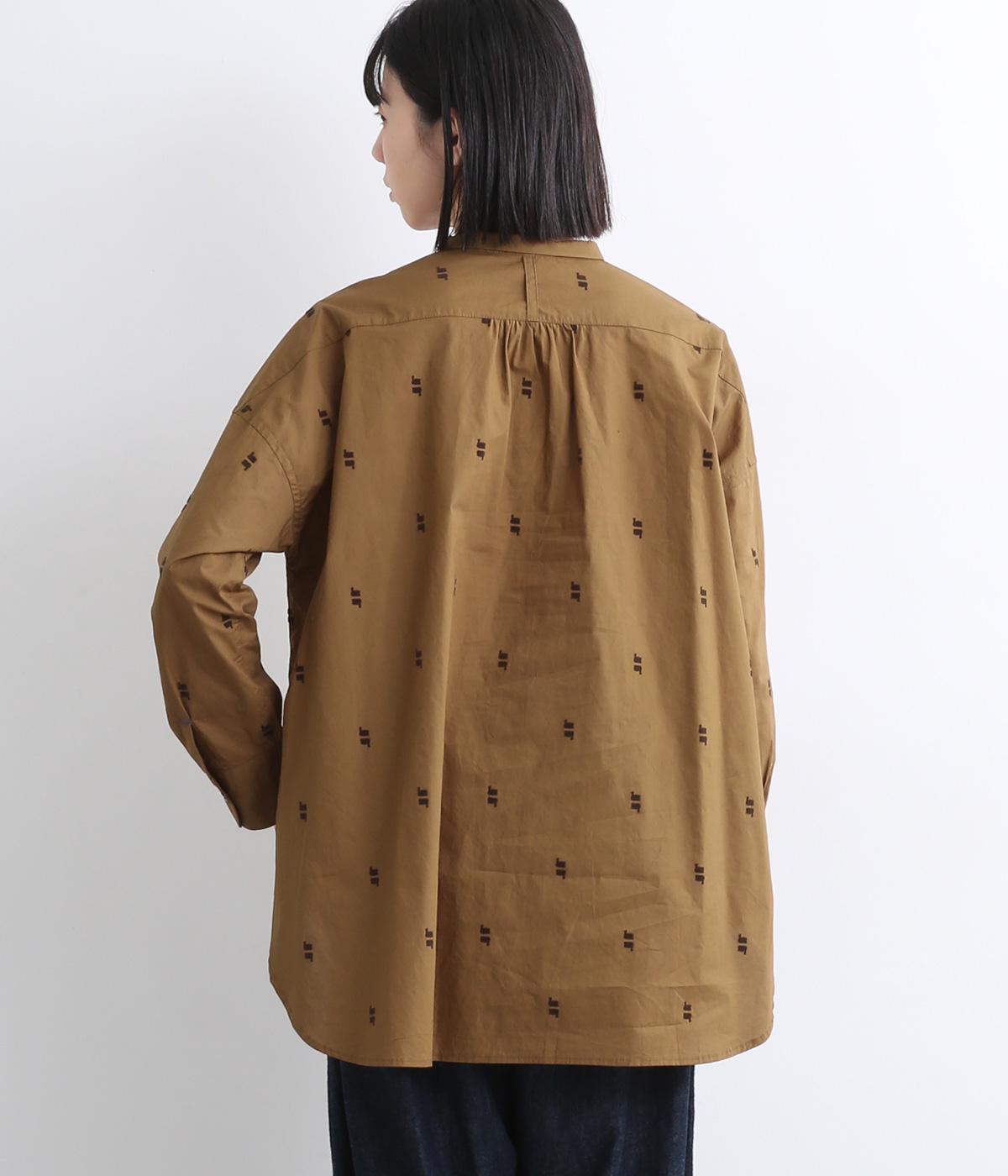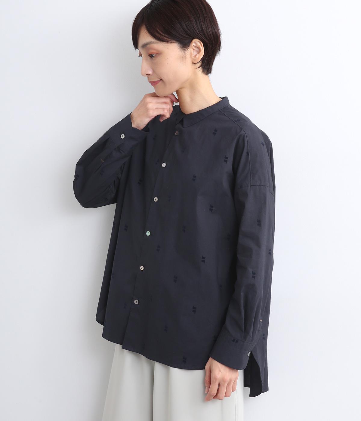 スワンが水面に映ったように上下に並んだ、ブランドのオリジナル柄を採用したシャツです。ごくごく華奢で小さめな襟の、ワイドな後ろ下がりシルエット。ラウンドカットした前後差のある裾が軽やかさをプラスします。