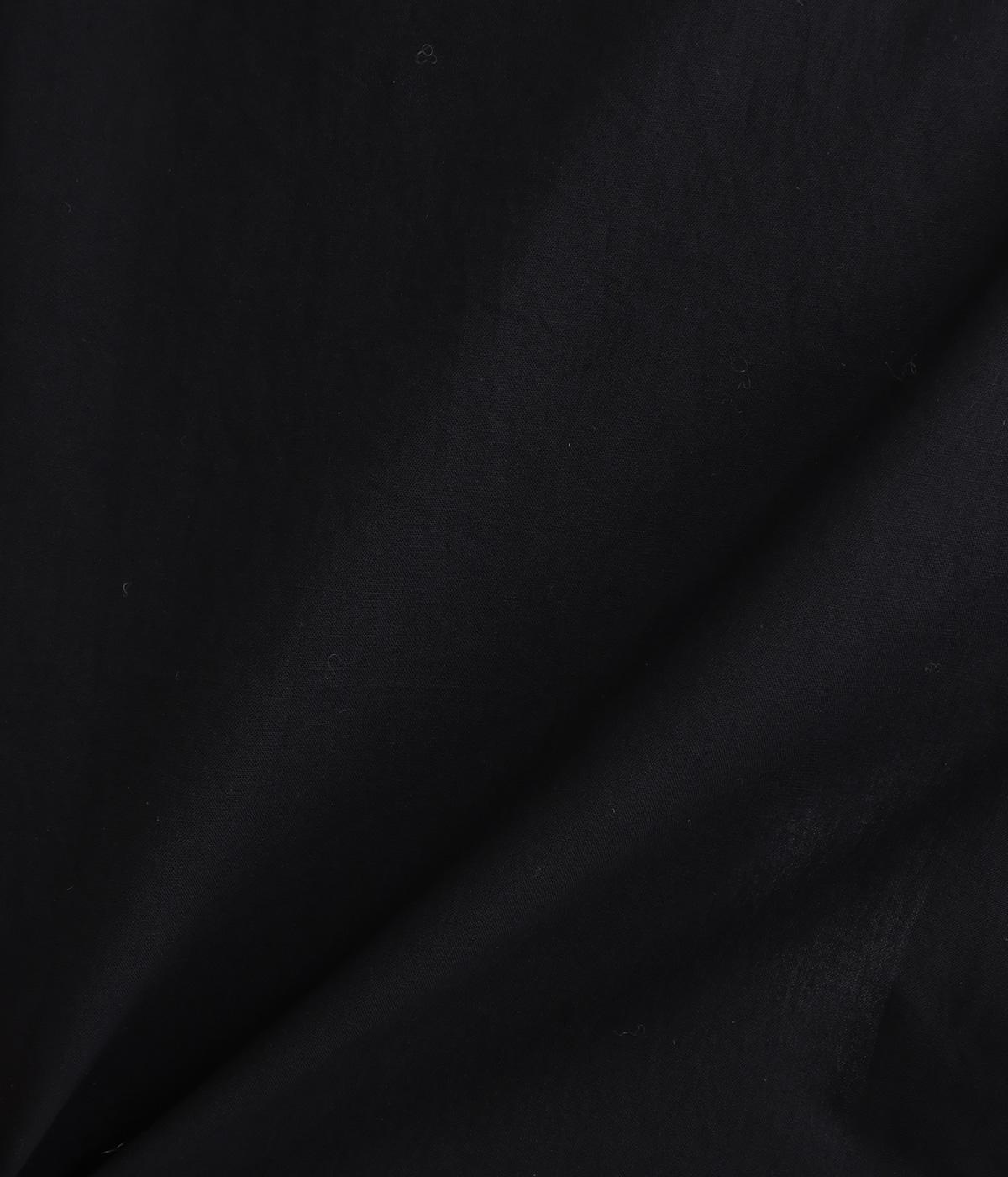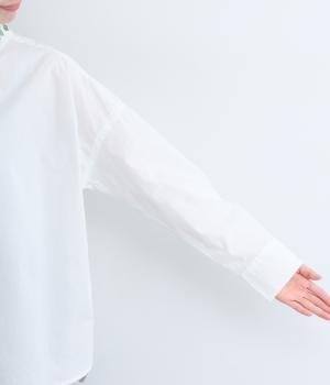 高密度なハリがきちんと感のある印象のコットンタイプライター生地。共布のくるみボタンでやわらかな雰囲気をプラスしました。さらりと肌ばなれよく、心地いいい着用感です。
