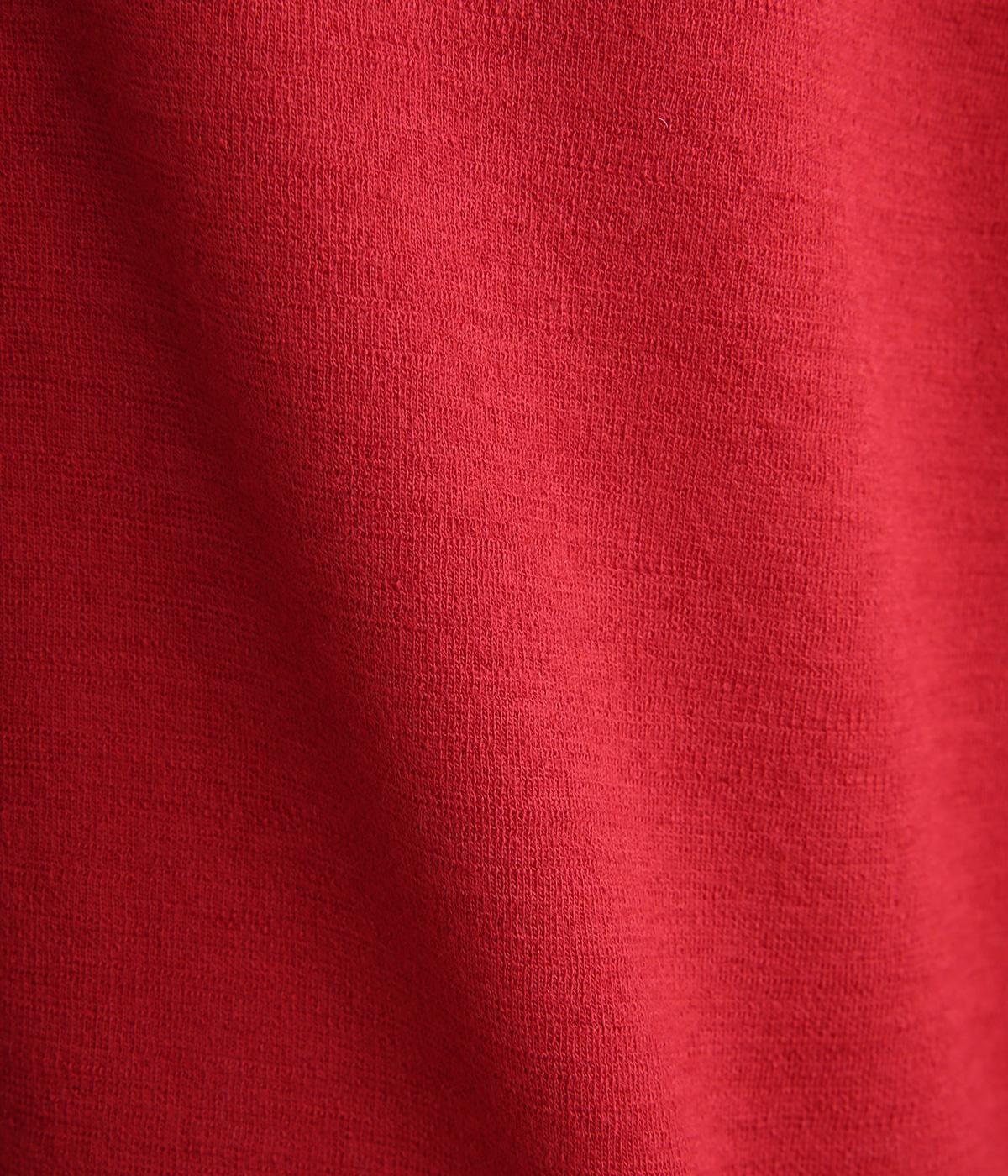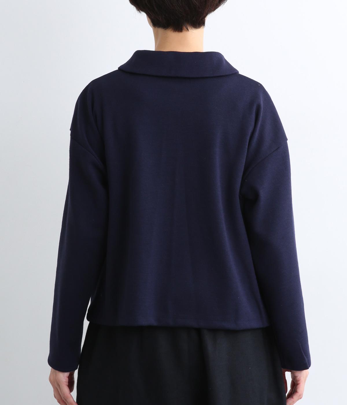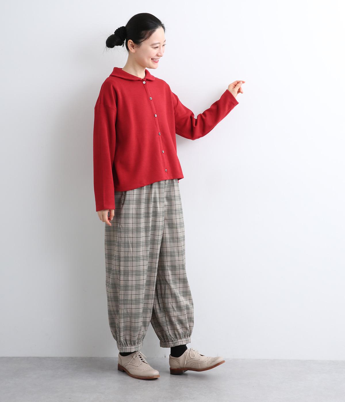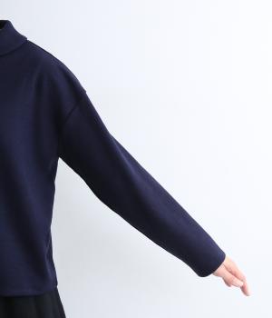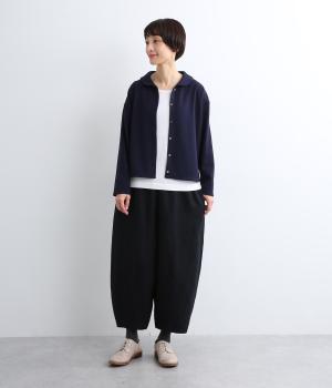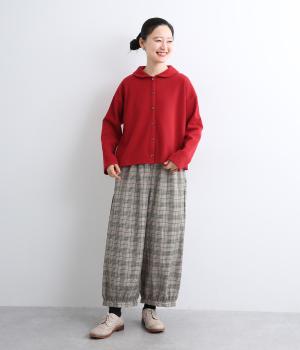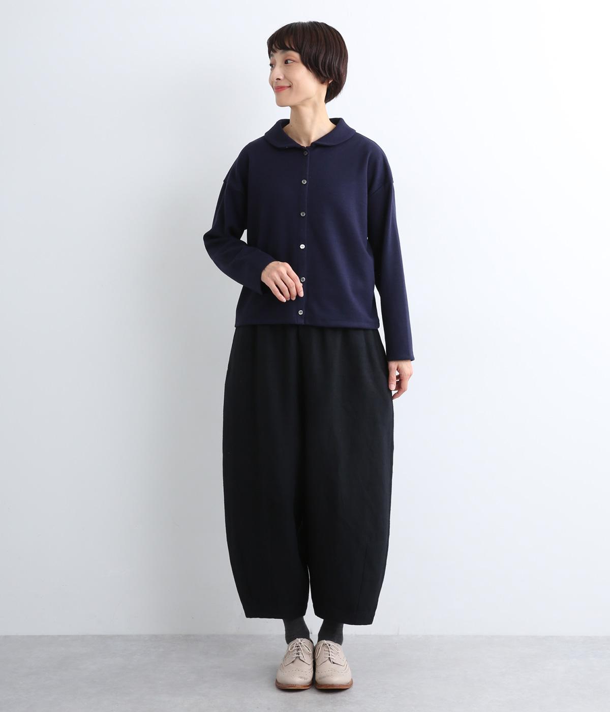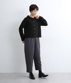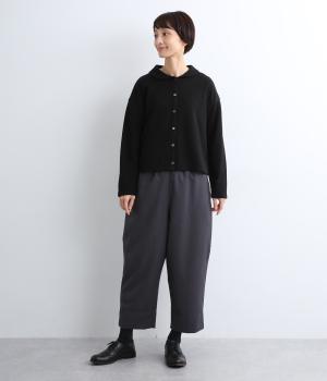 ふっくらとした弾力とやわらかな起毛感が特徴のアクリルウールポンチ生地で仕立てています。ウールのあたたかみも感じられ、寒い時期にも頼れる生地感です。