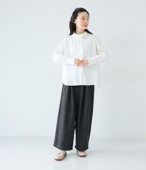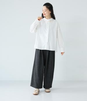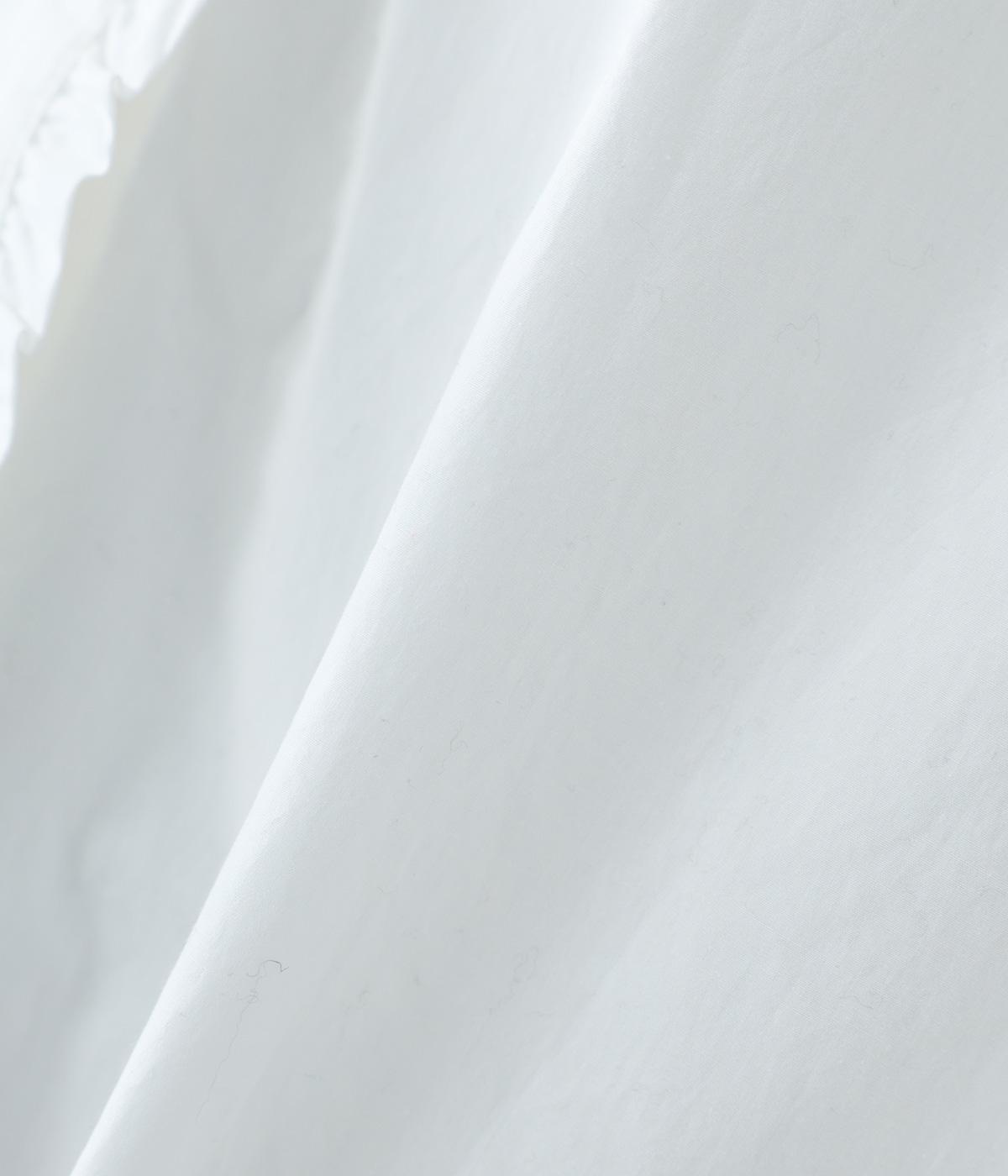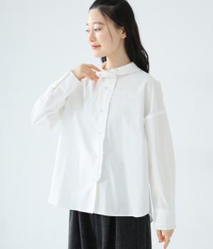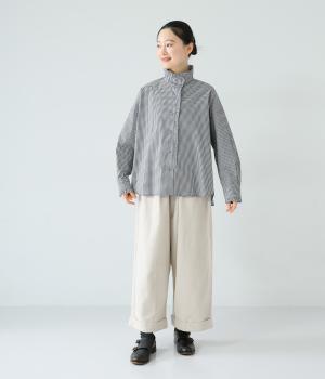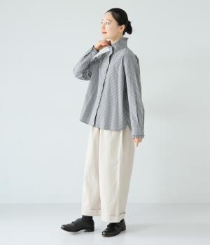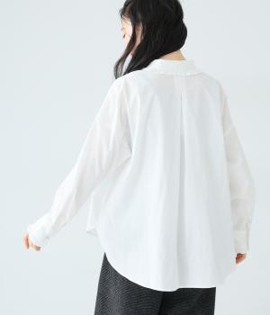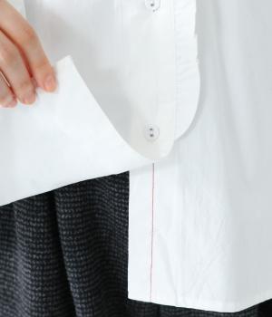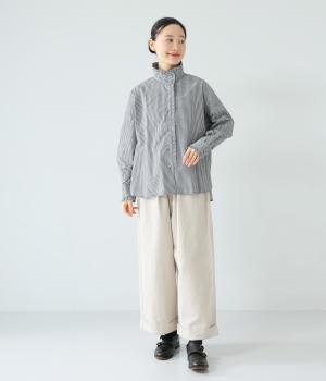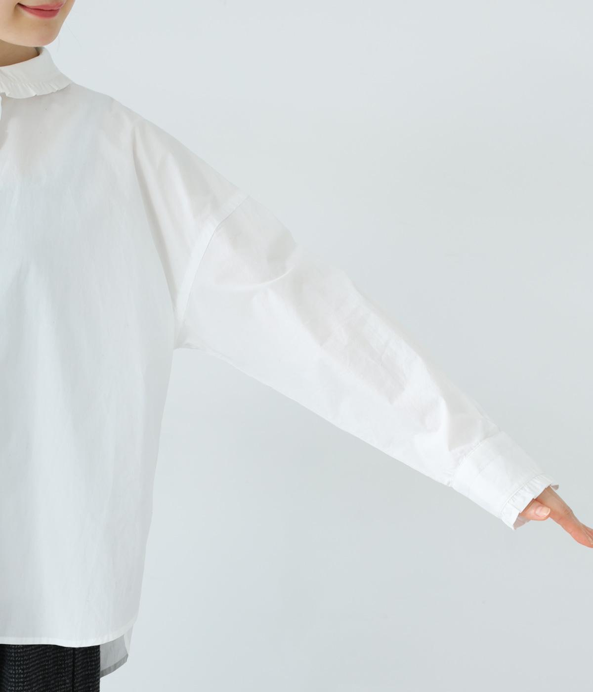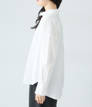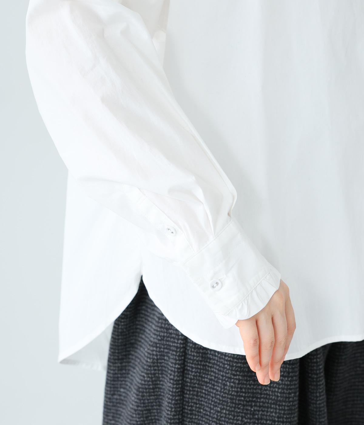 さらりとした風合いで、ハリのあるタイプライタークロスを使用。高密度に織り上げた繊細な生地の表情が、上質感のある装いを演出します。重ね着のインナーにも使えて、ロングシーズン楽しめるのもうれしいポイント。