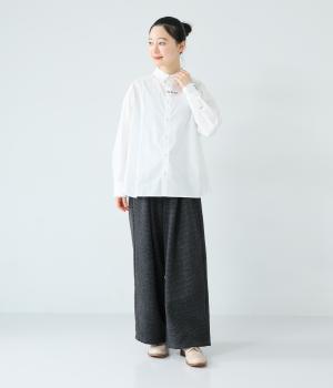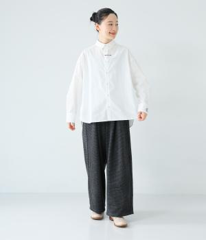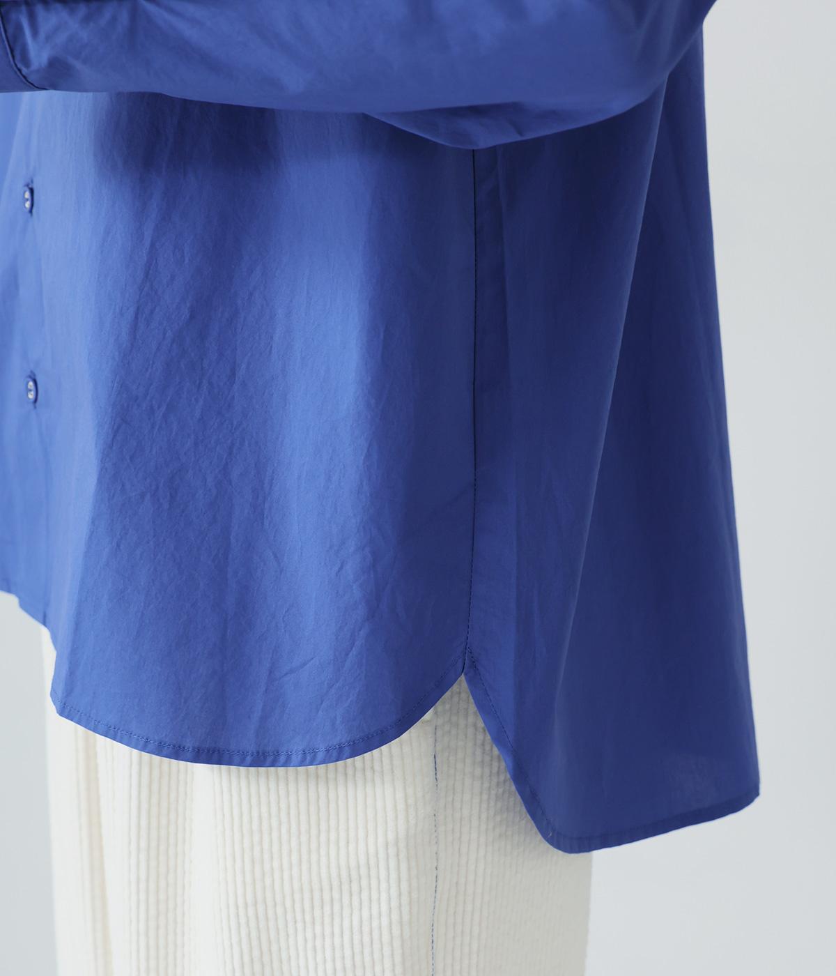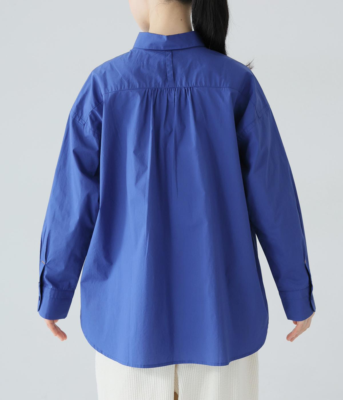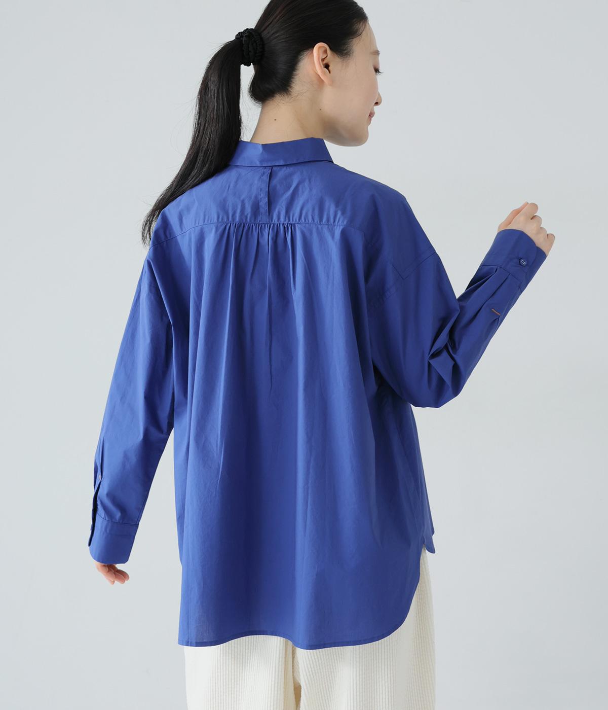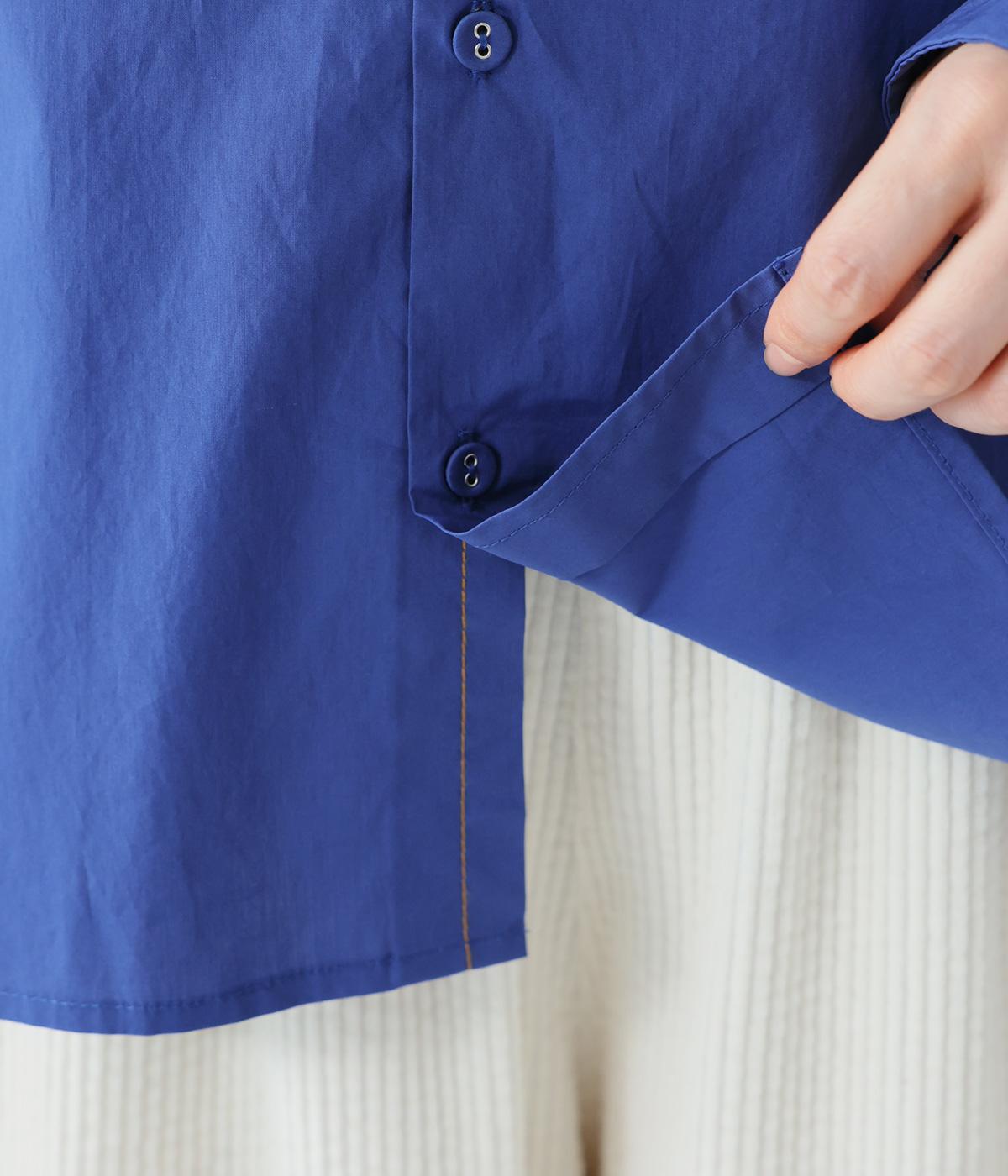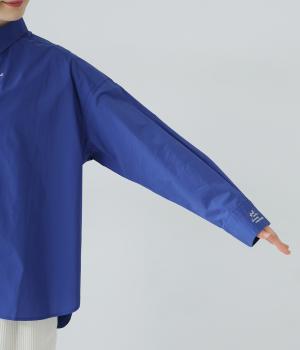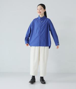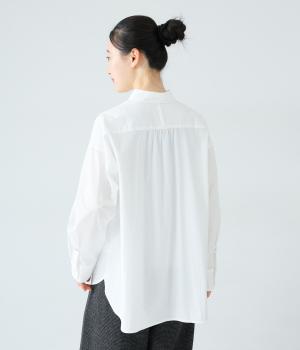 高密度に織り上げた、ハリのあるタイプライターを使用。さらりとした肌触りが心地よく、一枚でも重ね着でも活躍してくれます。体のラインを拾いにくく、きれいなシルエットが出るのもうれしいポイント。