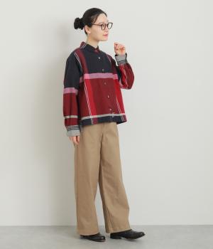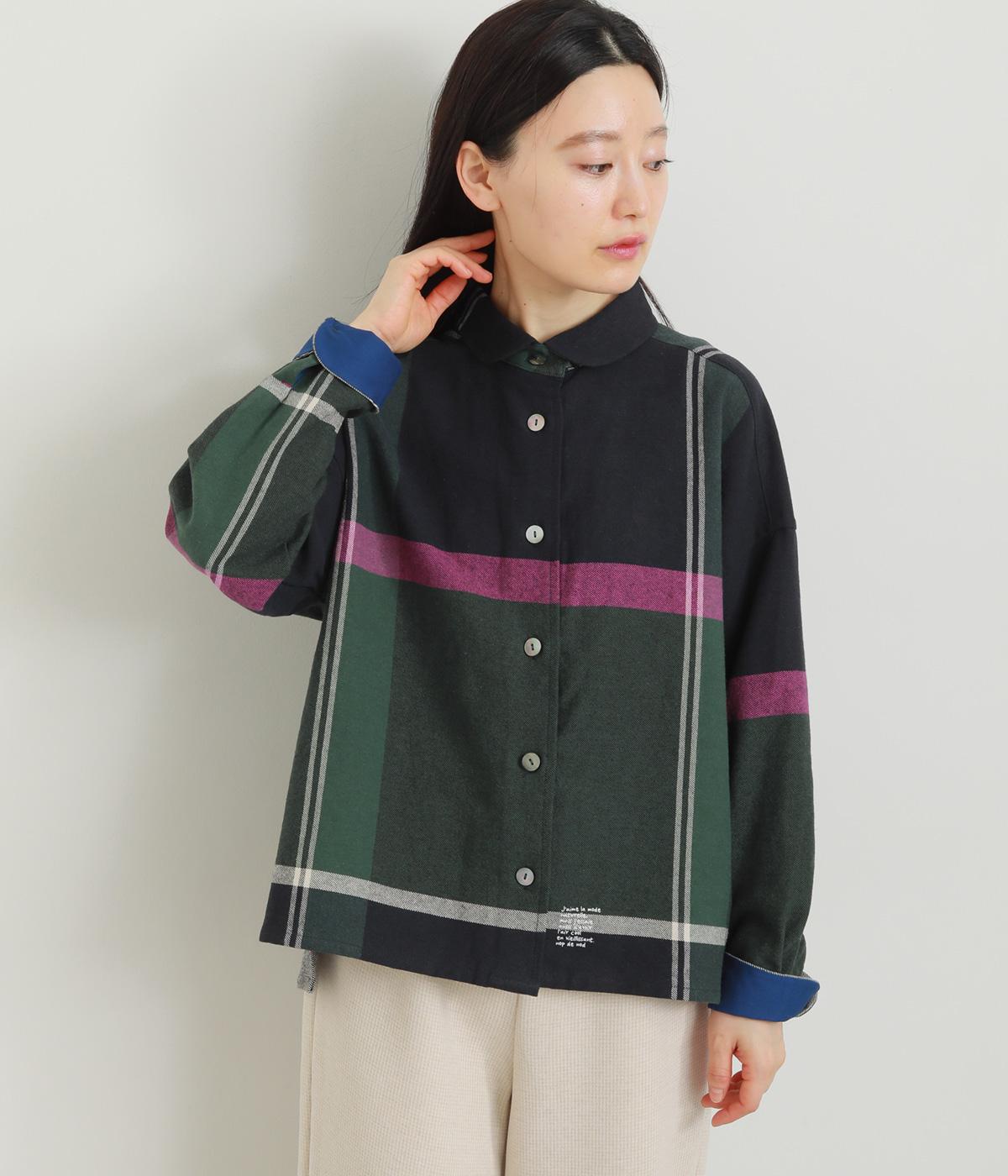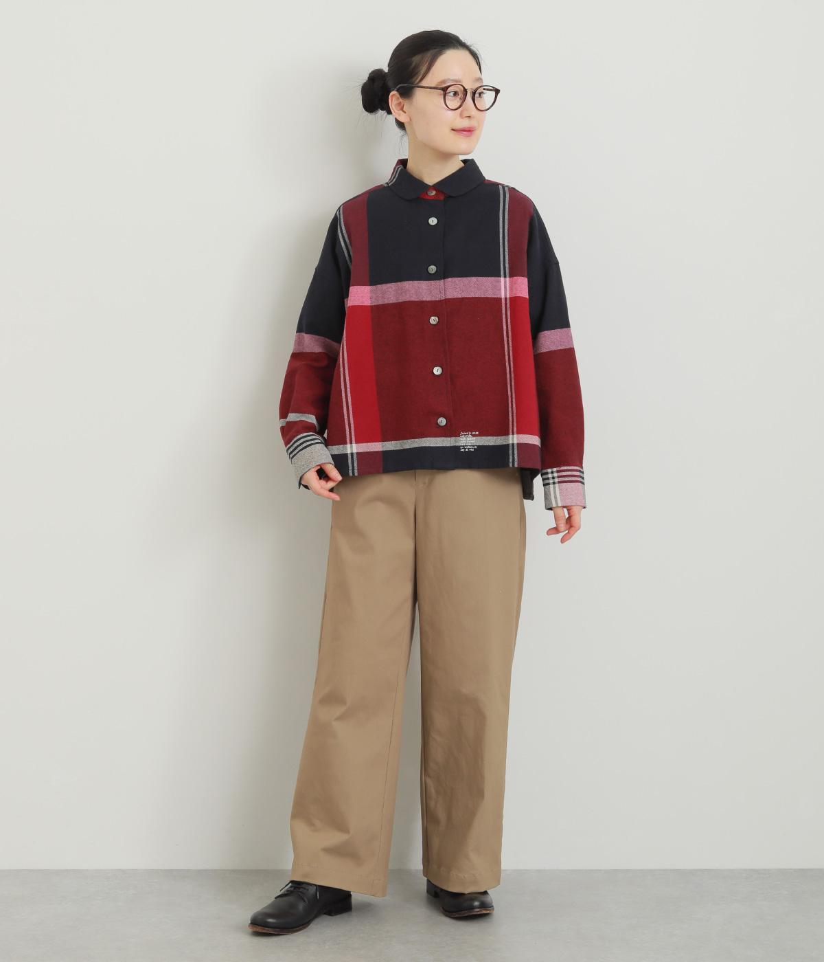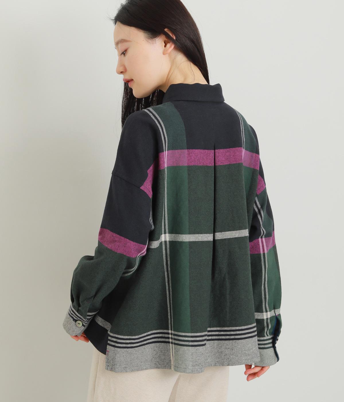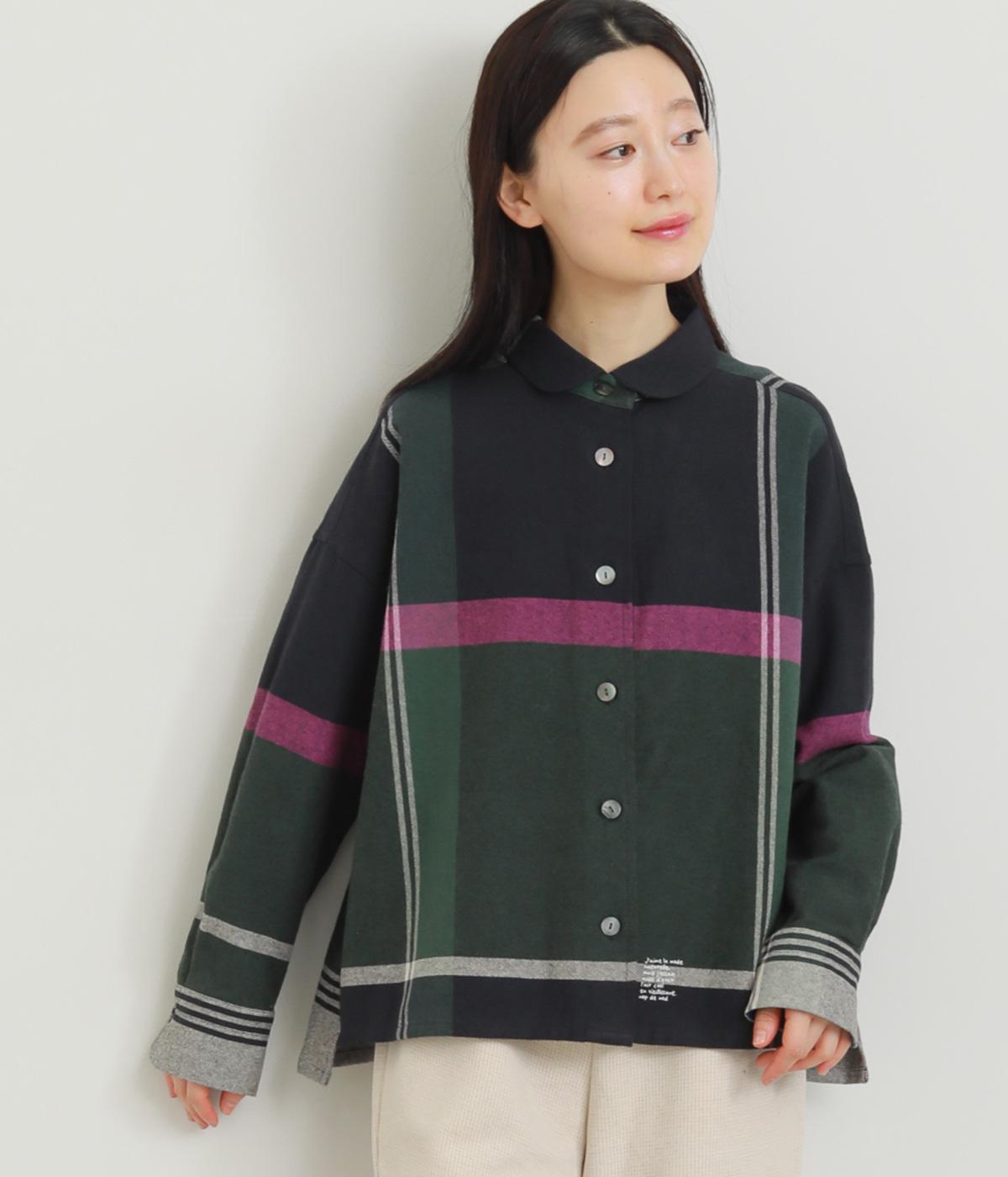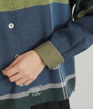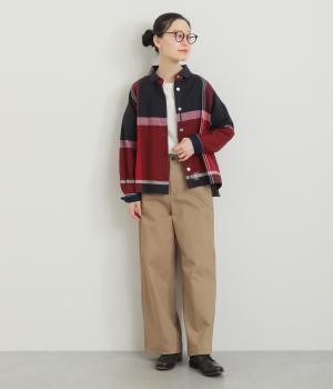 配色をきかせたパネルチェック柄が、暗くなりがちな季節のスタイリングに鮮やかさを投入。メンズライクなボックス型にスタンダードな襟つきでカジュアル気分を盛り上げます。前後差をつけた裾や前立て付近のメッセージプリントが◎。