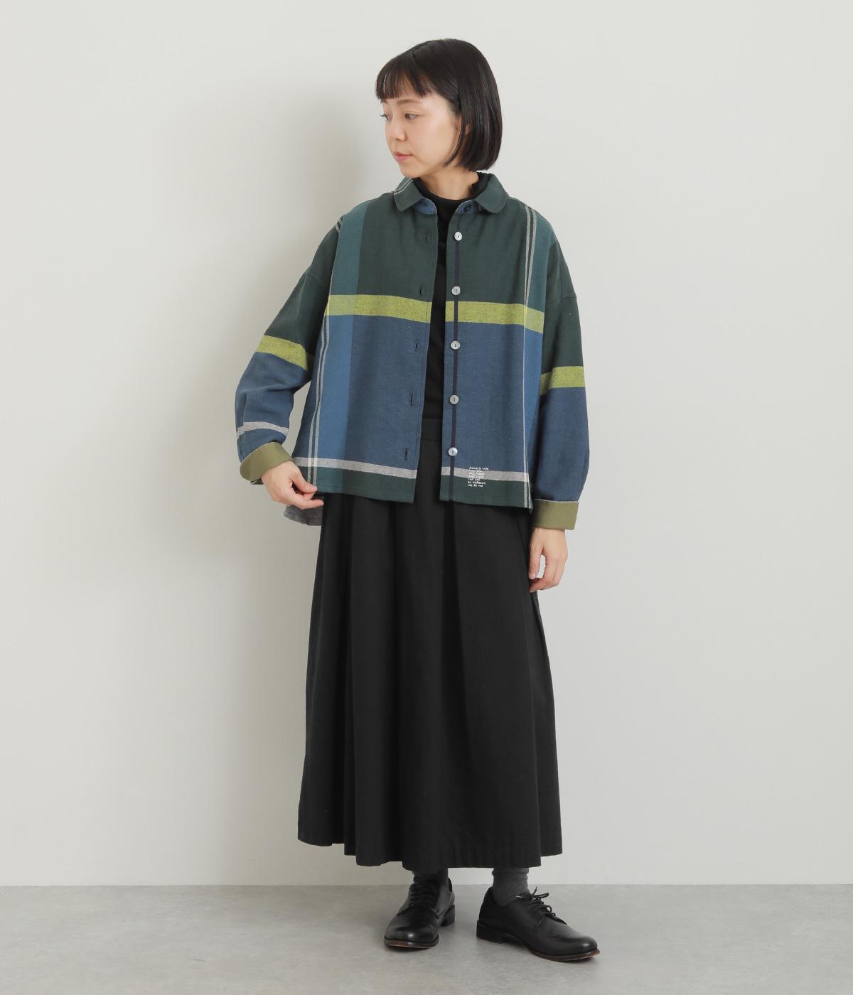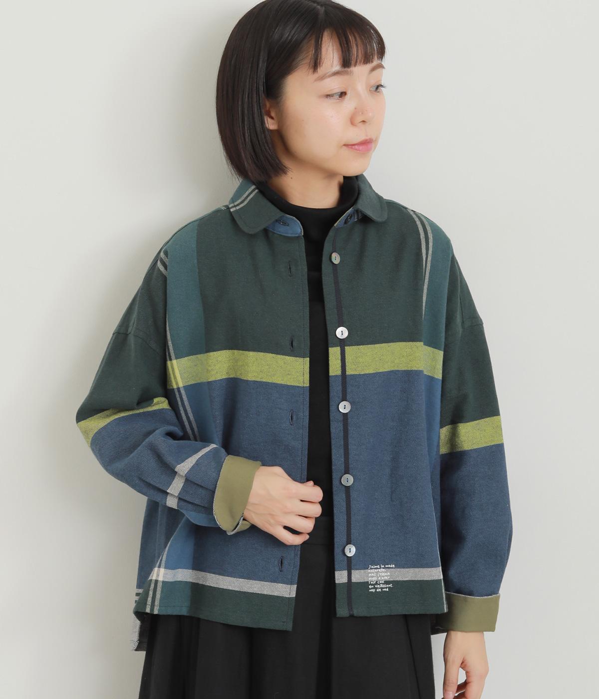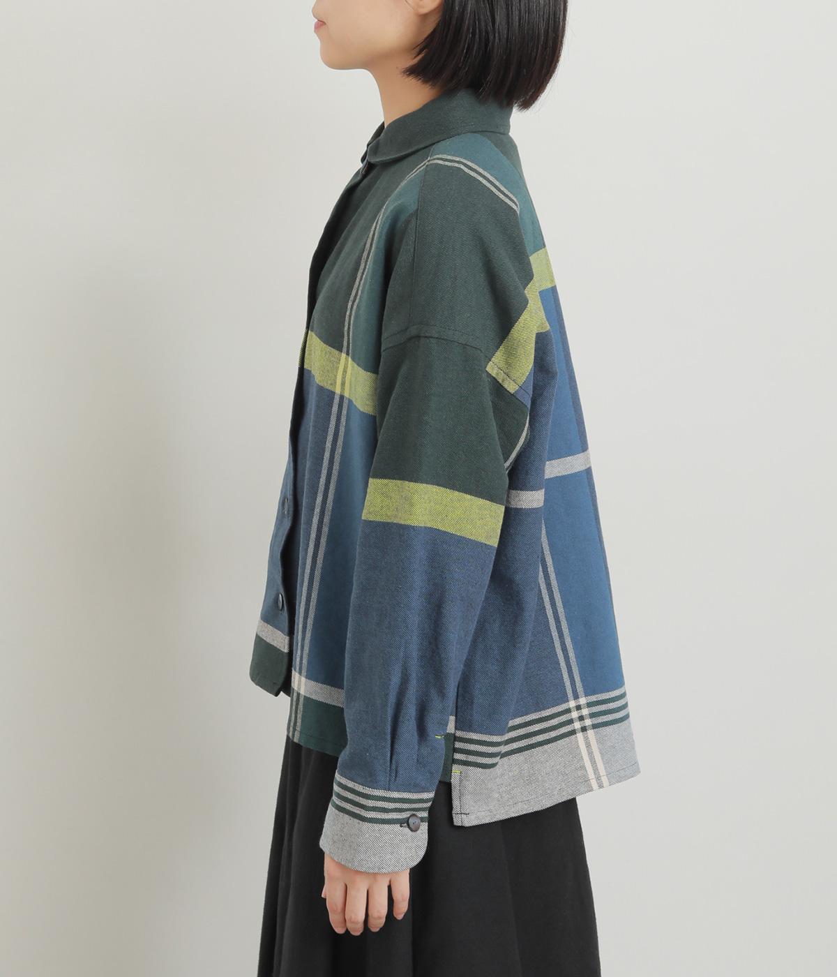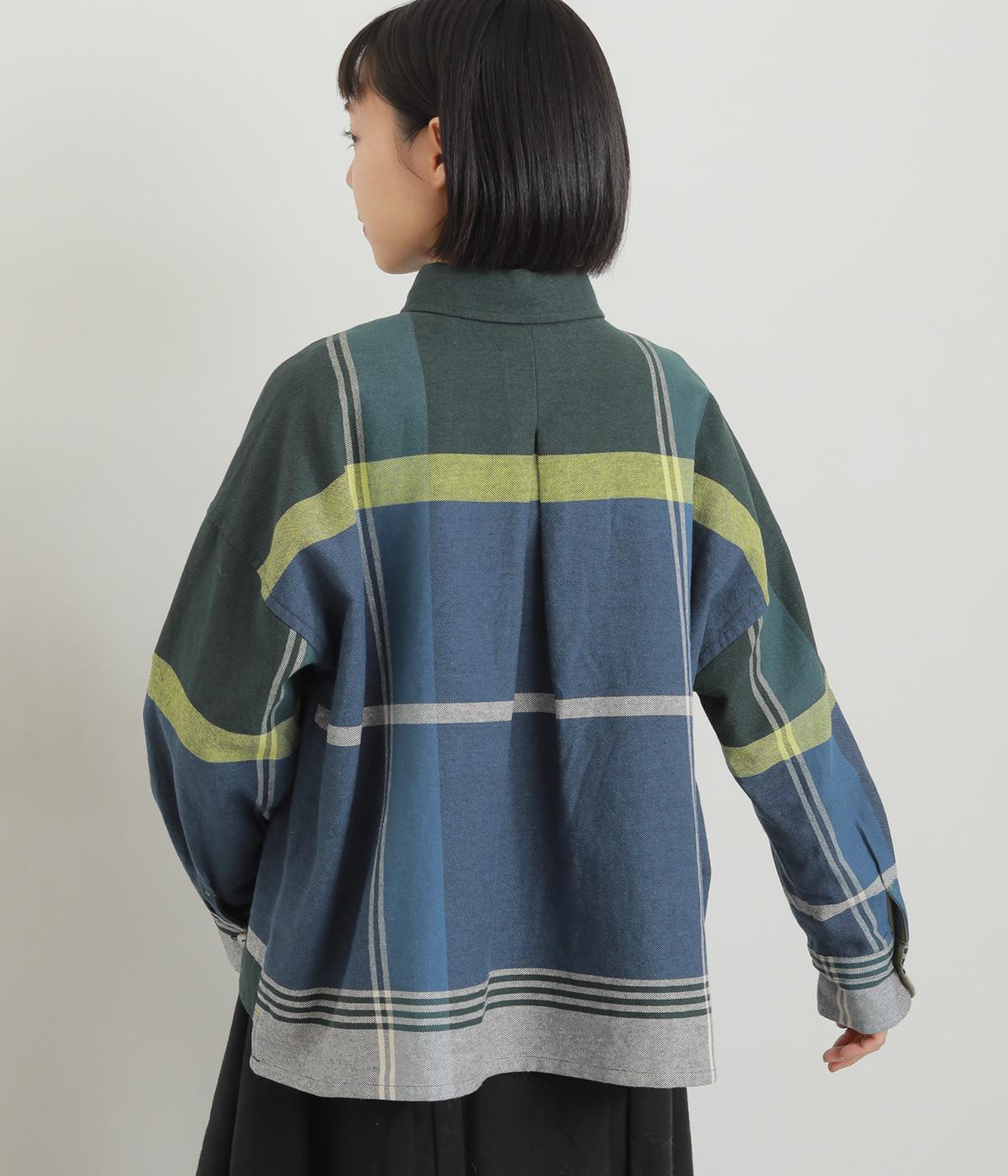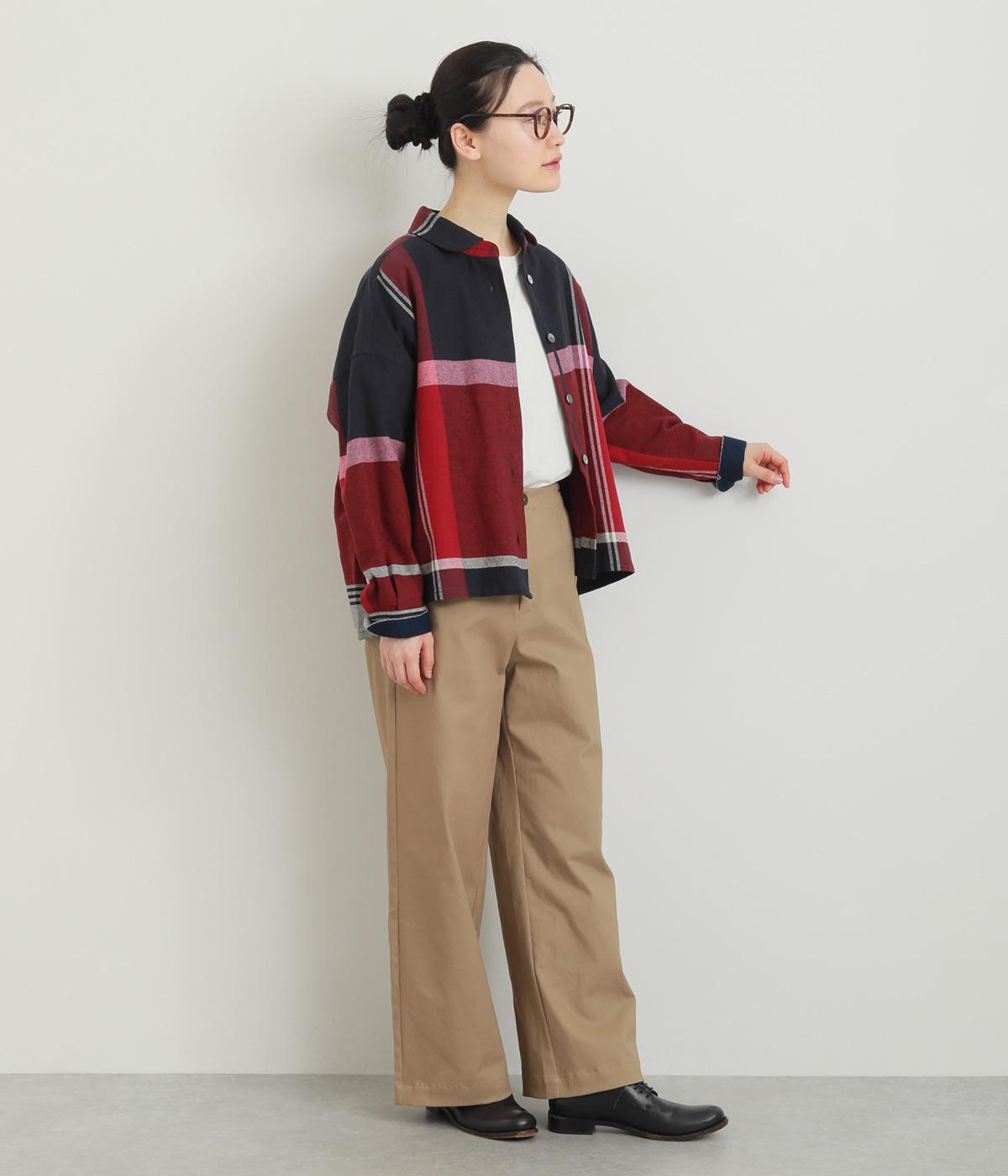 配色をきかせたパネルチェック柄が、暗くなりがちな季節のスタイリングに鮮やかさを投入。メンズライクなボックス型にスタンダードな襟つきでカジュアル気分を盛り上げます。前後差をつけた裾や前立て付近のメッセージプリントが◎。