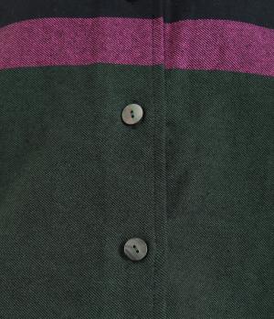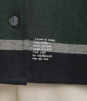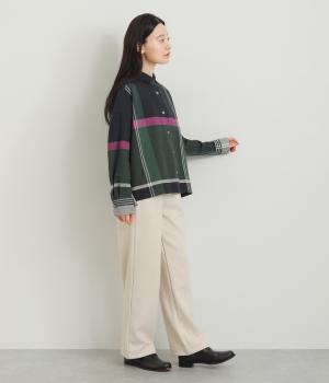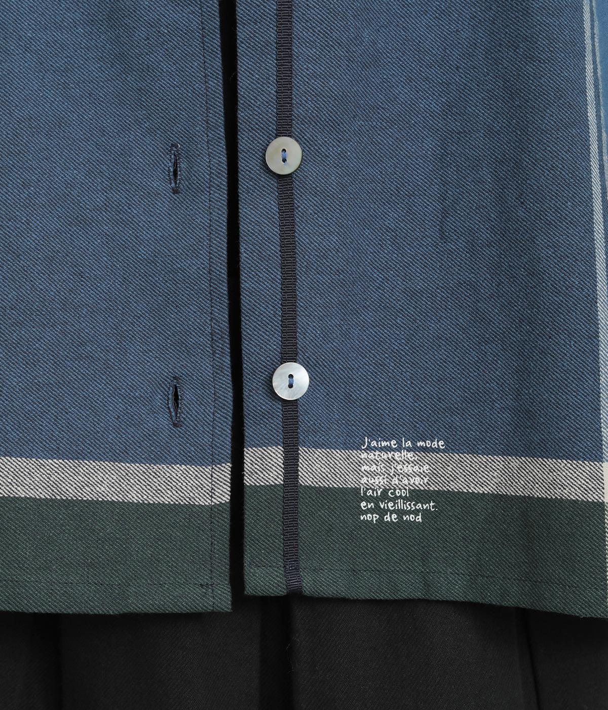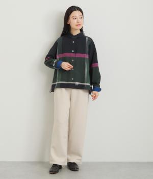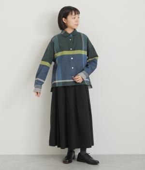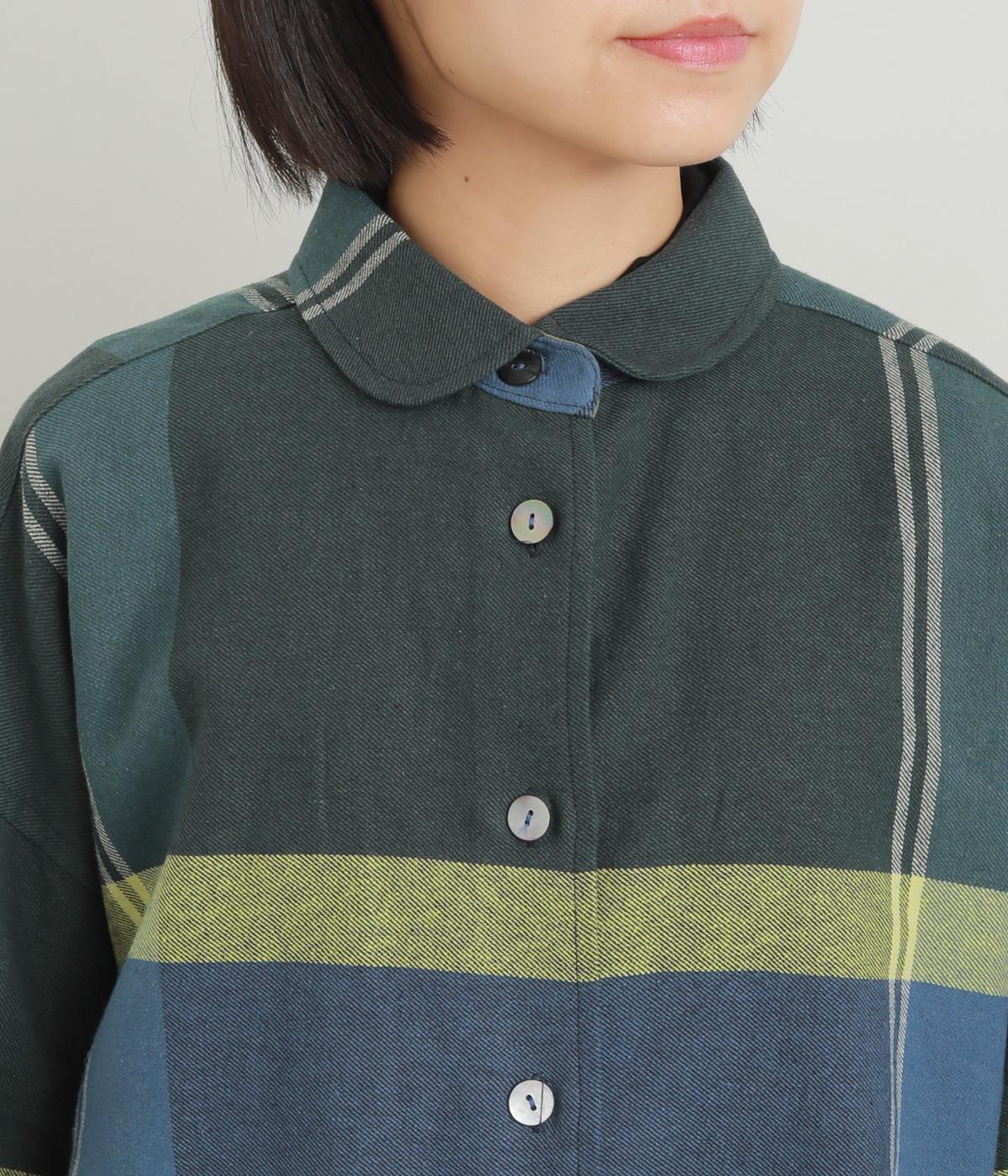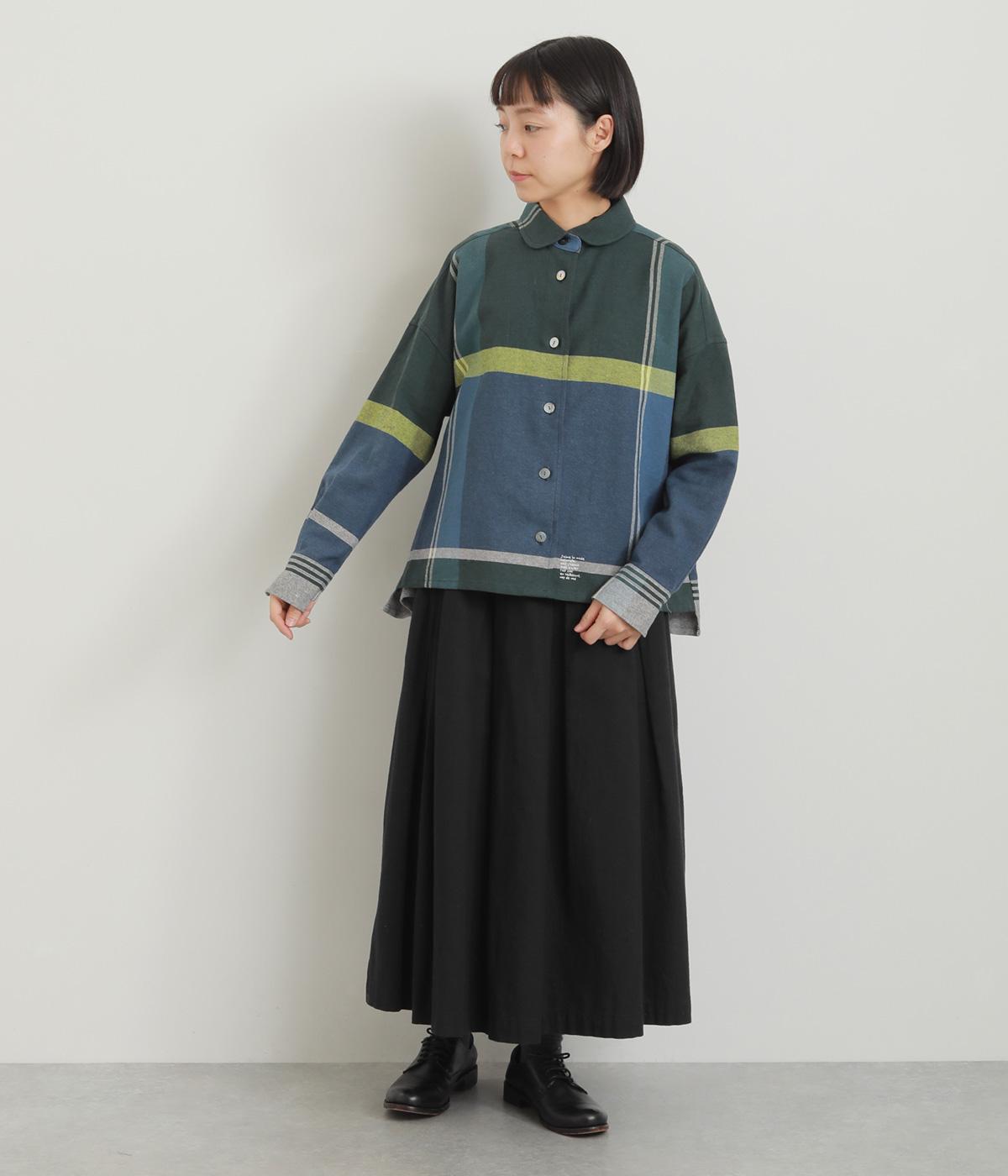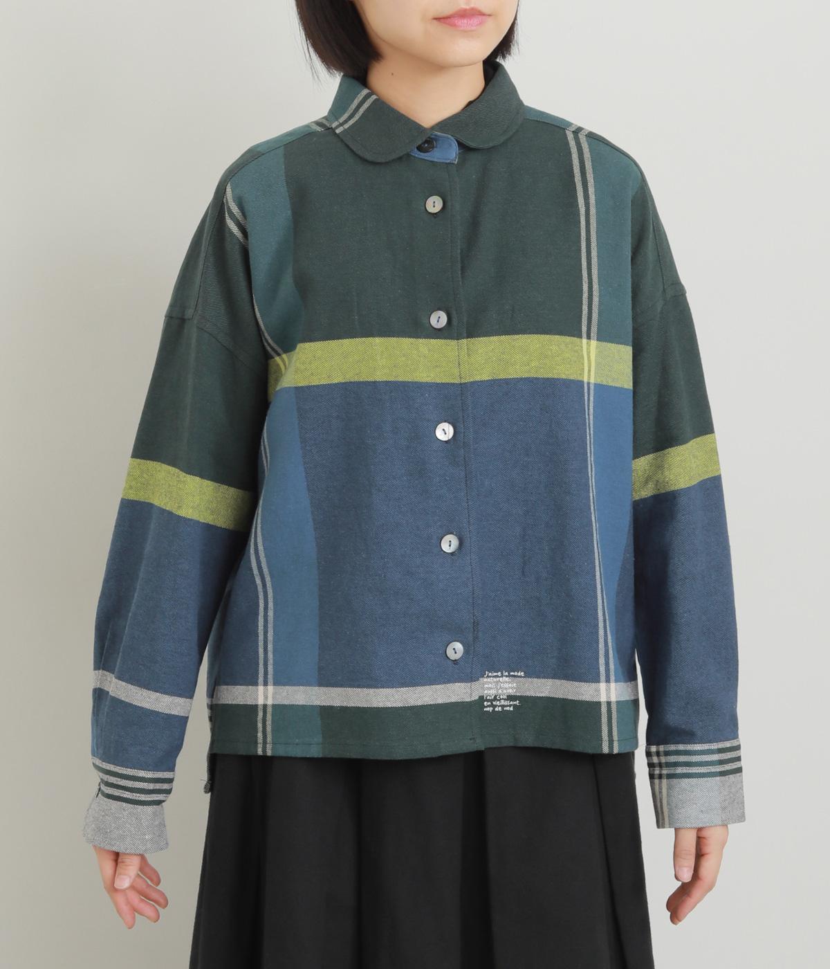 配色をきかせたパネルチェック柄が、暗くなりがちな季節のスタイリングに鮮やかさを投入。メンズライクなボックス型にスタンダードな襟つきでカジュアル気分を盛り上げます。前後差をつけた裾や前立て付近のメッセージプリントが◎。