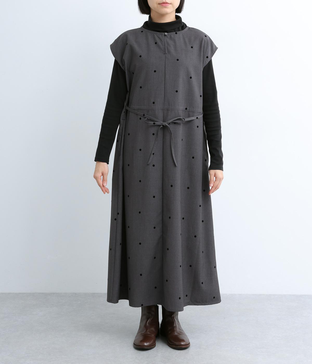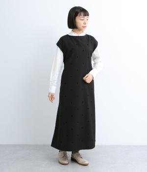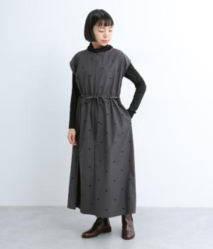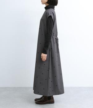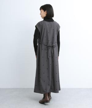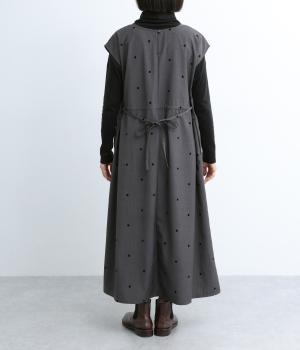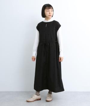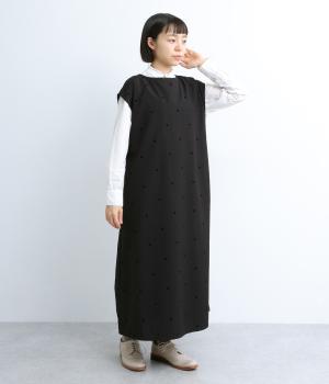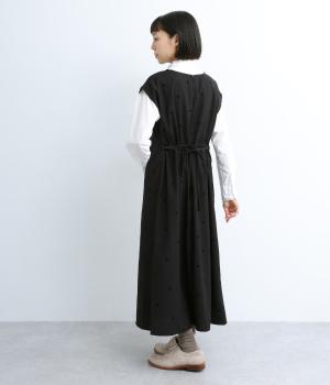 クラシカルな雰囲気のノースリーブワンピースです。肩にかかる袖丈で、一枚で着ても、薄手インナーでジャンパースカートとしてもOK。前後どちらでも着用可能な2wayで、表情の変化も楽しめます。