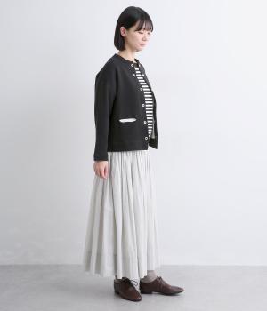 ふっくらとほどよいハリがありながらも軽やかなコットンニット生地です。伸縮性があり、やわらかい肌なじみで心地いい着用感を叶えます。