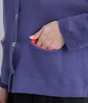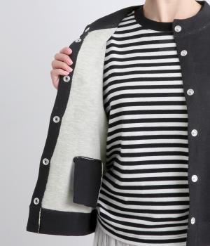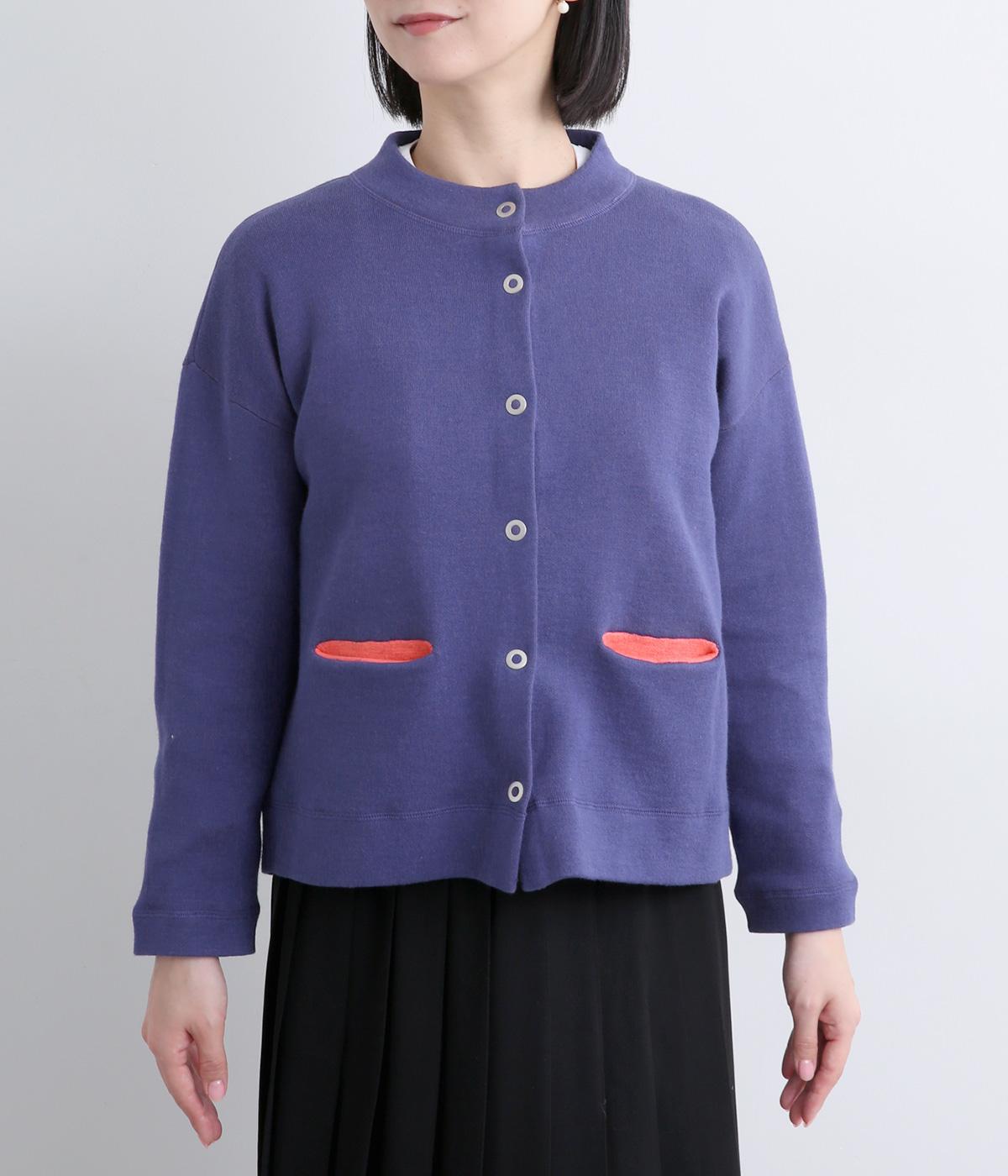 裏毛スウェットのようなデザインを、上品で肌ざわりのいいニットで仕立てたカーディガンです。背中のロゴやポケットの内側を配色であしらい、ひとさじの個性をプラス。大人のカジュアルスタイルに寄り添う一枚です。
