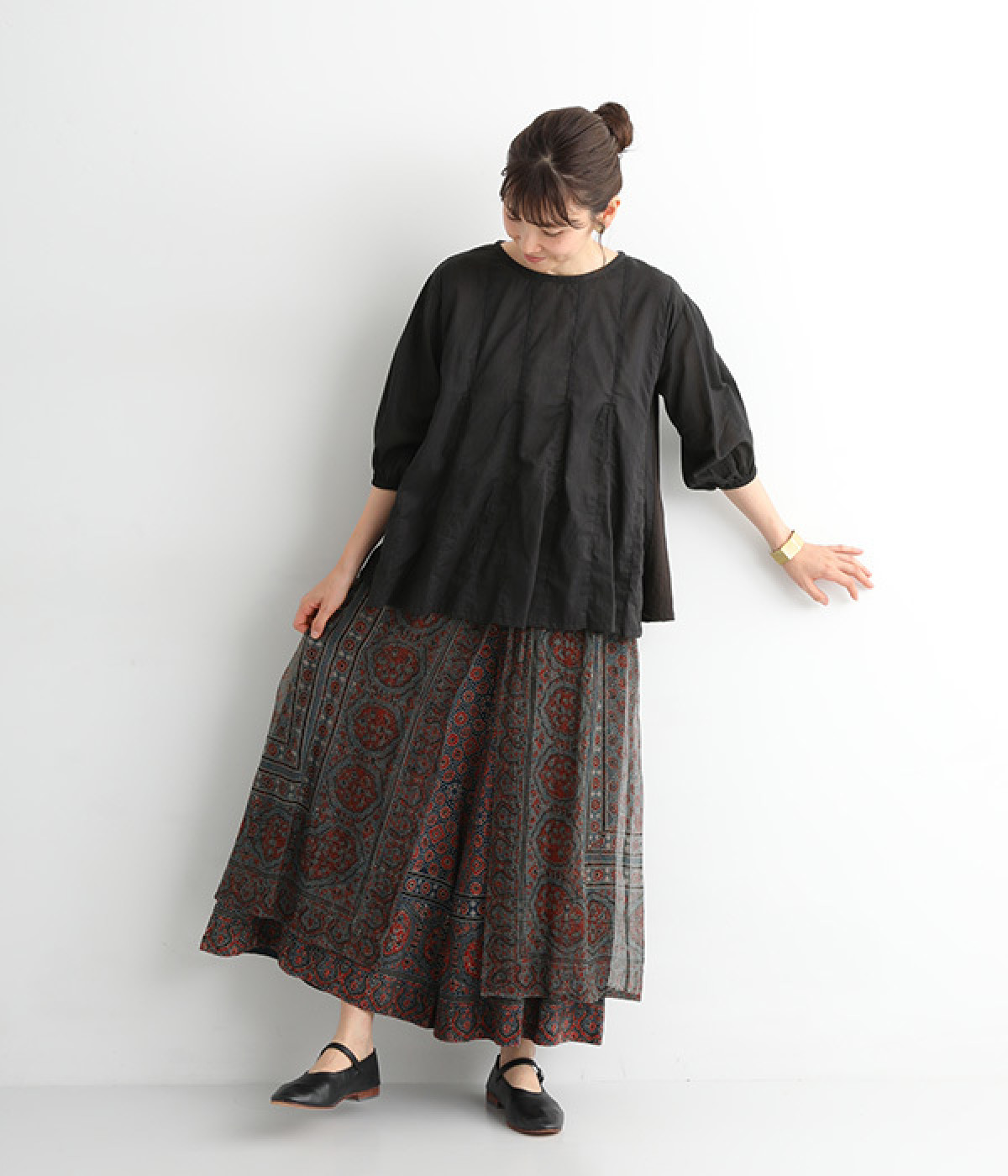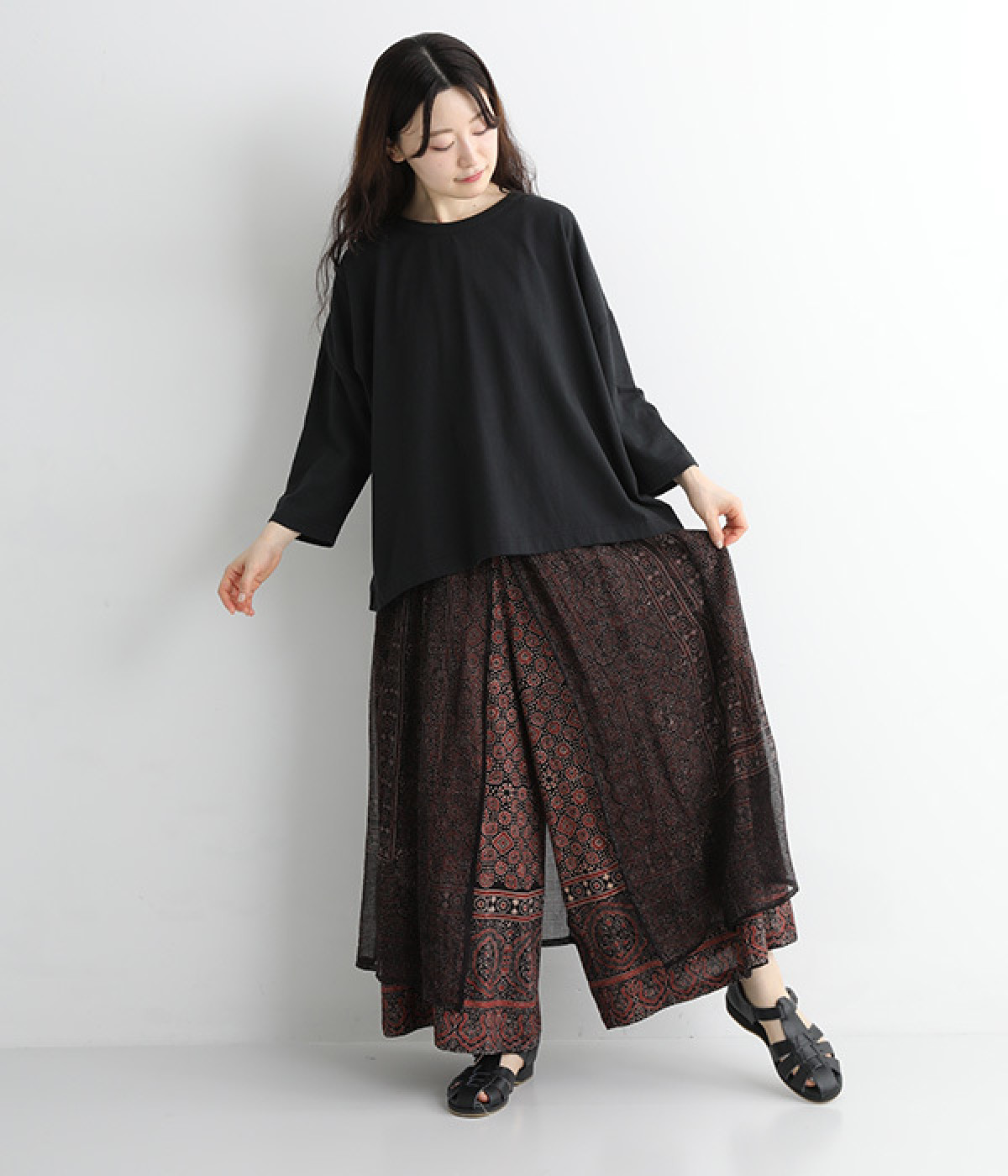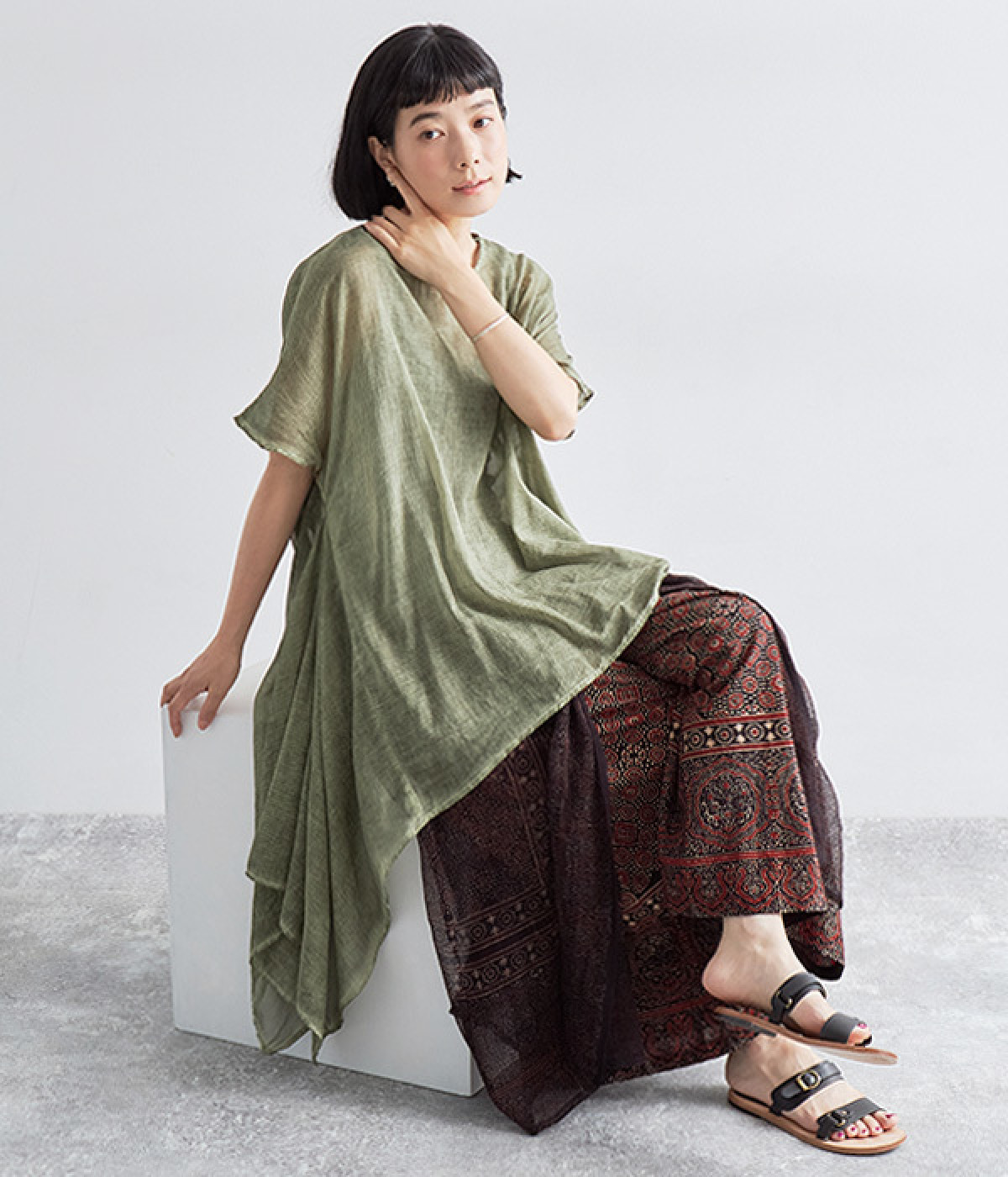 オリエンタルな雰囲気たっぷりの異素材レイヤードアイテム