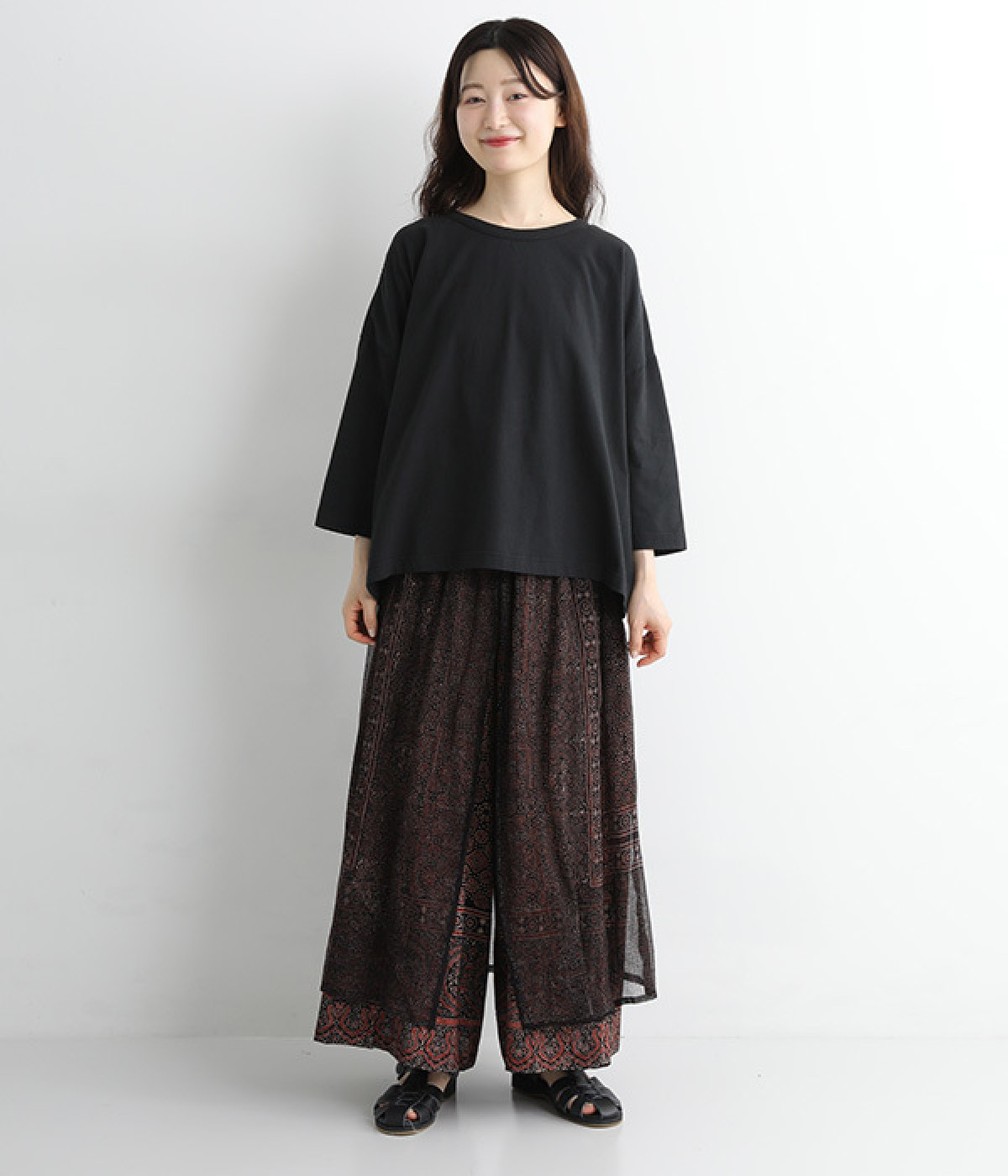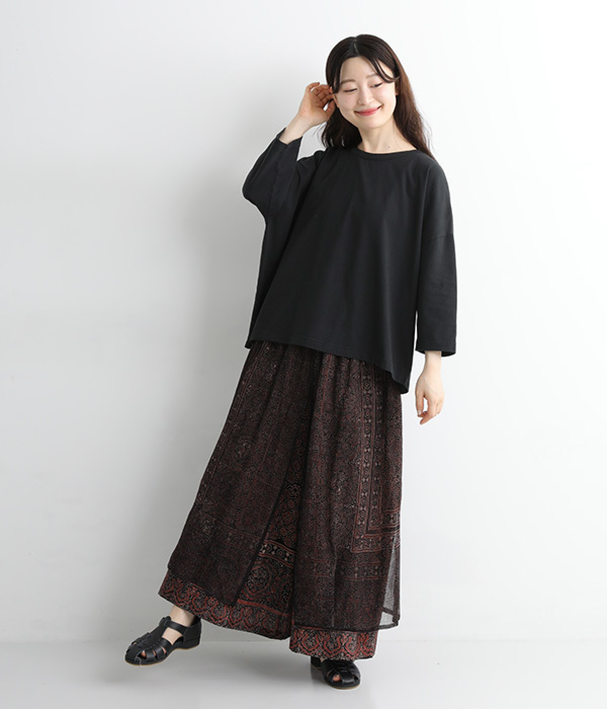 肉感を拾いにくく、リラックスして着用できるゆるシルエット