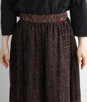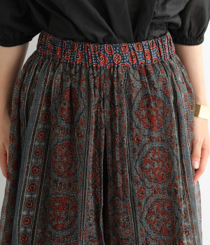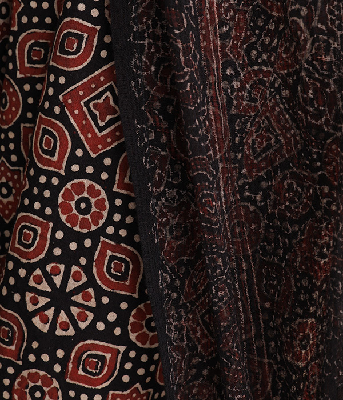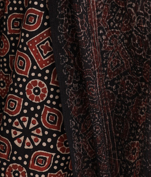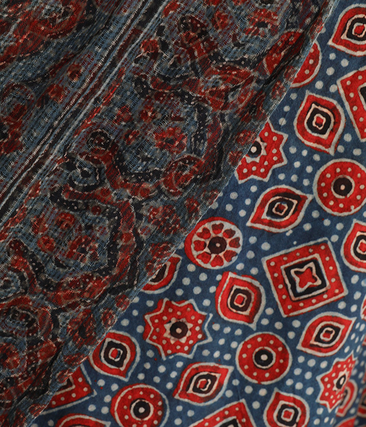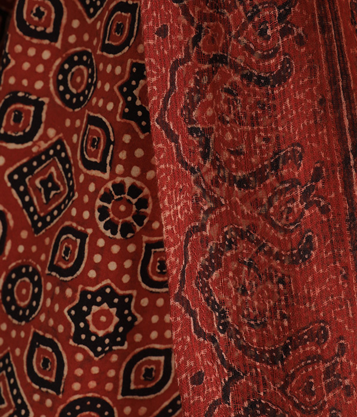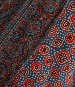 草花や波・星などがモチーフの、複雑な幾何学文様のアジャラクプリント