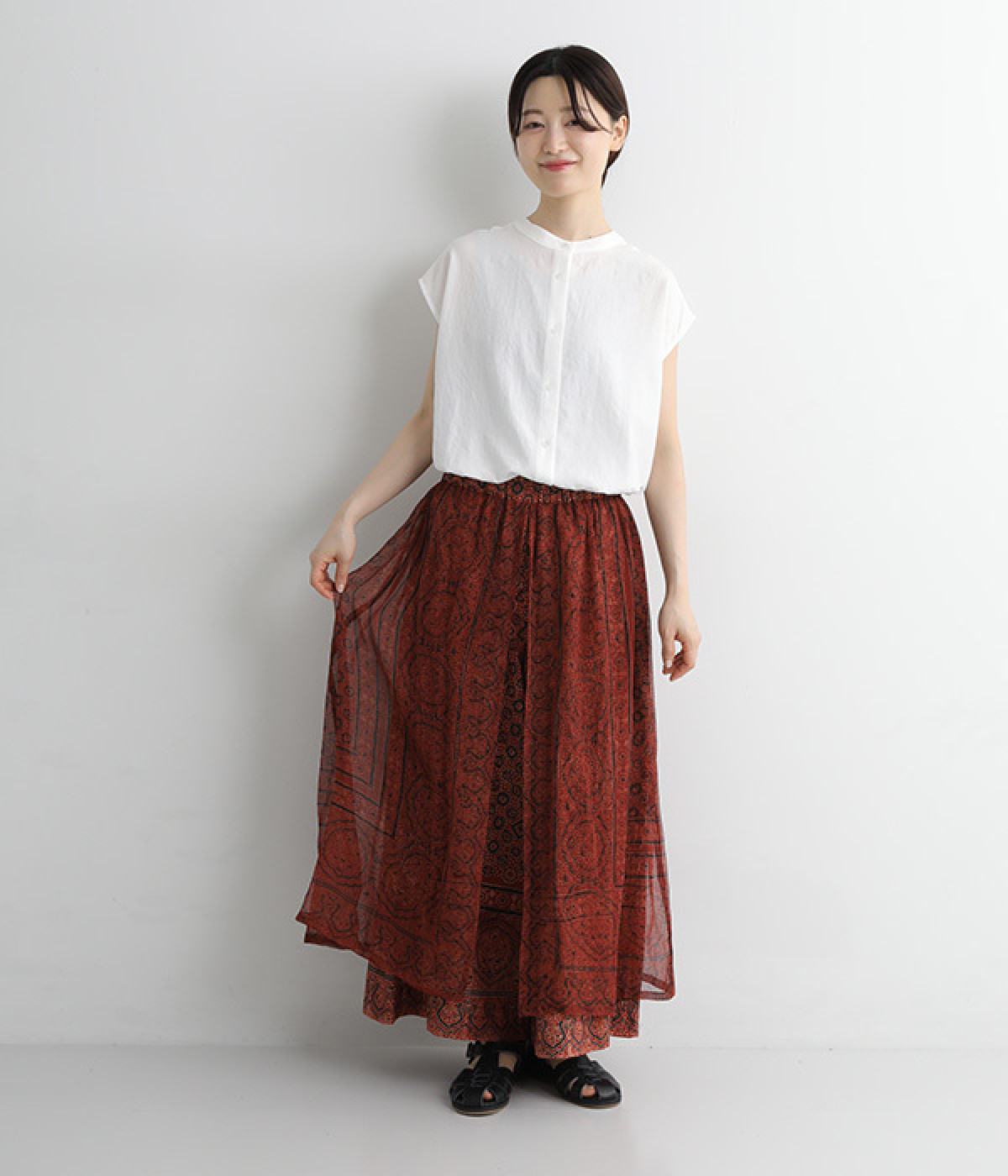 シアースカートを重ねているような、一枚で抜群の着映え力