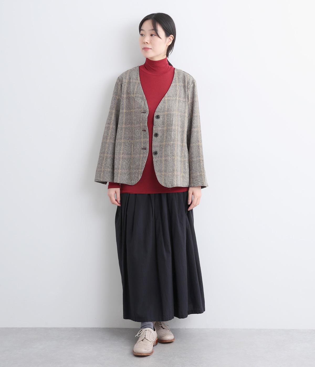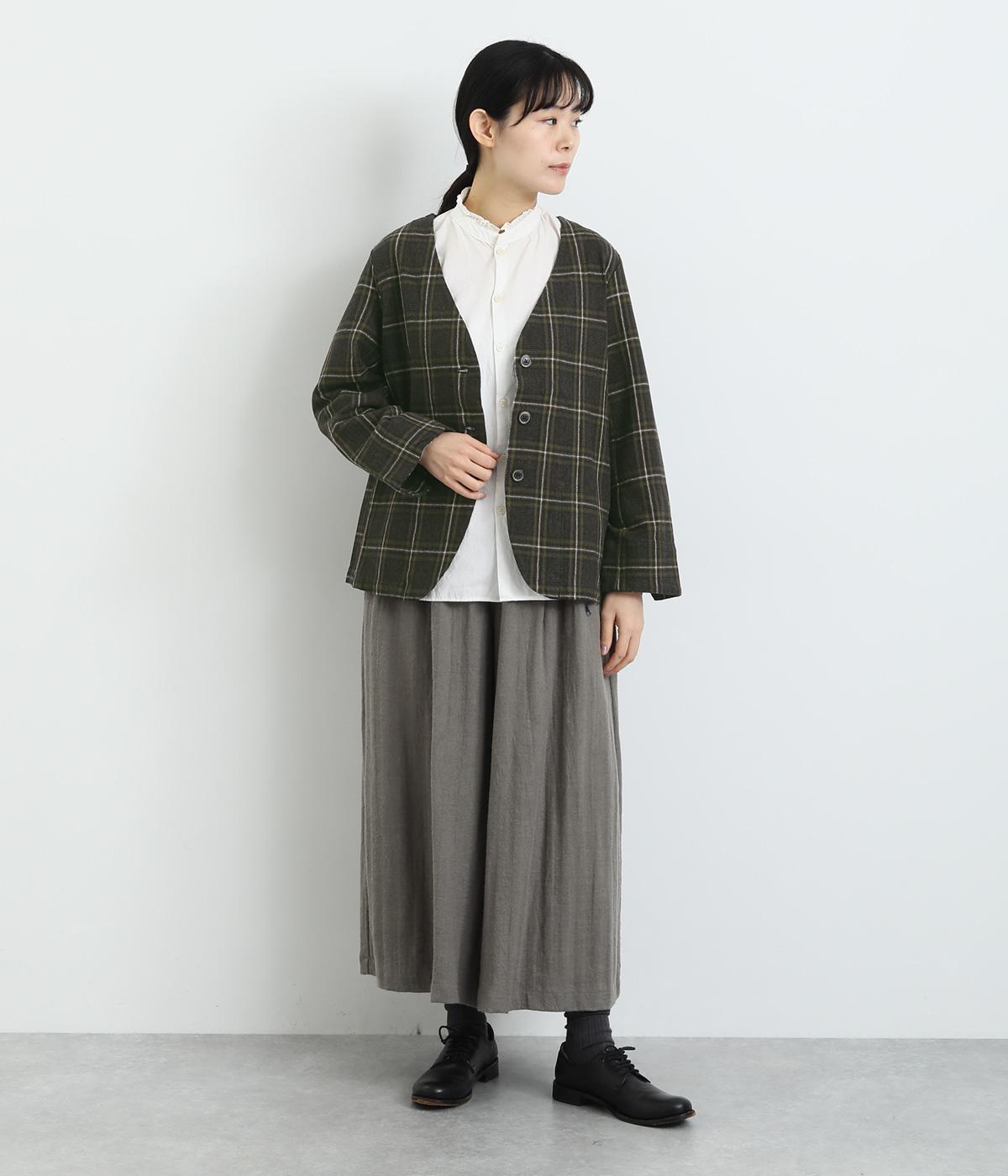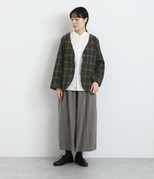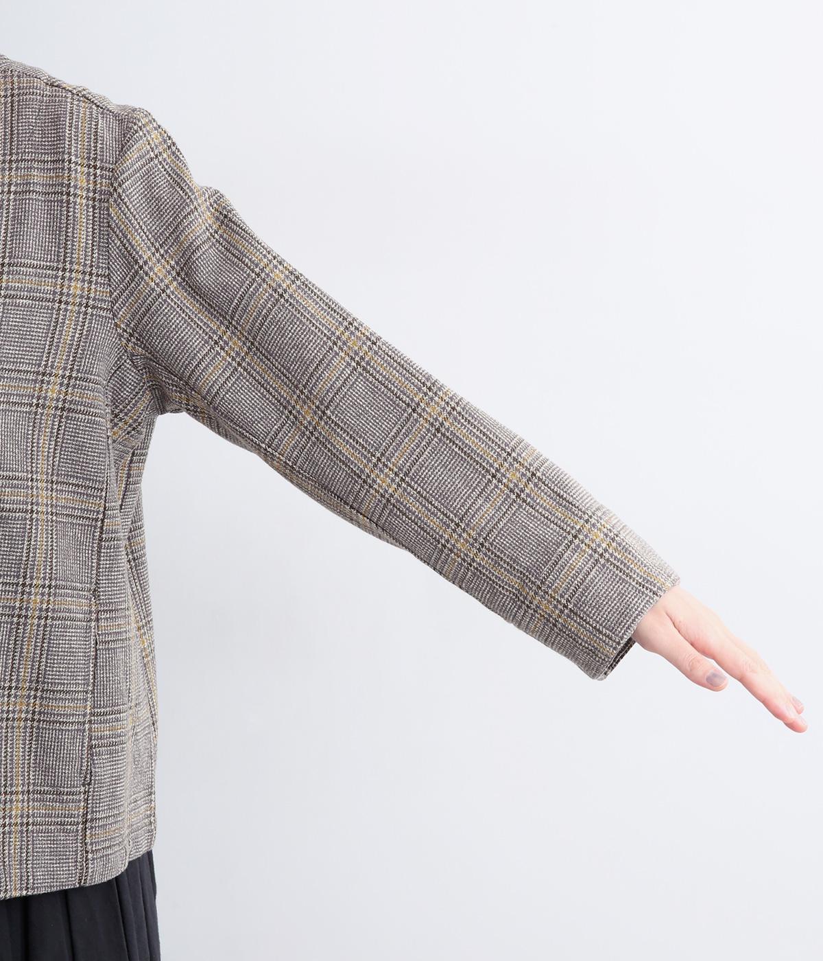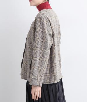 クラシカルな雰囲気にノーカラーでほどよくカジュアル感をプラスしました。袖をまくると表情が変わり、こなれた印象になります。快適な着心地で、デイリーからお出かけまで幅広く活躍する一枚です。