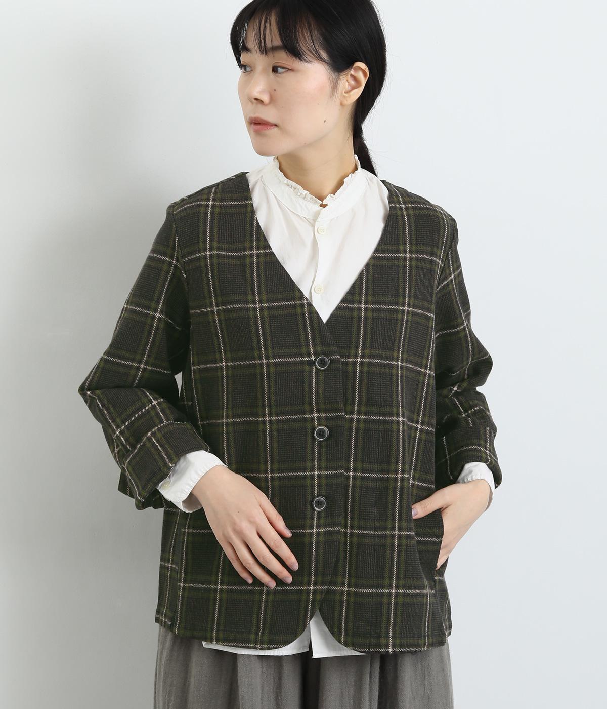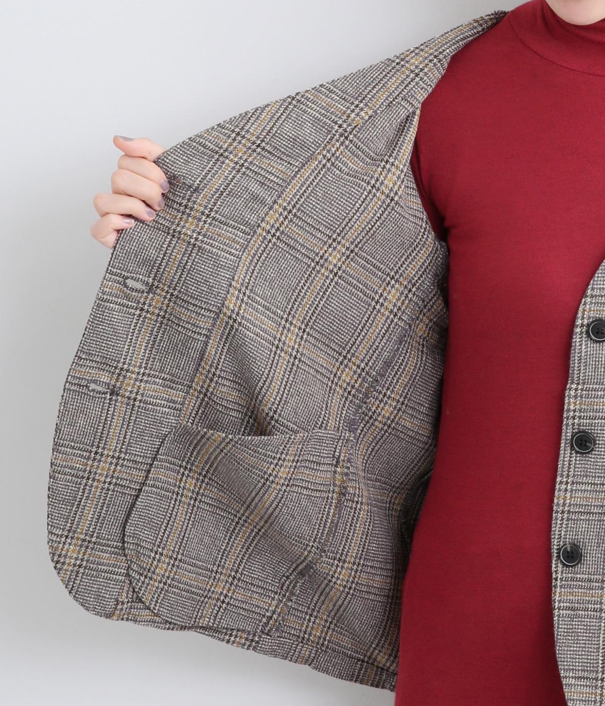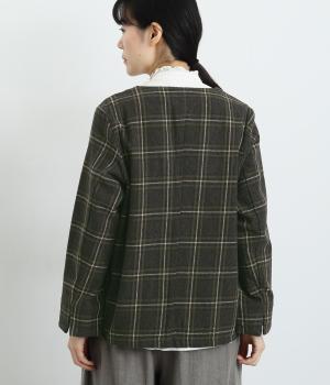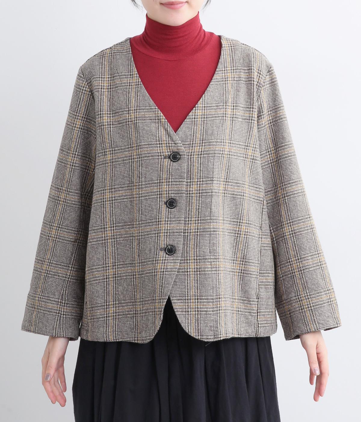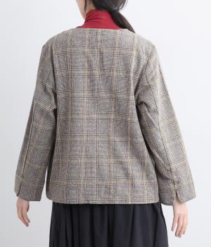 クラシカルな雰囲気にノーカラーでほどよくカジュアル感をプラスしました。袖をまくると表情が変わり、こなれた印象になります。快適な着心地で、デイリーからお出かけまで幅広く活躍する一枚です。