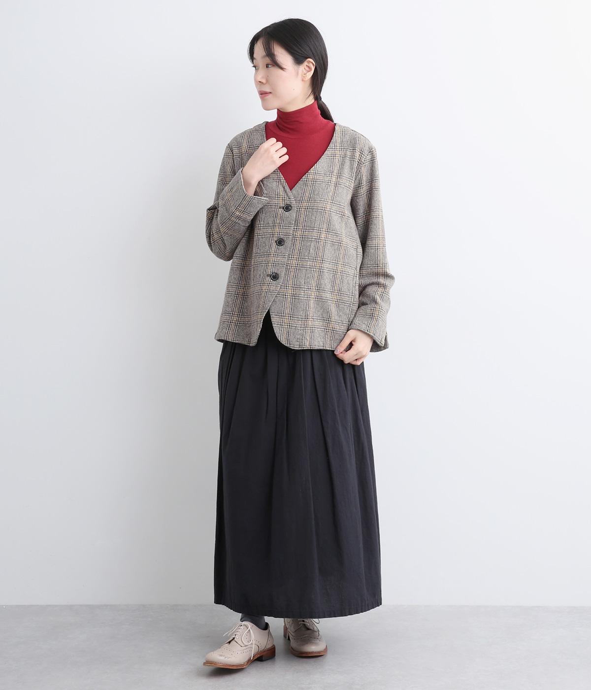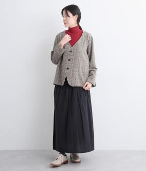 コットンでウールのような風合いを実現したコットンツイード生地を使用しました。見た目は重厚感がありますが、コットンなので軽やかで柔らかい肌ざわりです。