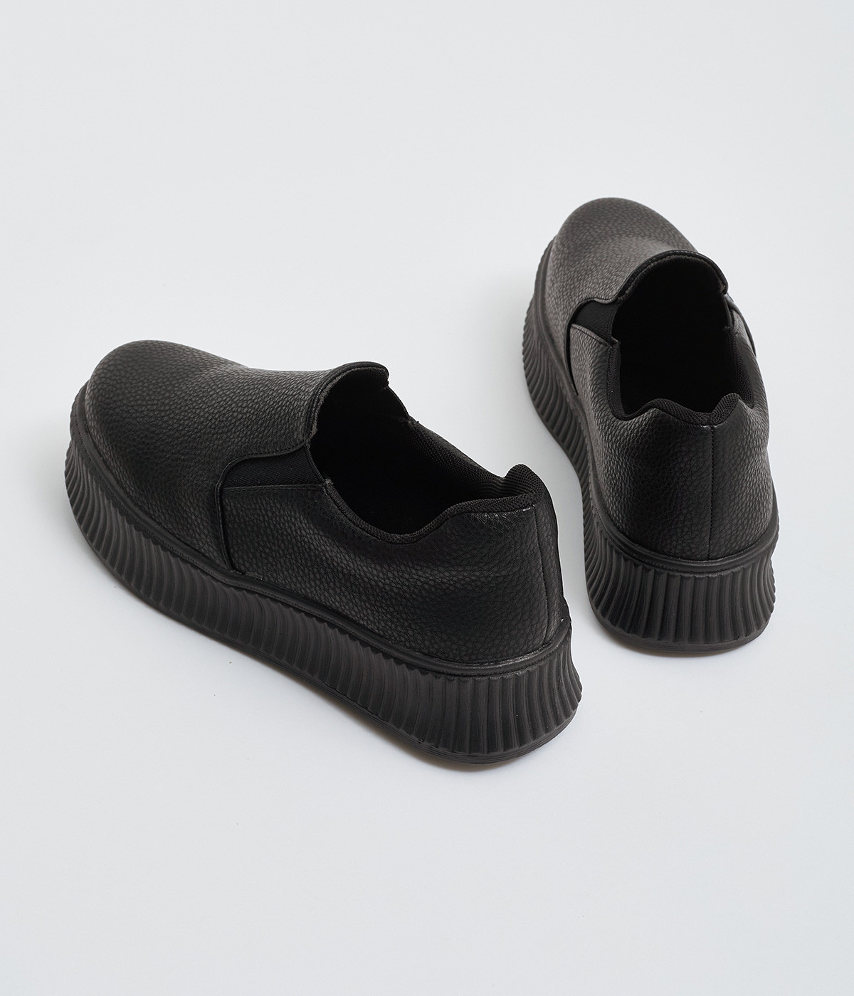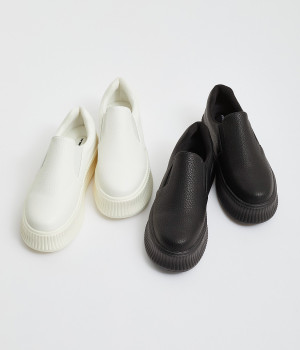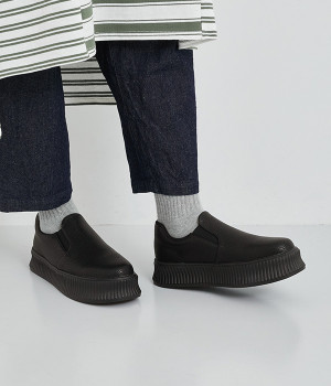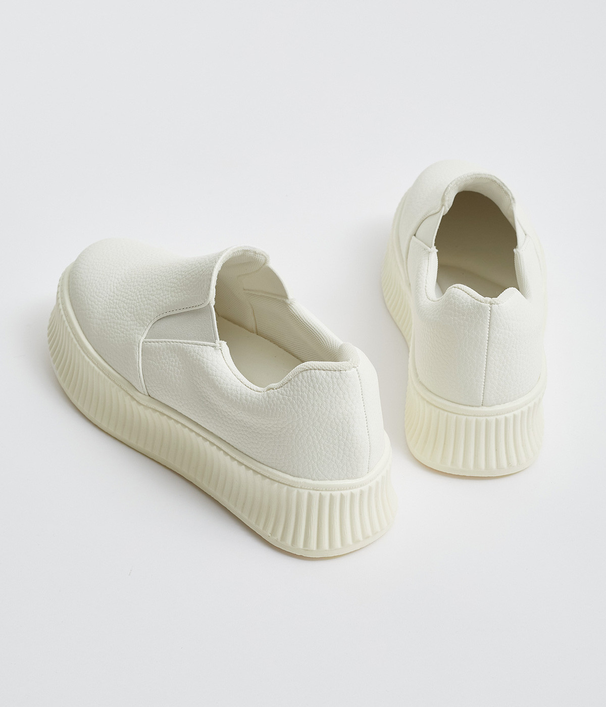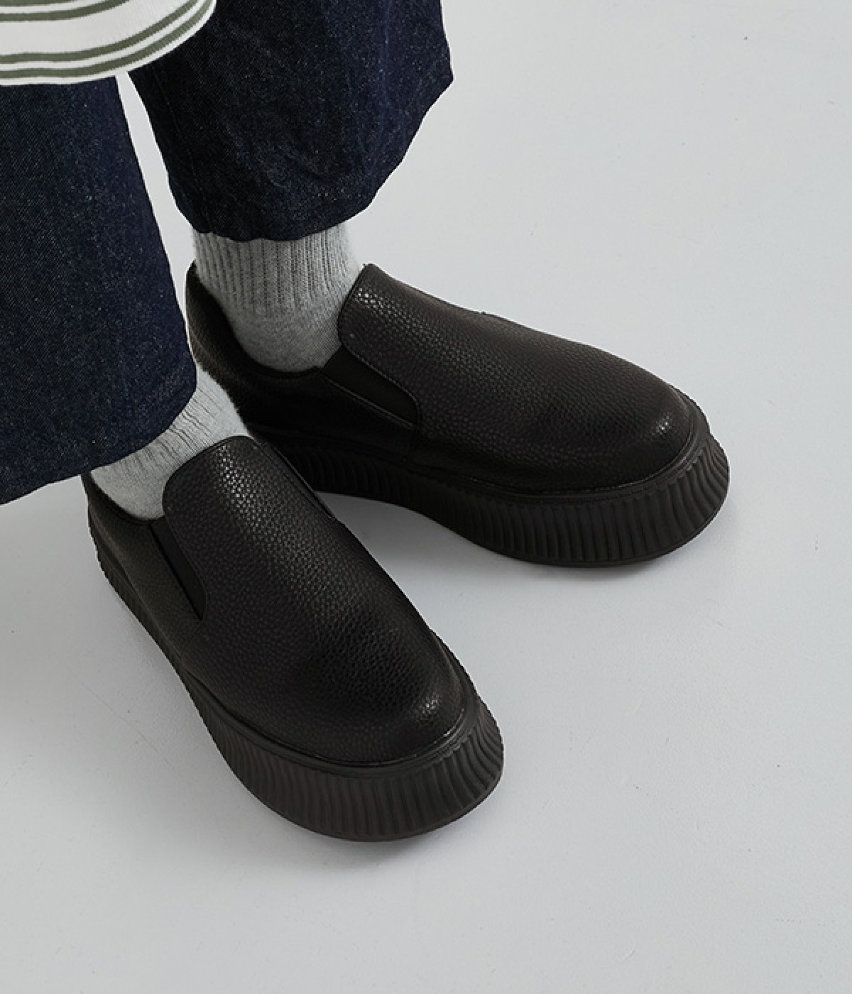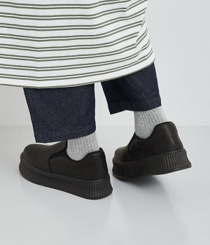 スポーティなスタイリングに欠かせない、厚底ソールのスリッポンスニーカー。適度な厚みのフラットソールは、ボリュームボトムとも好相性です。飽きのこないシンプルなデザインでボトム合わせしやすく、一足あると重宝します。