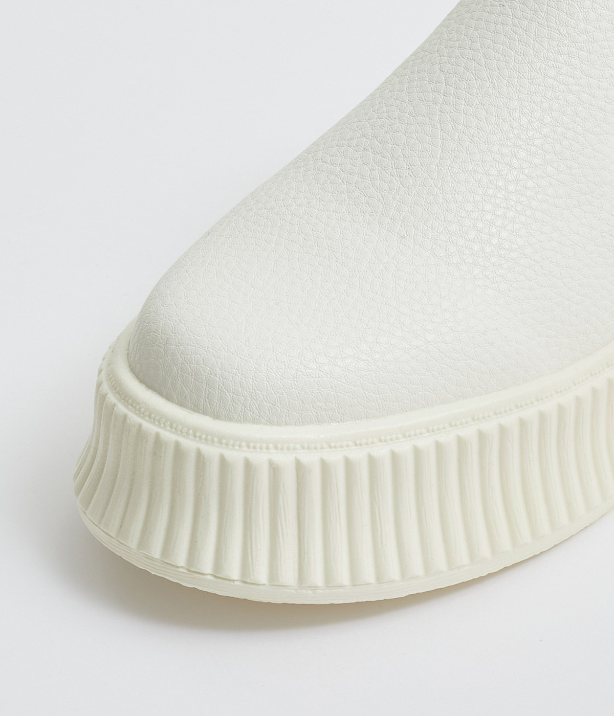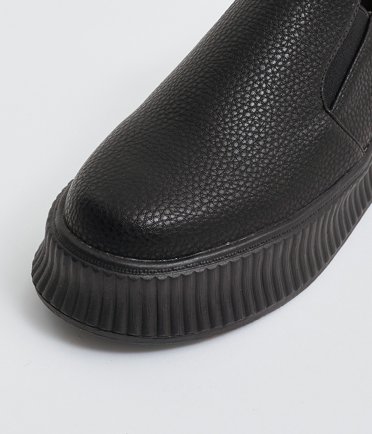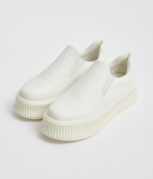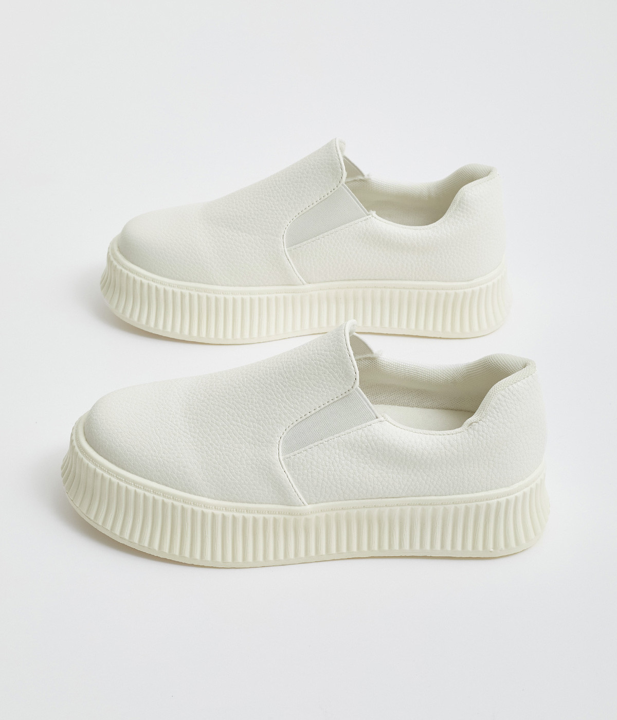 スポーティなスタイリングに欠かせない、厚底ソールのスリッポンスニーカー。適度な厚みのフラットソールは、ボリュームボトムとも好相性です。飽きのこないシンプルなデザインでボトム合わせしやすく、一足あると重宝します。