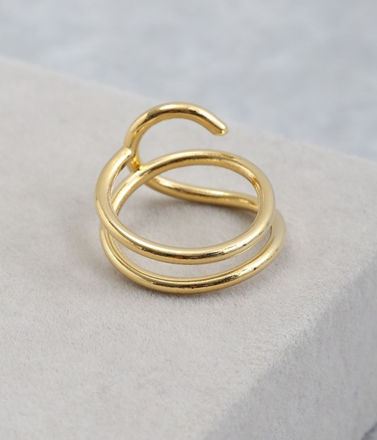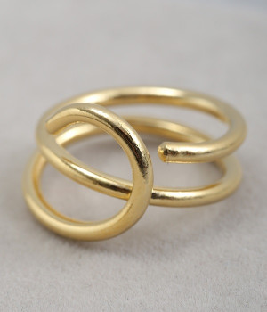 くるくると予測不能な動きを見せる、ユニークなライン使いが特徴的なリング。大ぶりのサイズながらラインデザイン特有の抜けがあり、存在感が出すぎないのも魅力です。手元に上品さを宿す、メタルカラーのつやめきも目を惹くポイント。重ねづけのリングや装いの色みの調和が取りやすい、ワンカラー仕上げです。