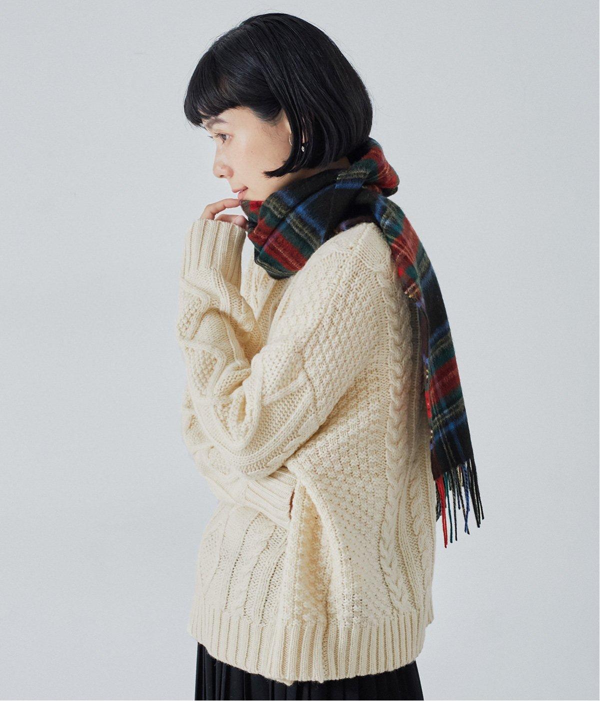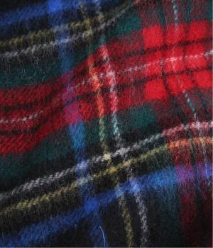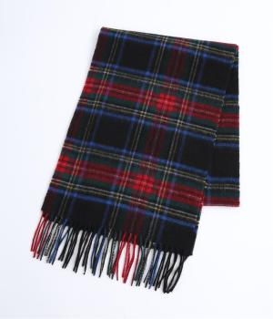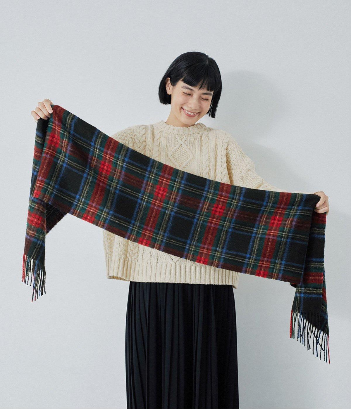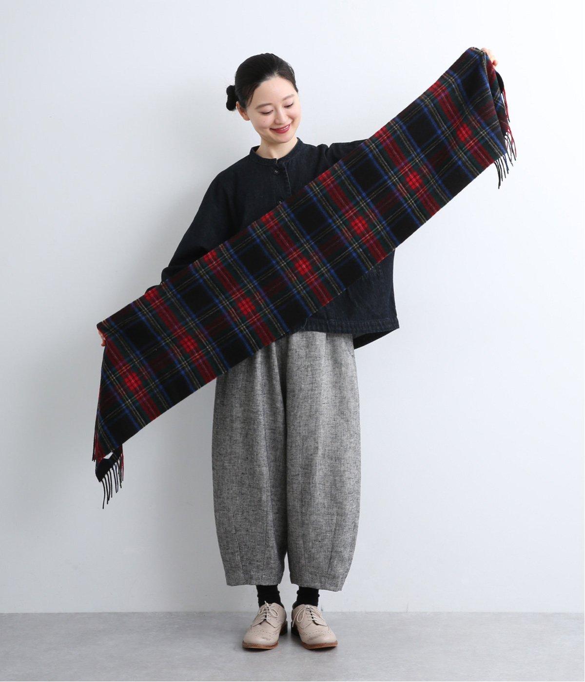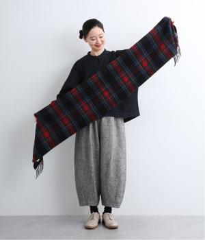すっきりとした長方形でボリュームが出すぎず、首にさっと巻きやすいベーシックなマフラーです。シックになりがちな秋冬コーディネートをパッと華やげるタータンチェック柄が◎。長めのフリンジもさりげないアクセントになっています。